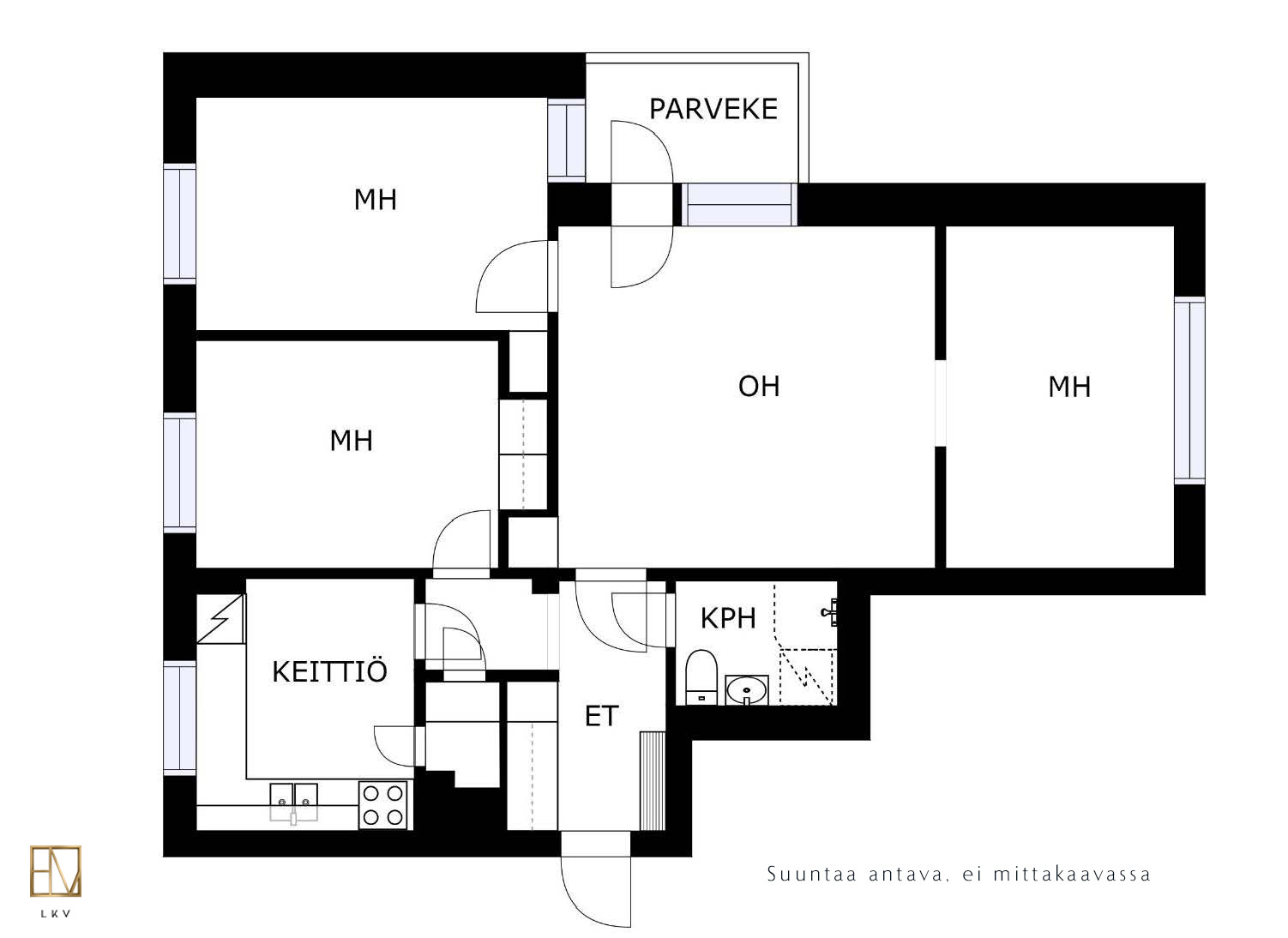 Huoneistossa on tehty muutamia vuosia sitten todella kattava ammattilaisen suunnittelema ja toteuttama kokonaisvaltainen remontti. Asunnon neliöt ovat käytetty erittäin tehokkaasti ja tilat on helposti muunneltavissa elämäntilanteen ja tarpeen mukaan. Valoisan päätyhuoneiston ikkunat ovat kolmeen ilmansuuntaan ja sijainti rauhallisen Kaskitien varrella on mainio.