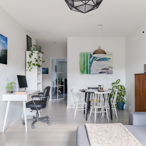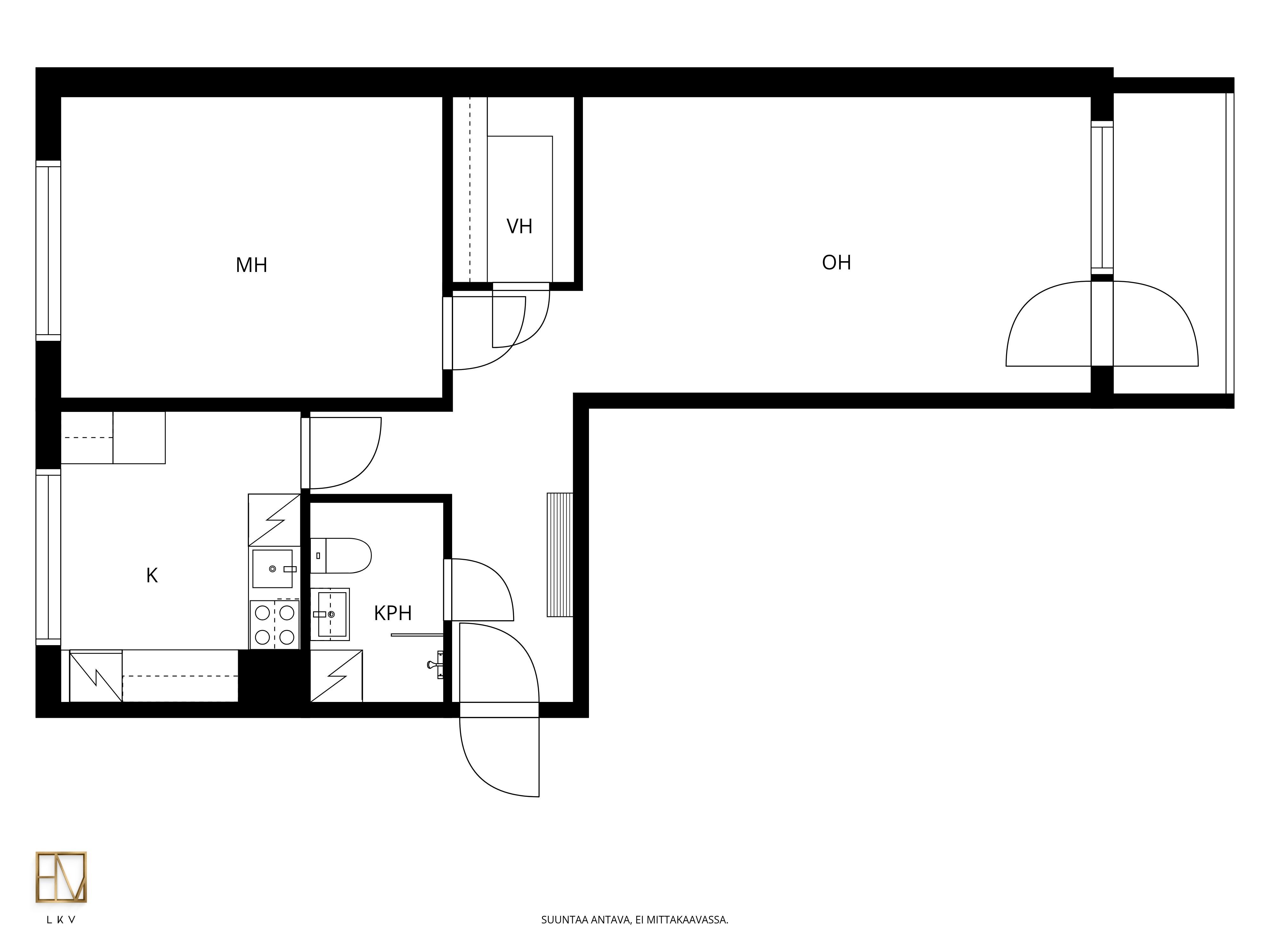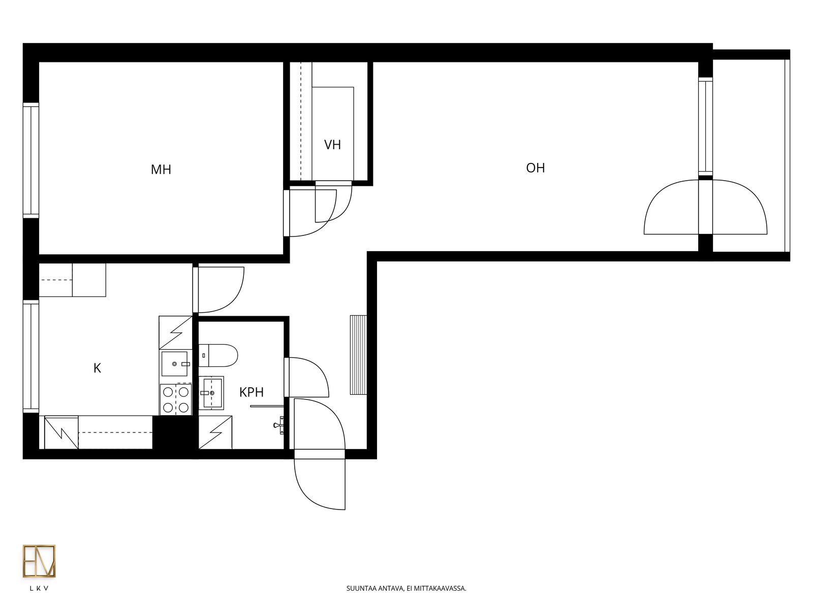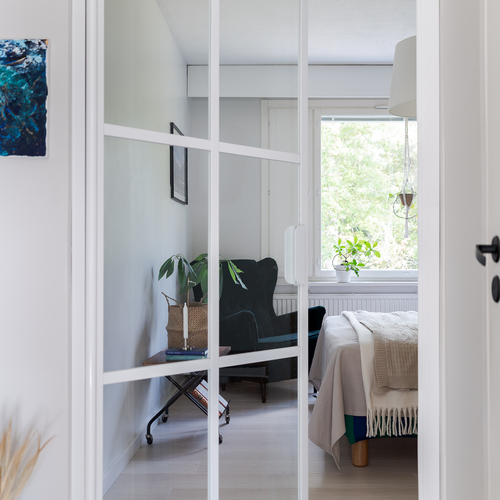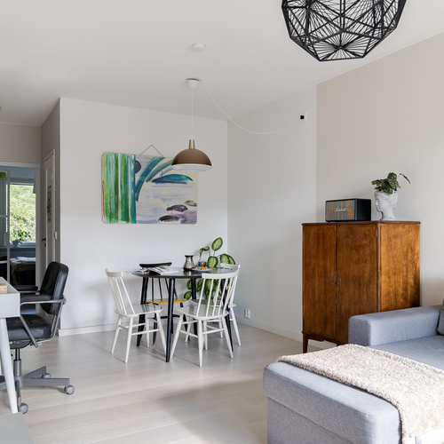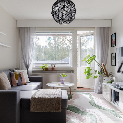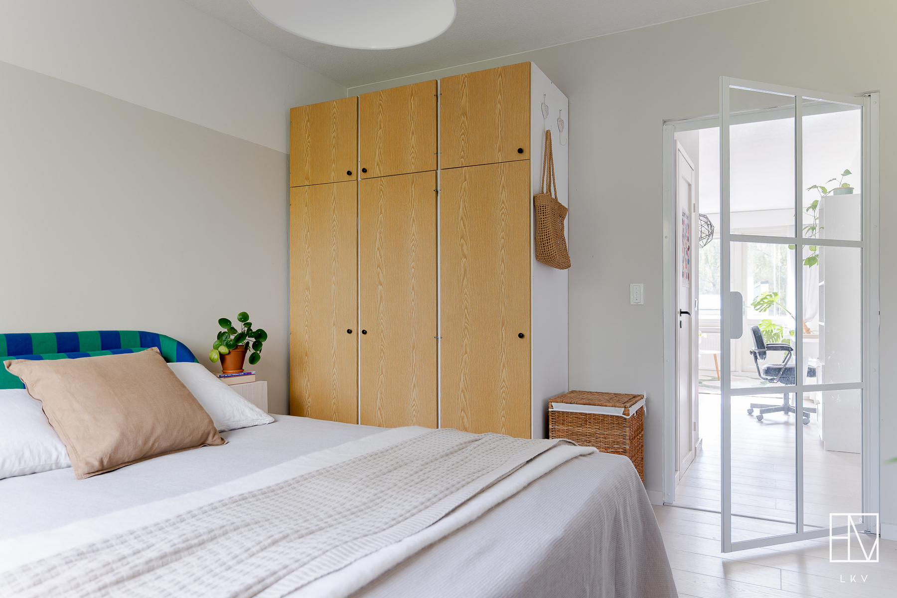 Iso makuuhuone antaa leveän sängyn lisäksi tilan esimerkiksi työpisteelle ja säilytystilaa on runsaasti kaapein. Myös reilun kokoinen vaatehuone takaa sen, että tästä kodista ei säilytystila hevillä lopu kesken! Valoisa olohuone avautuu aurinkoisesti etelään ja tarjoaa kokonsa puolesta mahdollisuudet hyvin monenlaisille sisustusratkaisuille. Olohuoneesta käy kulku asunnon etelään avautuvalle lasitetulle parvekkeelle.