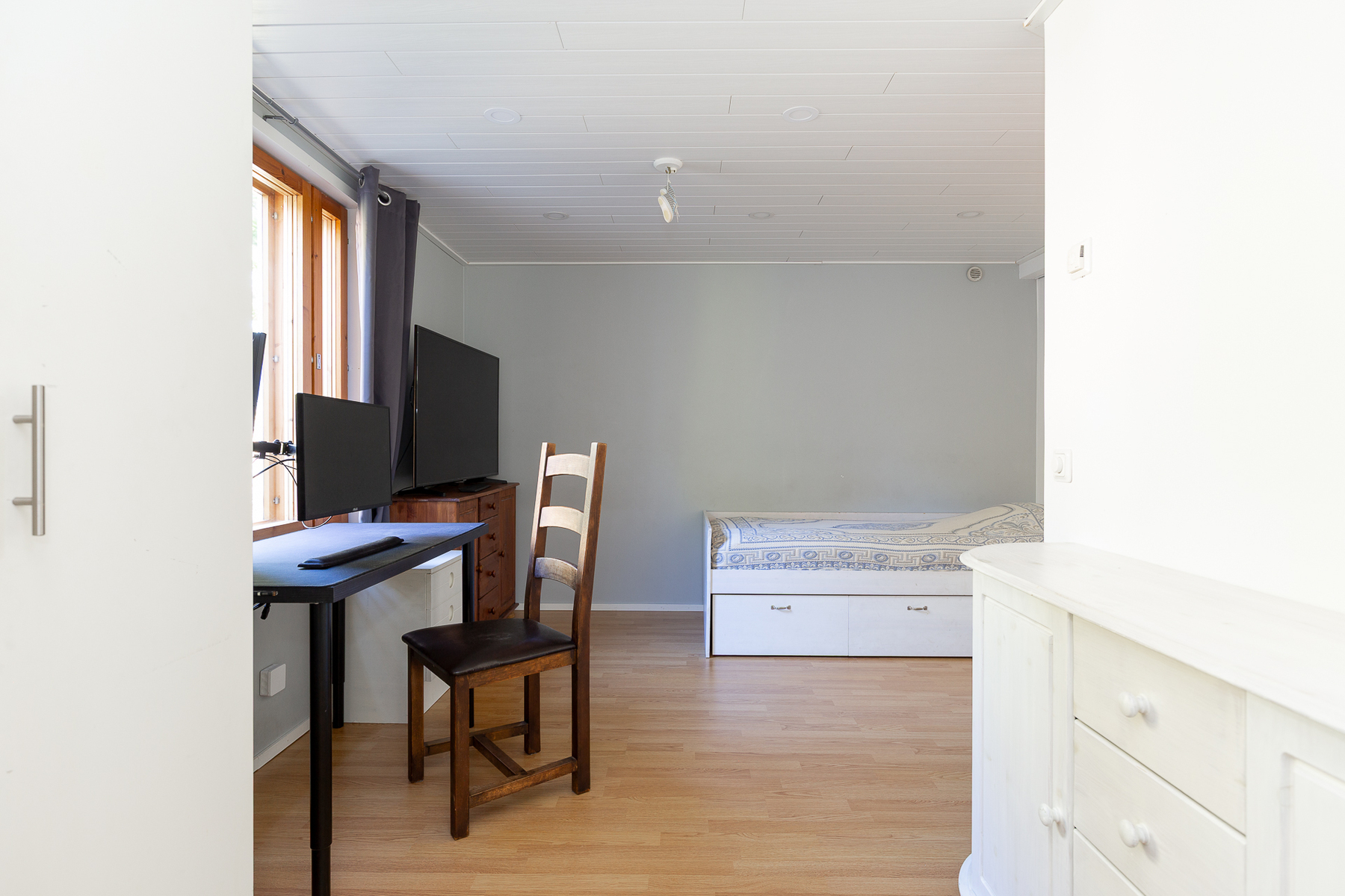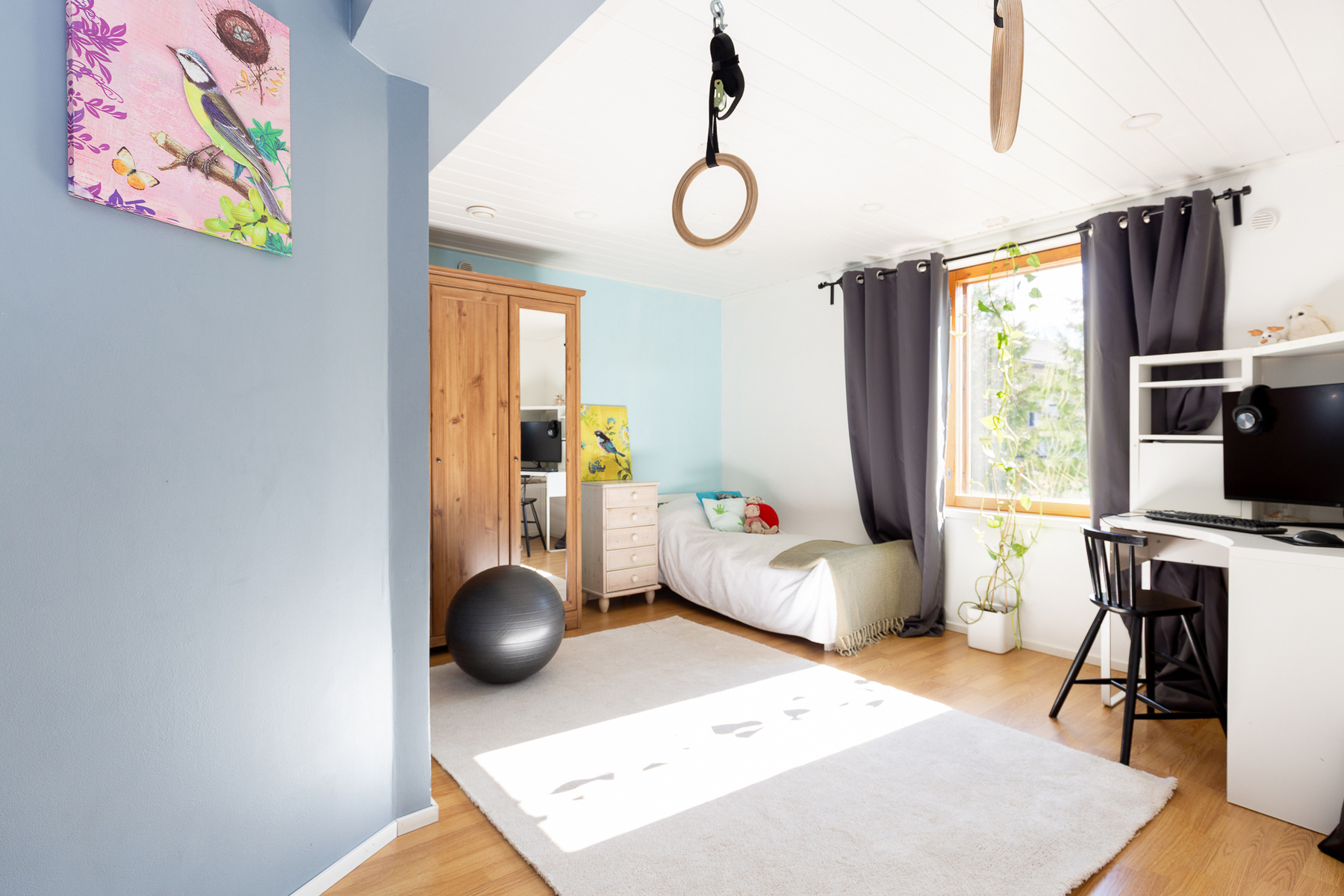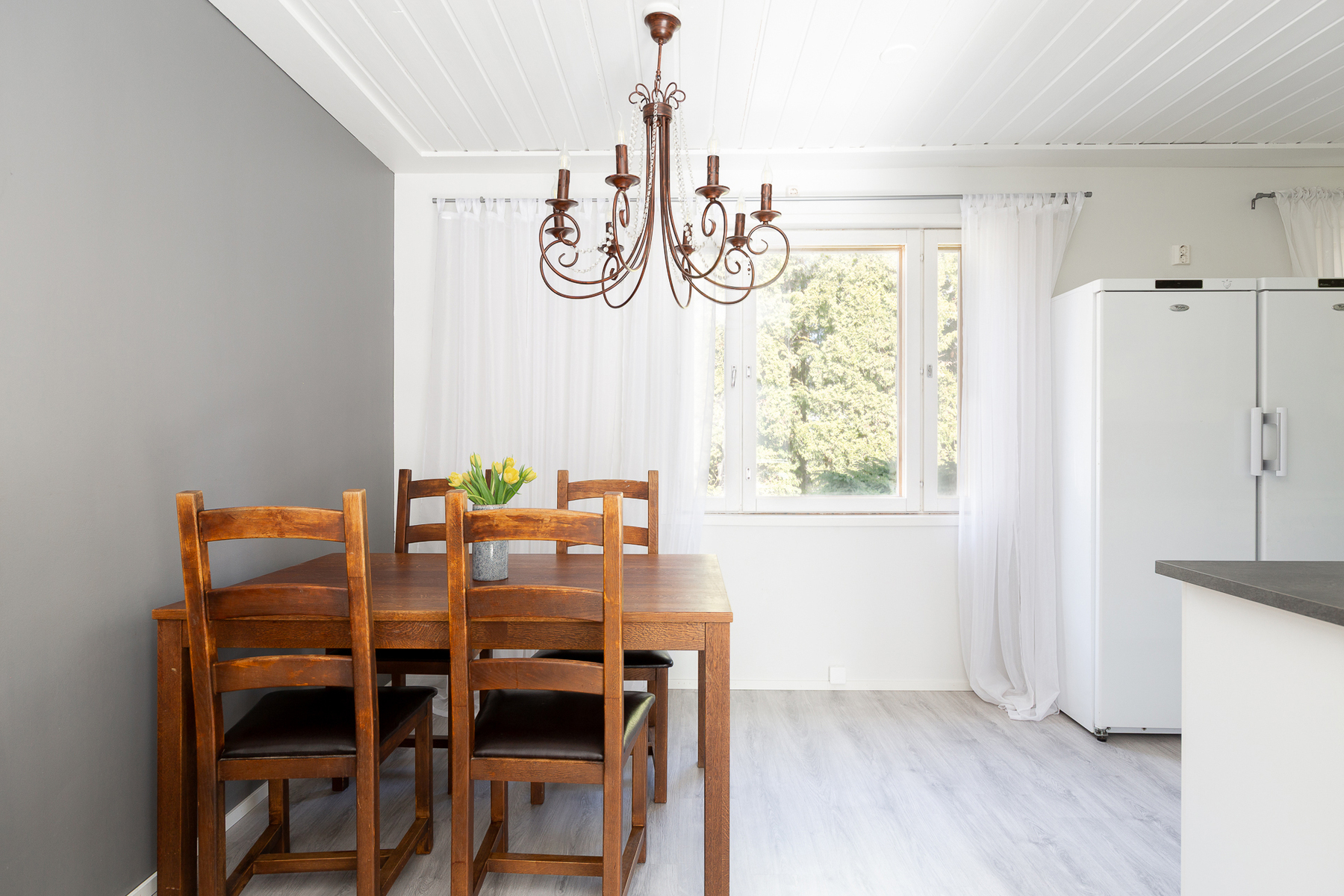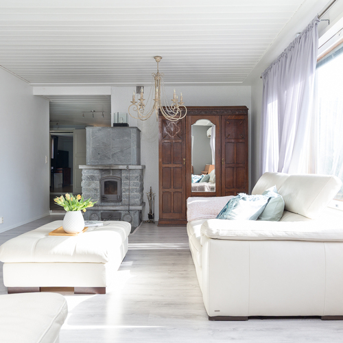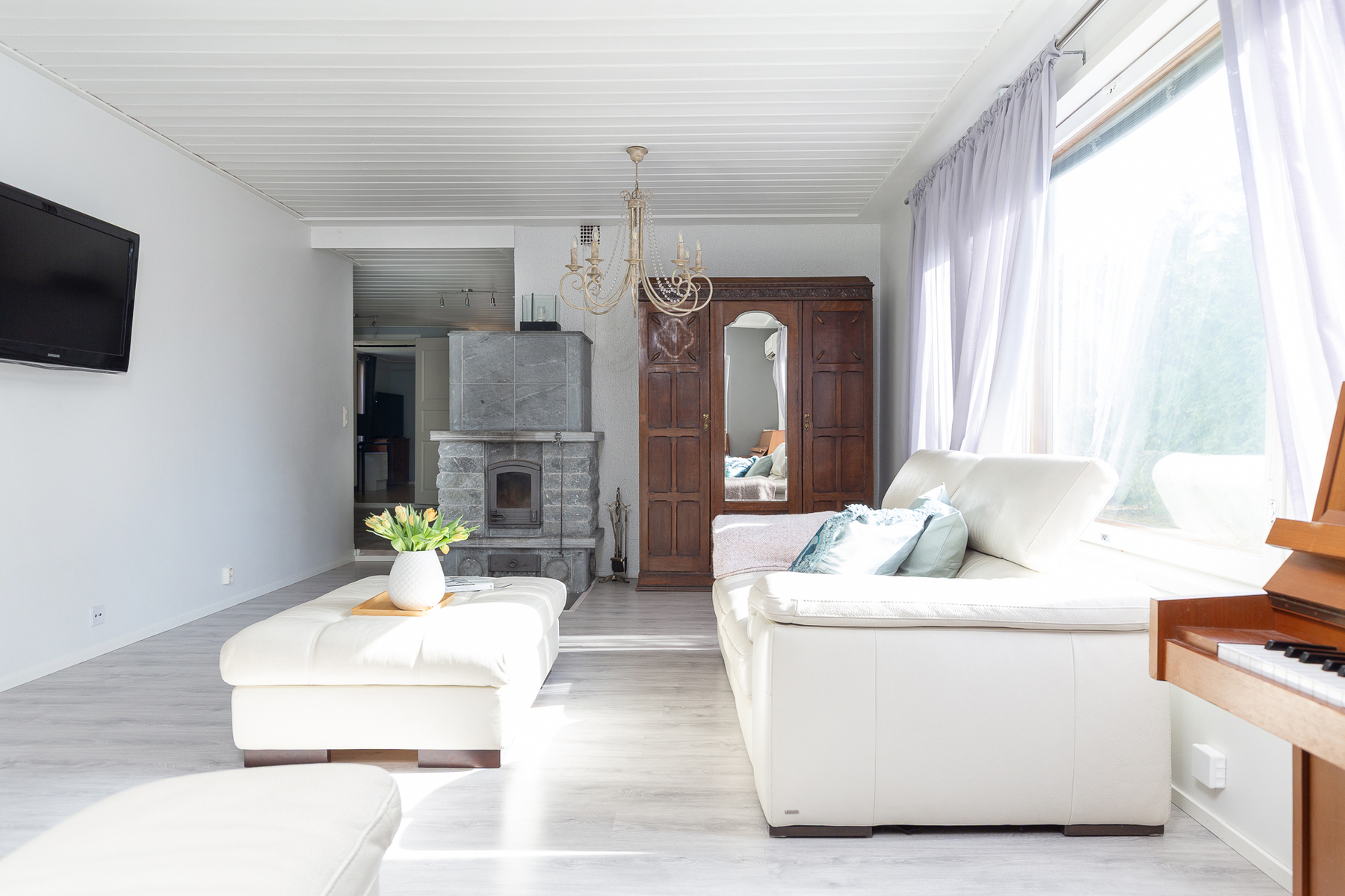 Asunto on todella viihtyisä ja siinä on hyvin tilaa isollekin perheelle. Olohuone on tilava ja sen sydämenä toimii varaava vuolukivitakka. Olohuoneen yhteydessä on keittiö, johon sijoitat isommankin ruokapöydän eikä säilystystilakaan lopu aivan heti kesken. Keittiön kaapistot ja tasot ovat hyvässä kunnossa. Keittiön ja olohuoneen väliseinää avaamalla saa avarrettua tilaa vielä huomattavasti. Kaikkien huoneiden pinnat ovat hyvässä kunnossa. Lämpimään autotalliin on kulku suoraan sisältä, mikä helpottaa sen käyttöä vaikka harrastetilana. Tontti on reilun kokoinen ja talon päätyyn jää sopiva alue esimerkiksi lasten pelikentälle. Tämän kodin pihaan pysäköit useammankin auton.