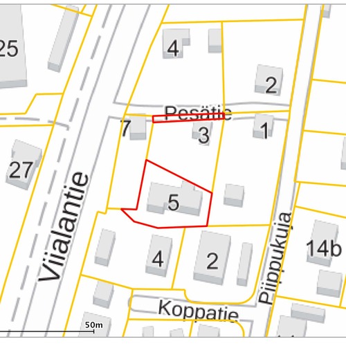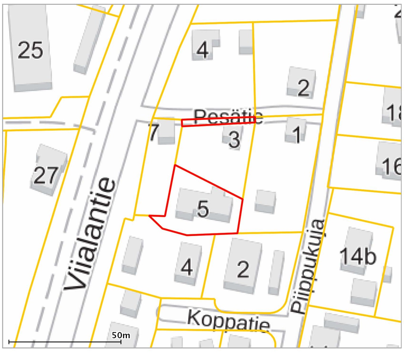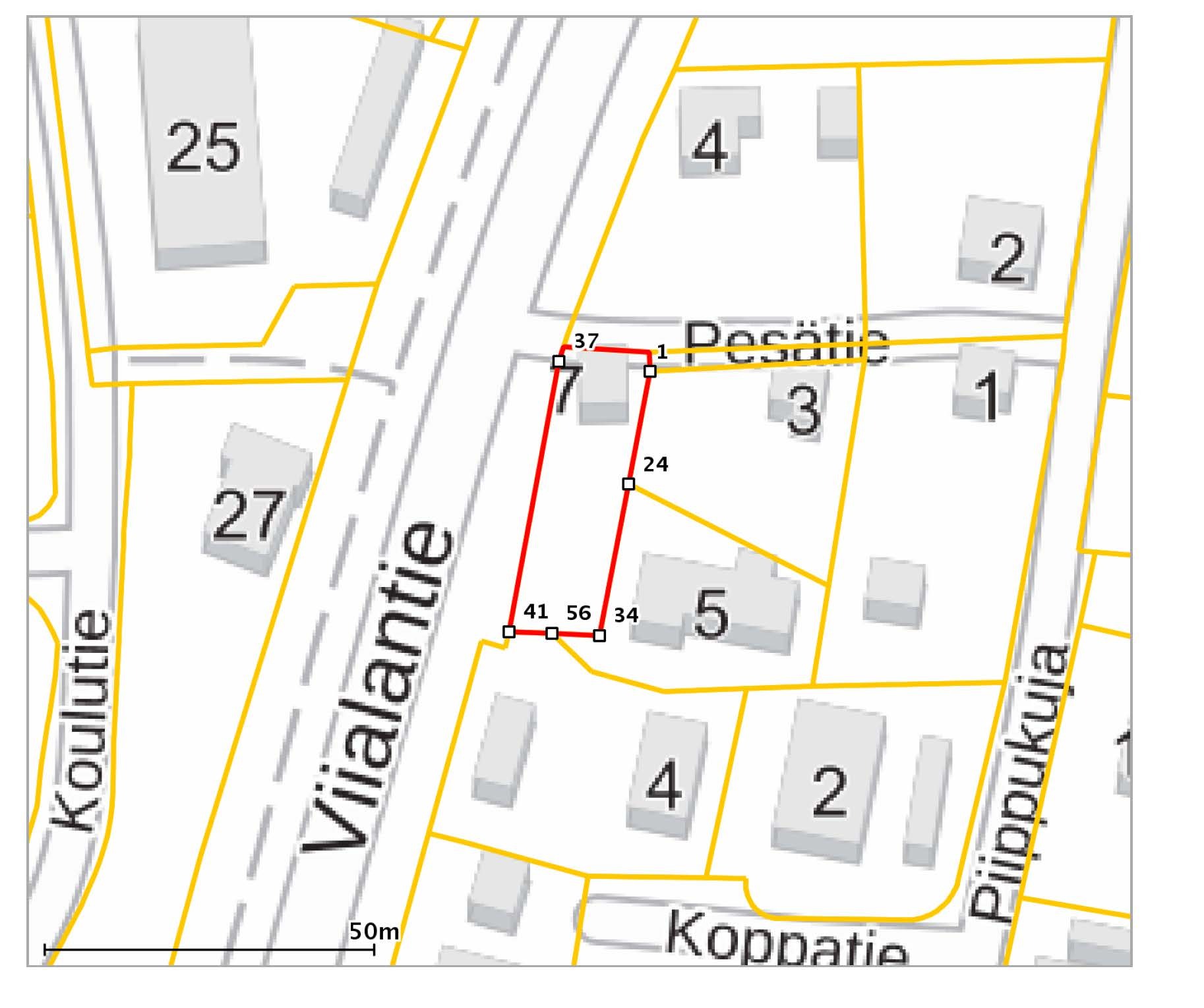 Tilat ovat aikoinaan kuuluneet osaksi kaavanmukaista tonttia, joka jaettu kahteen osaan, lisäksi tonttiin kuuluu pari pienenpää palaa. Maanmittausinsinööri teki kaavatulkinnan rakennusoikeudellisesta pinta-alasta.