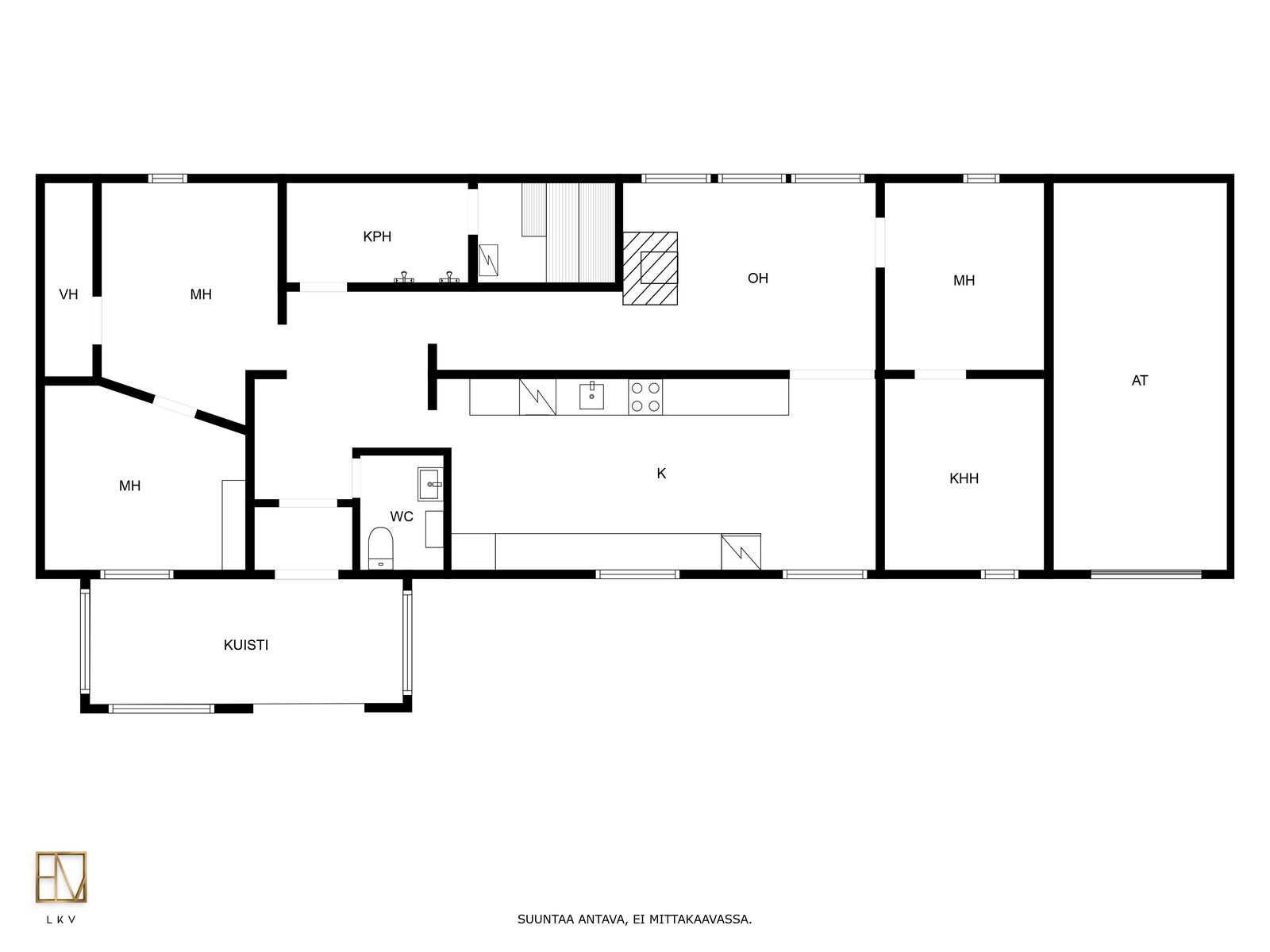 Varusteet: kaapistot, sälekaihtimet/rullaverhot, lämminvesivaraaja, ilmalämpöpumppu, jätesäiliö