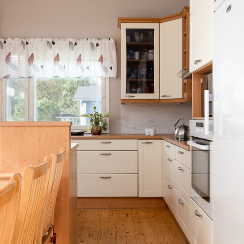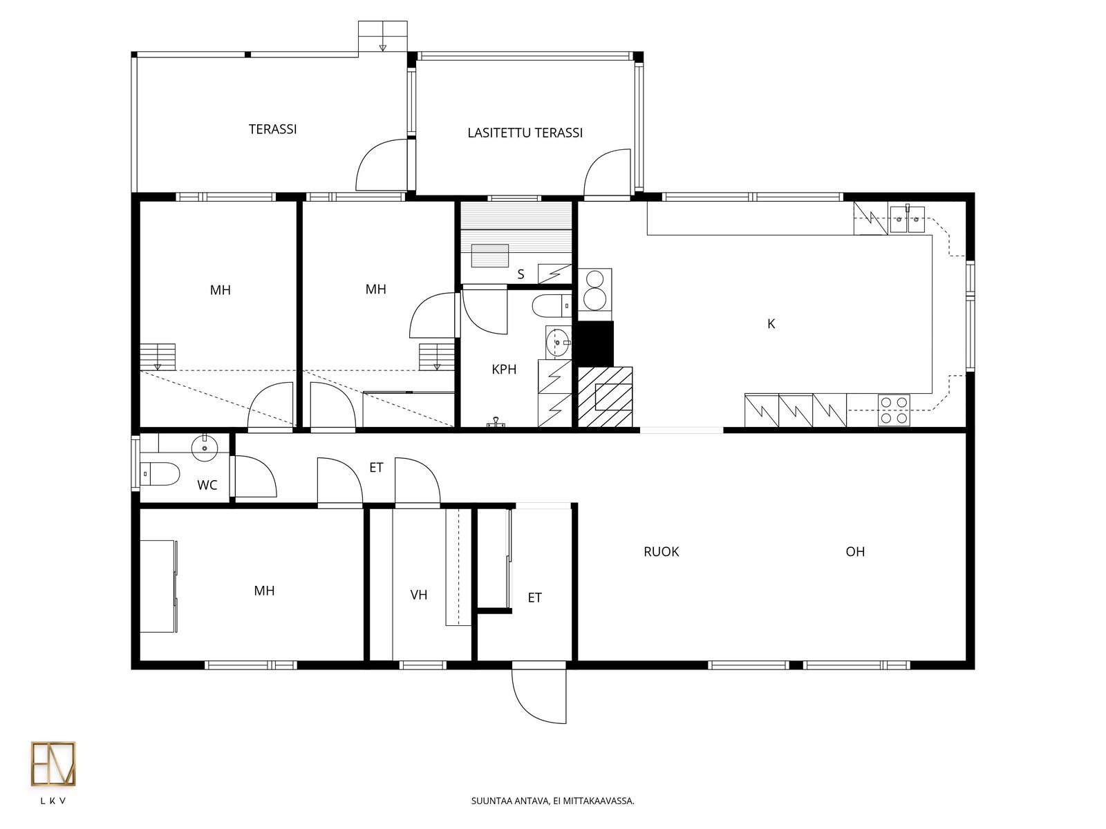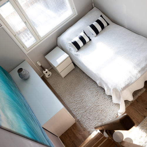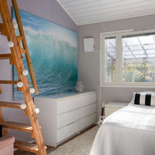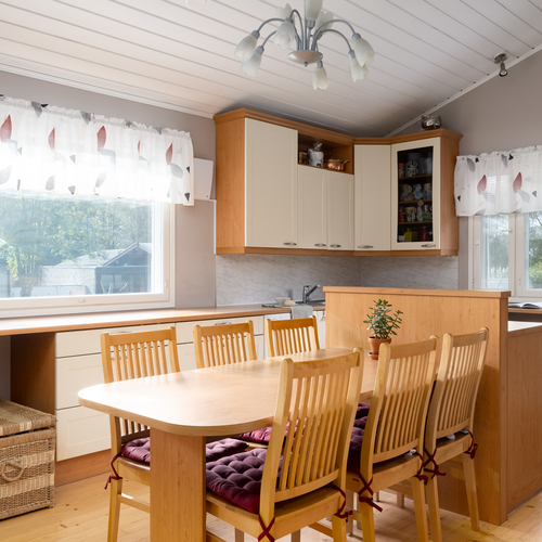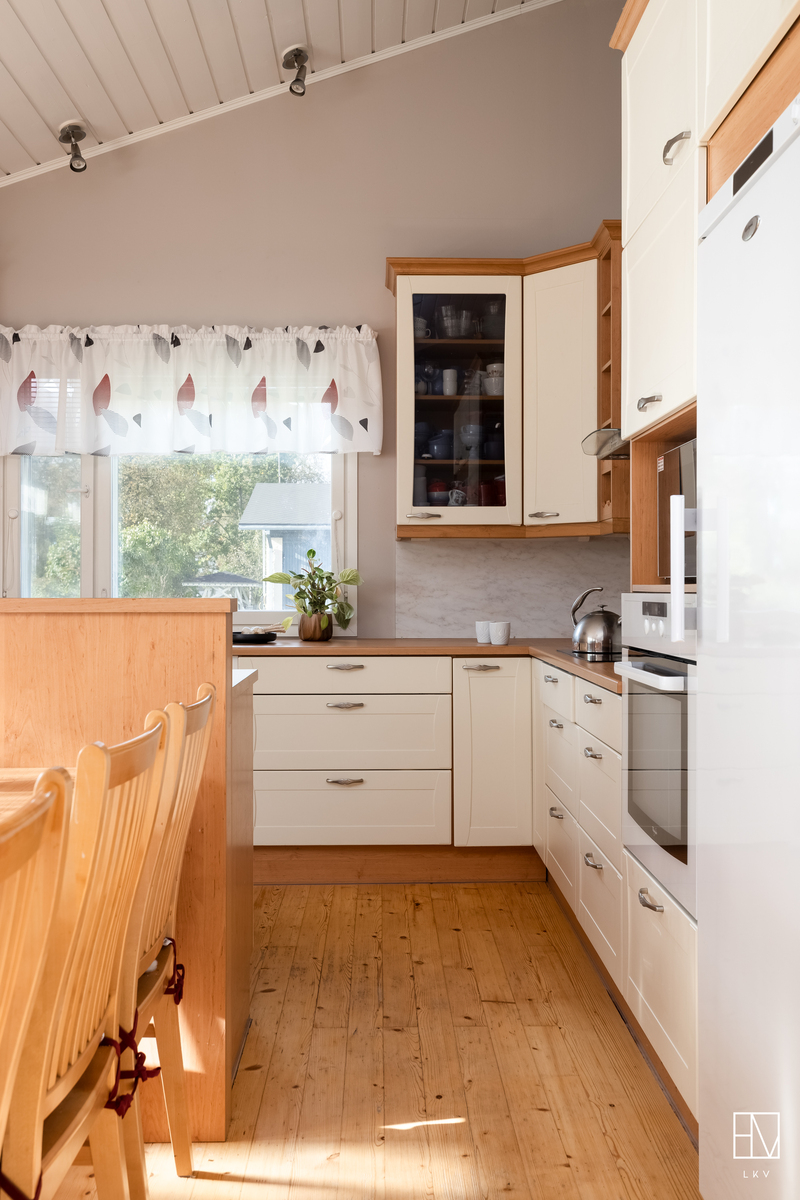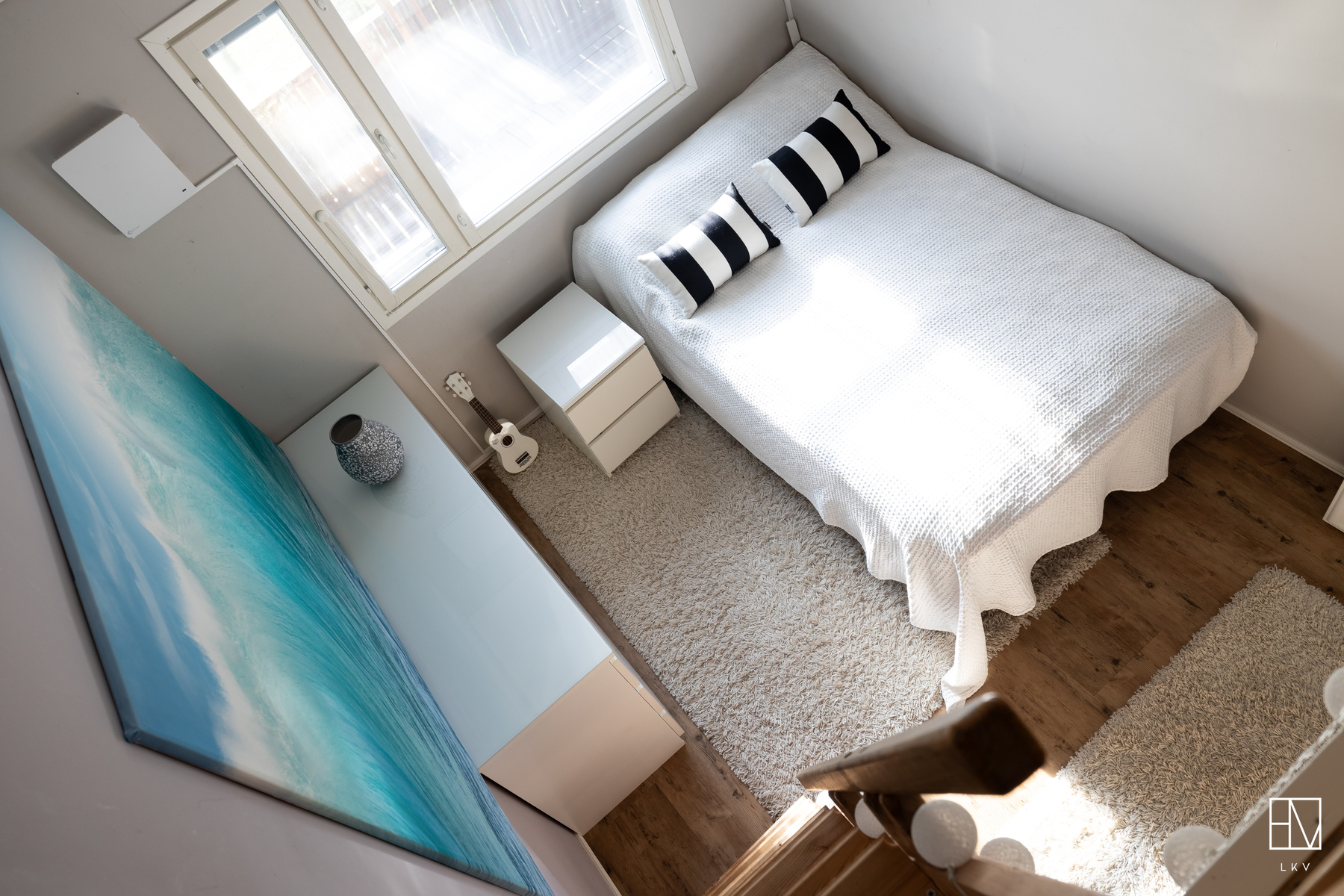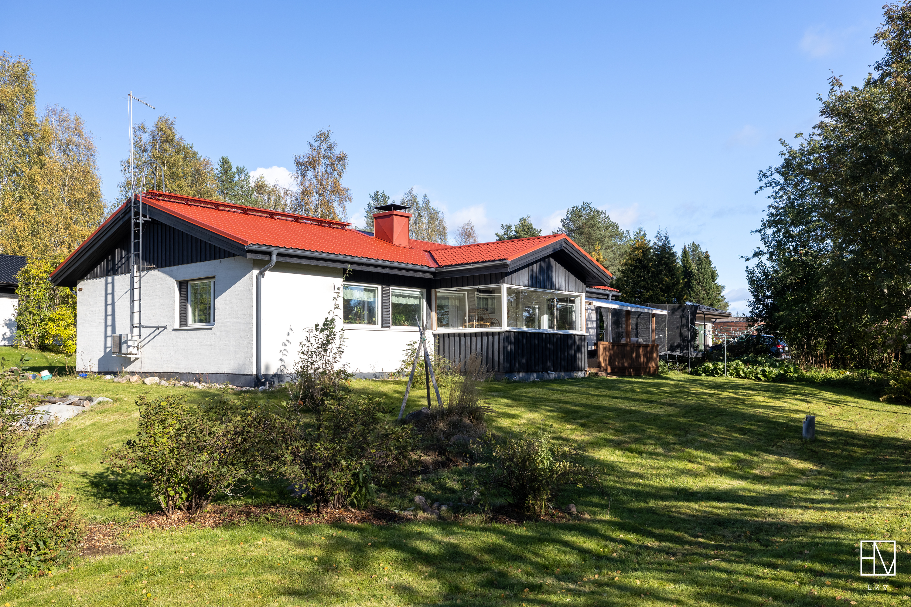 Avara olohuone ja ruokailutila yhdistyvät saumattomasti suureen keittiöön, jossa on sekä leivinuuni että perinteinen puuhella – täydellinen yhdistelmä tunnelmaa ja käytännöllisyyttä. Olohuoneessa korkea viistokatto tuo tilaan ilmavuutta, ja ilmalämpöpumppu huolehtii asumismukavuudesta vuoden ympäri. Kaksi makuuhuoneista on varustettu käytännöllisillä makuuparvilla, jotka tarjoavat lisätilaa vaikkapa lasten leikkeihin, säilytykseen tai vierasmajoitukseen. Eteisessä on lisäksi reilun kokoinen vaatehuone, joka tuo arkeen kaivattua säilytystilaa ja tämän lisäksi kiinteistöllä on erillinen 20 m² ulkovarasto.