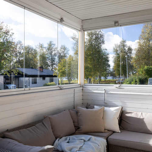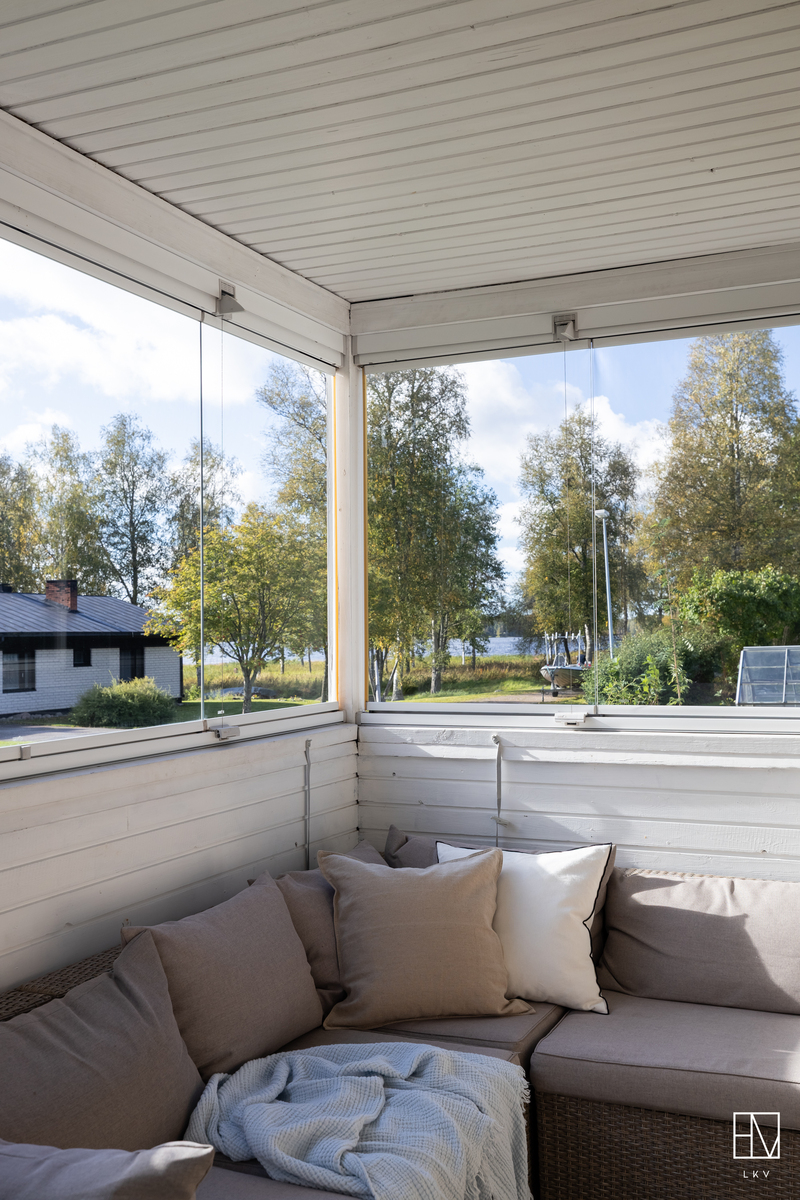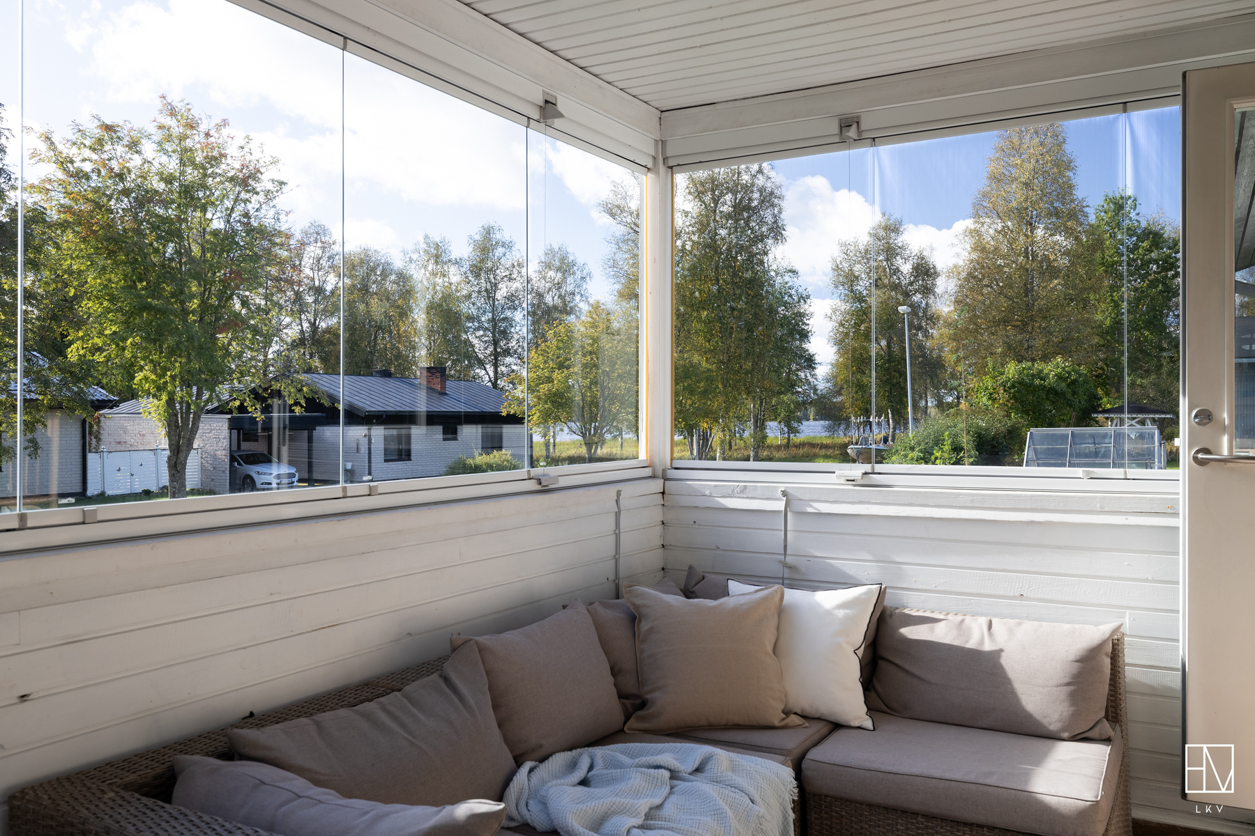 Talon kahdella viihtyisällä terassilla voit nauttia rauhasta, vehreästä kulmatontista ja näkymistä Kyrösjärvelle. Piha-alue tarjoaa tilaa niin lasten leikeille kuin puutarhaharrastuksille.