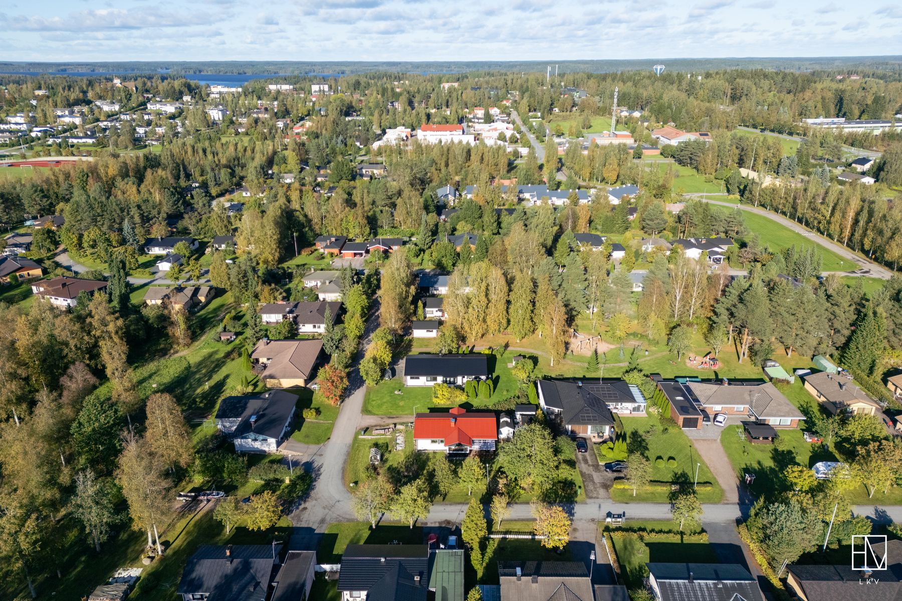 Sijainti on mitä mainioin: rauhallinen ja perheystävällinen asuinalue, jossa palvelut löytyvät läheltä – luontoa ja järveä unohtamatta.