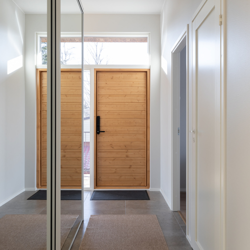 Etupihalla on autokatoksen lisäksi myös lämmin varasto ja tilaa myös toiselle autolle.