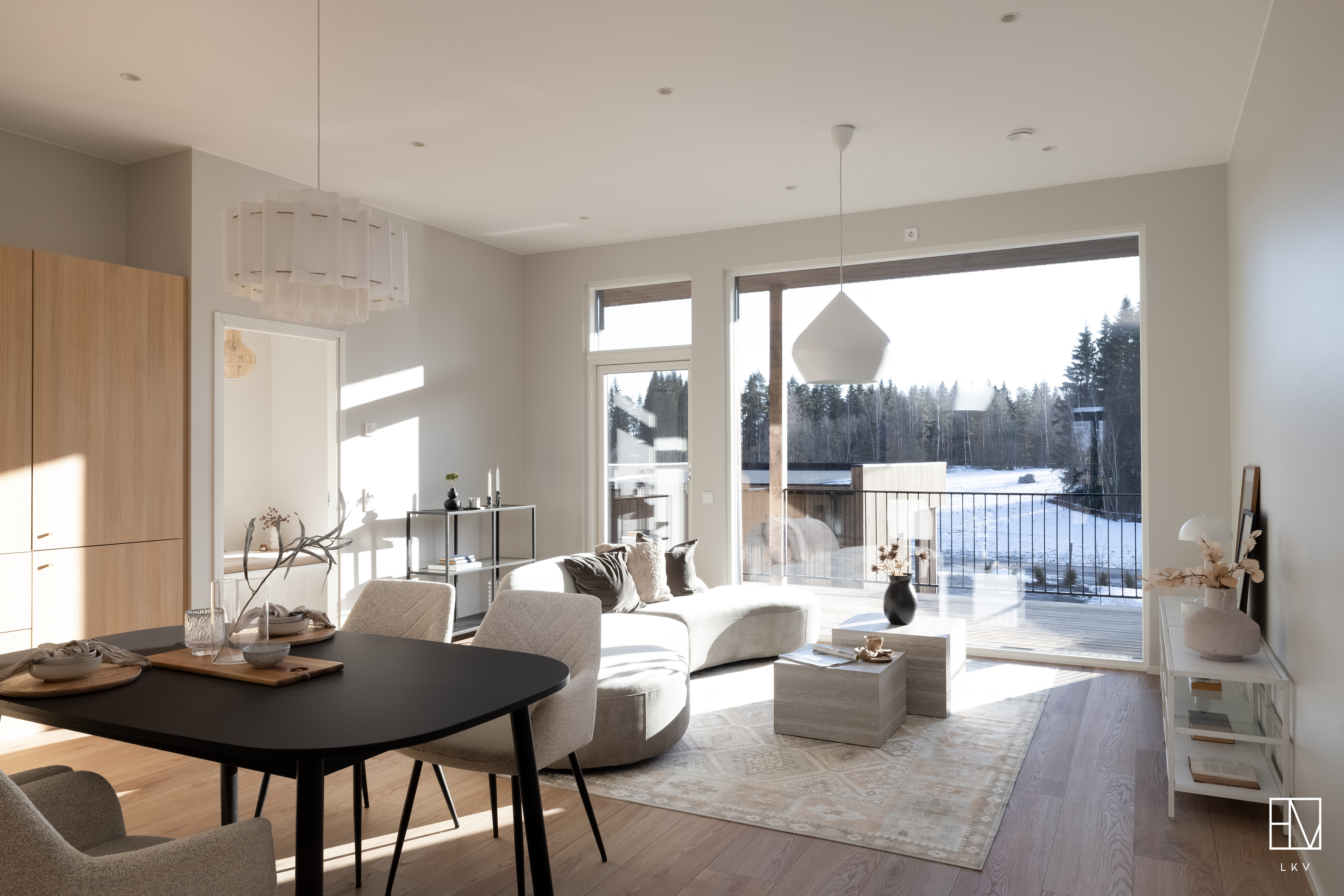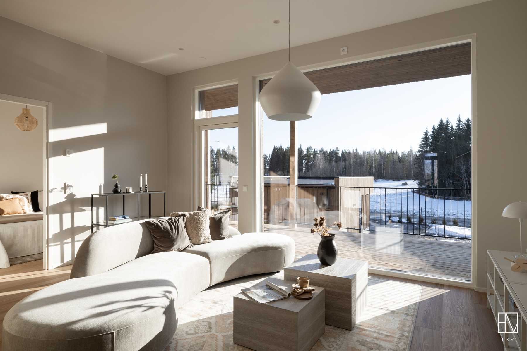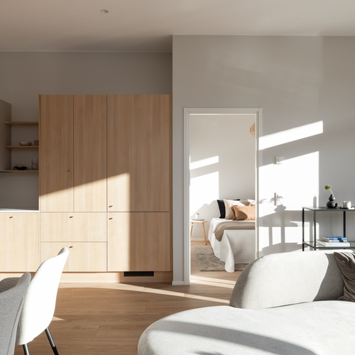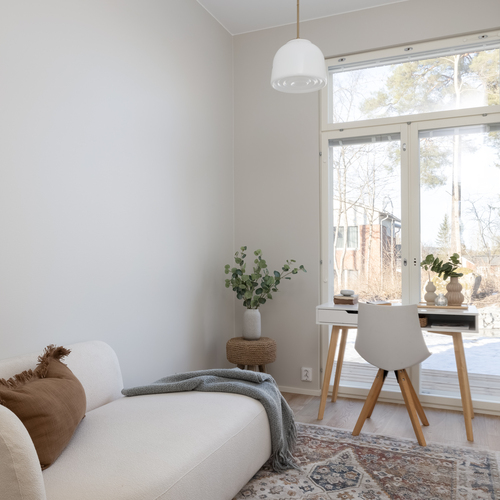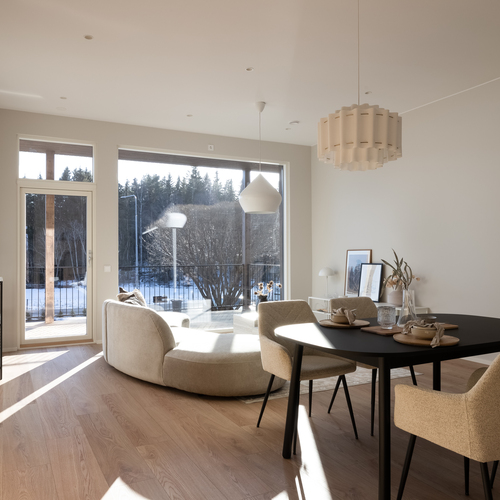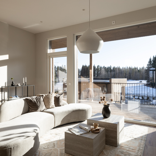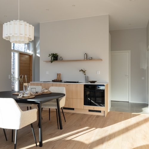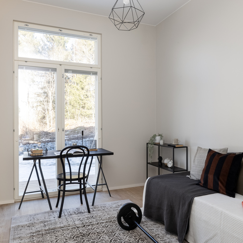 Heti asuntoon tultaessa huomio kiinnittyy korkeaan huonekorkeuteen. Olohuoneesta pääset ihailemaan rauhallista peltomaisemaa. Olohuoneesta on käynti myös katetulle etuparvekkeelle. Puustellin keittiössä laadukkaat kodinkoneet ja kvartsitasot.