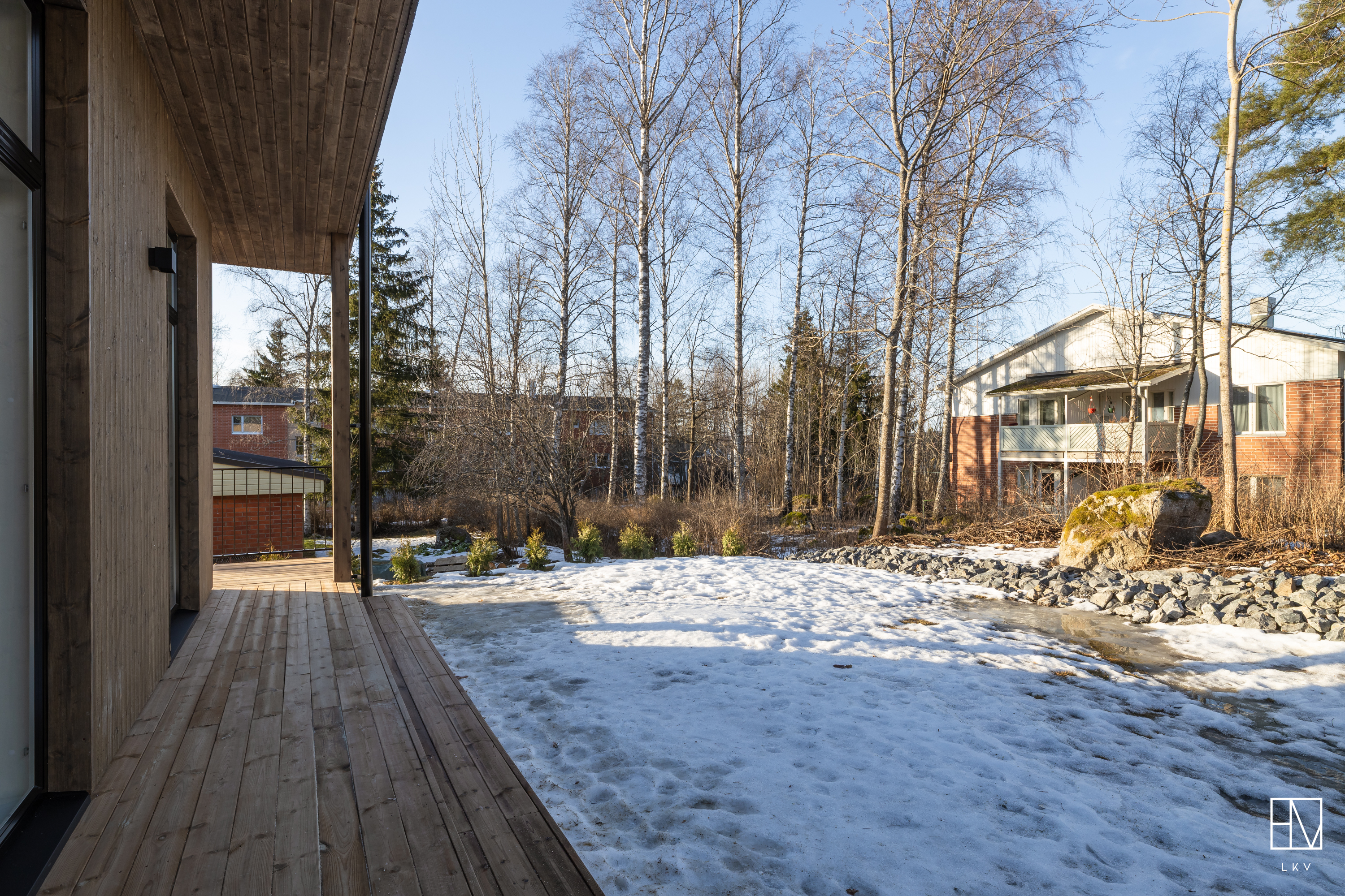 Sijainti on ihanteellinen päättyvän tien varrella. Pyhäjärven rantaan on matkaa muutama sata metriä, Pirkkalan keskustan kattaviin palveluihin ainoastaan reilu 500 metriä. Keskustasta löytyy myös koulut ja päiväkodit. Tampereelle tai lähikuntiin hyvät ajoyhteydet moottoritien kautta.