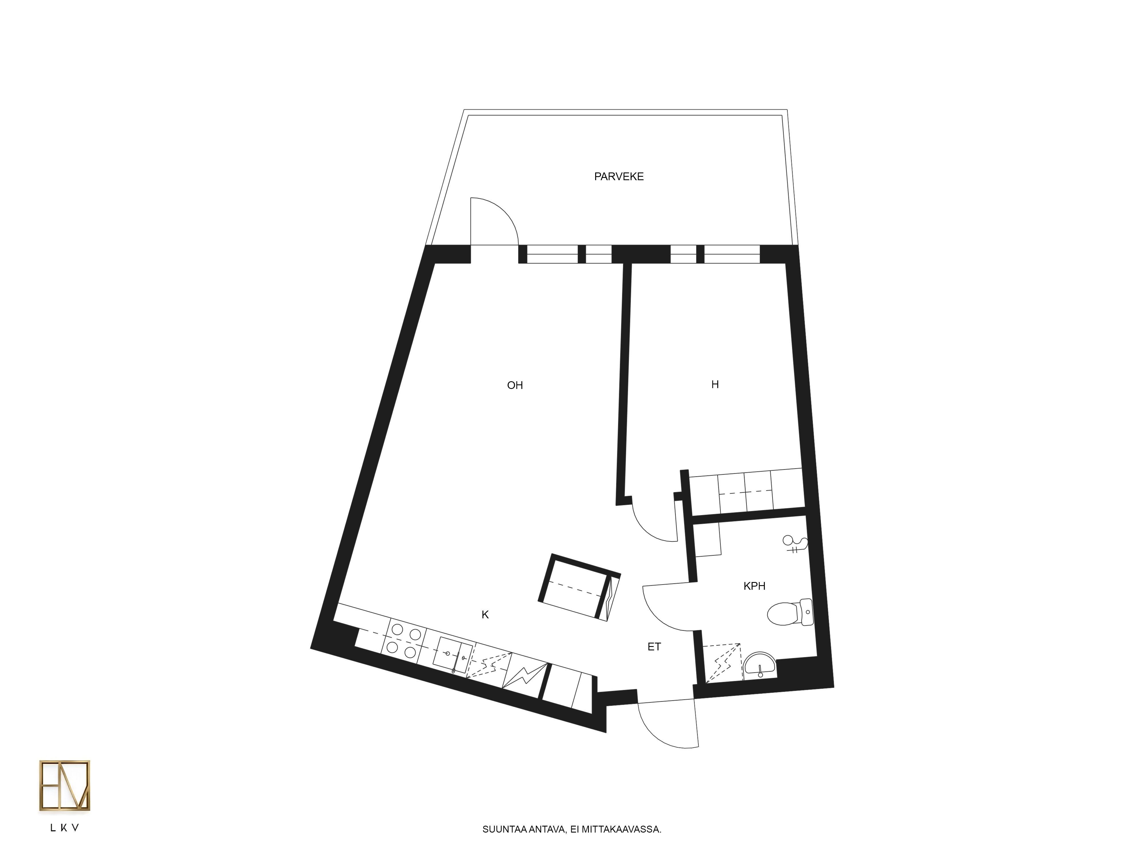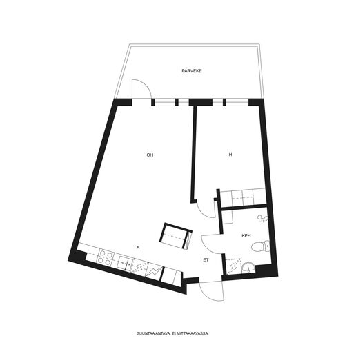 2 h, avok, kph, lasit. parveke (yj:n mukaan 2 h+kt), 44,50 m²