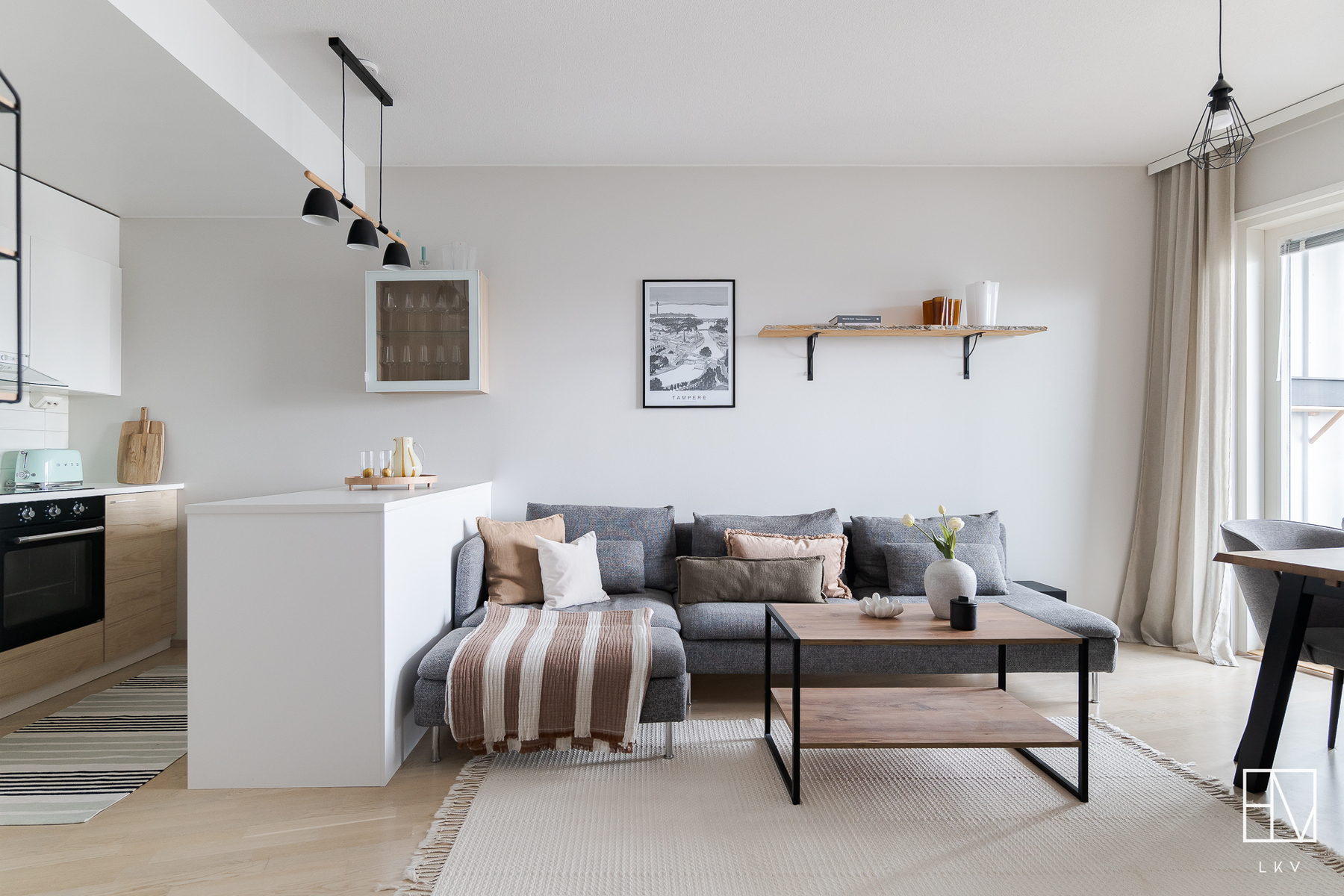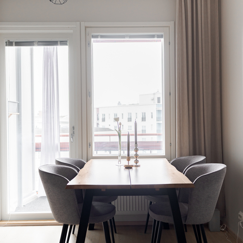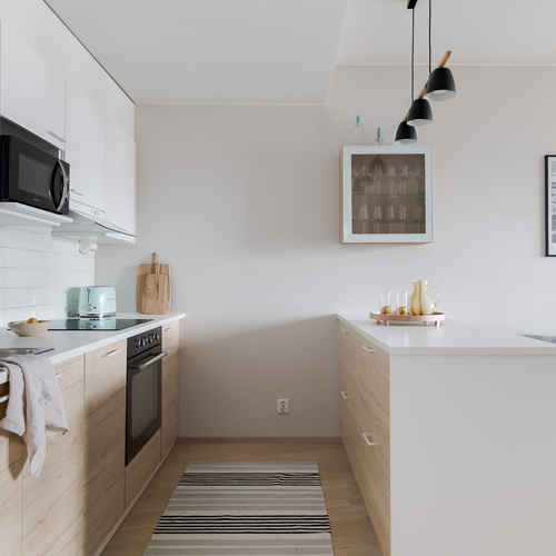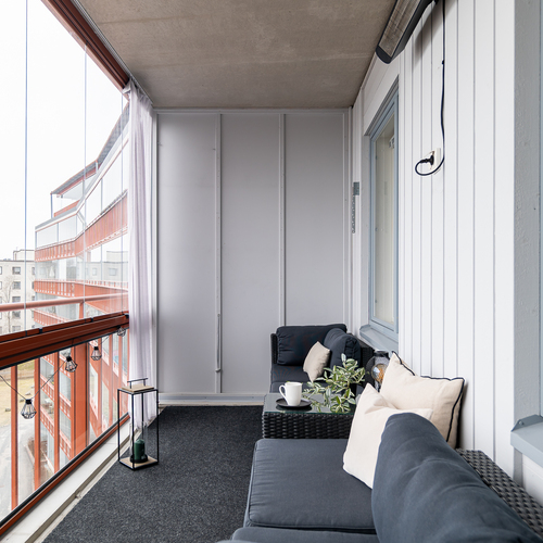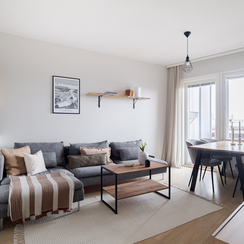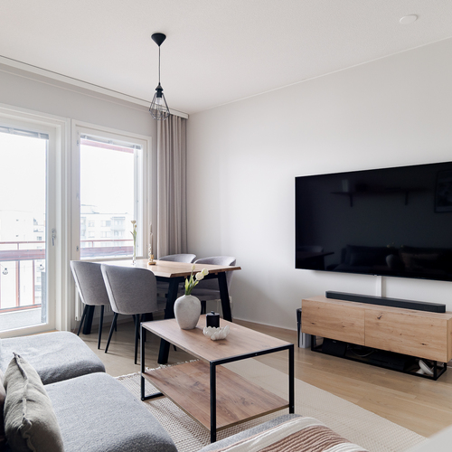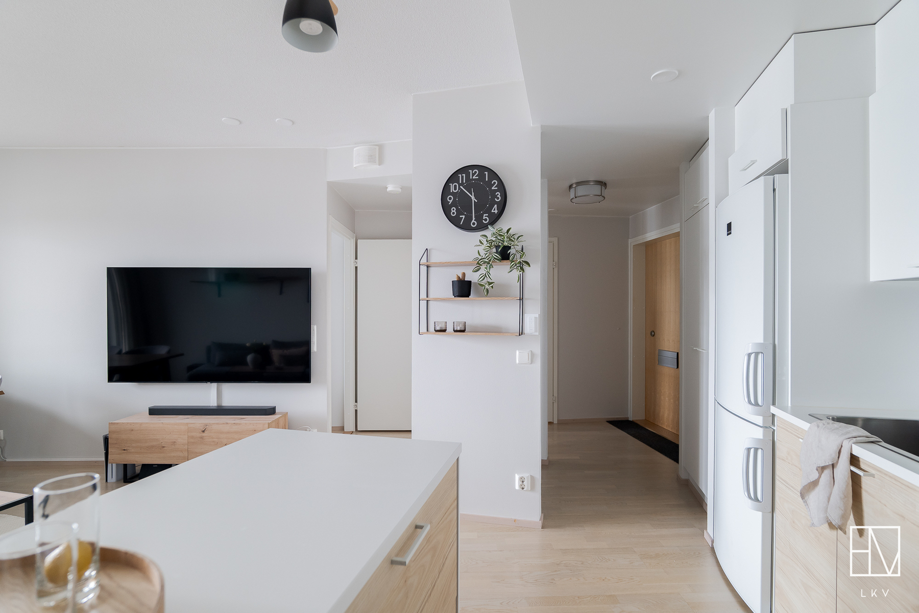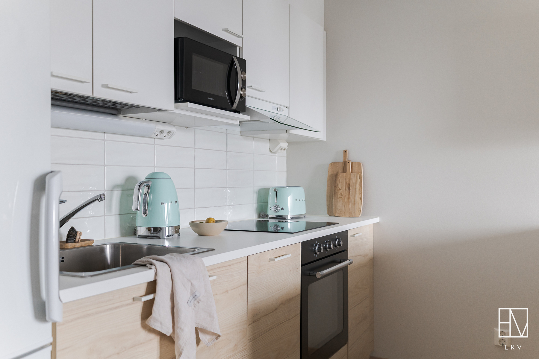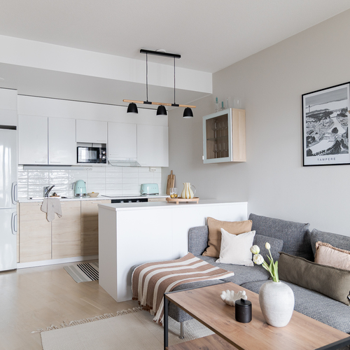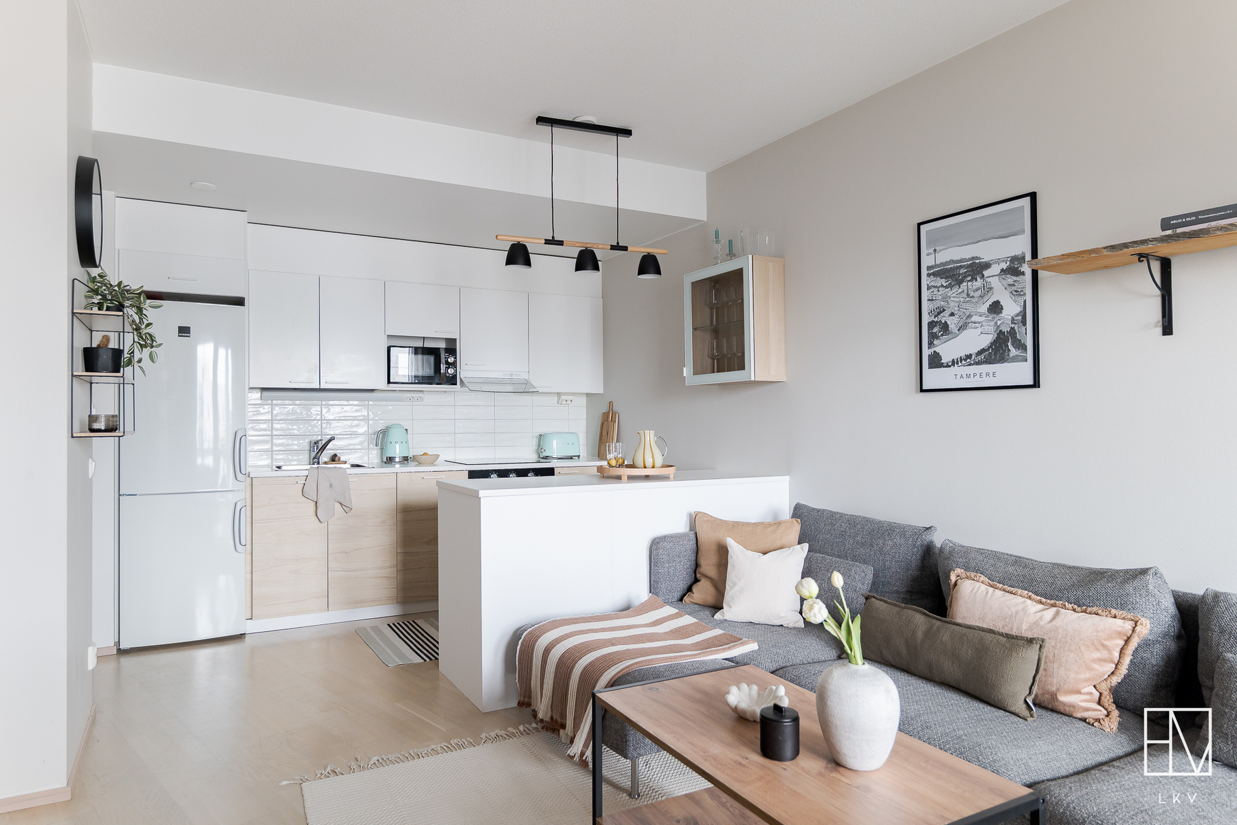 Asunnon sydämen muodostaa valoisa olohuoneen ja keittiön yhdistelmä, jossa tilaa on rytmitetty tyylikkäällä saarekkeella. Keittiö on remontoitu vuonna 2021, ja se tarjoaa erinomaiset puitteet niin arjen kokkailuun kuin vieraiden kestitsemiseen. Tilava kylpyhuone lisää asumismukavuutta, ja koko asunto on kauttaaltaan siistissä kunnossa, muuttovalmis ilman huolia. Iso lasitettu parveke sisäpihan suuntaan toimii lisähuoneena pitkälle syksyyn ja tarjoaa rauhallisen paikan nauttia näkymistä korkeuksista.