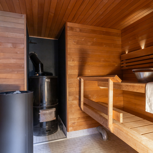Sauna, pesuhuone uusittu. Pukuhuone-kodinhoitotilan maalaus.