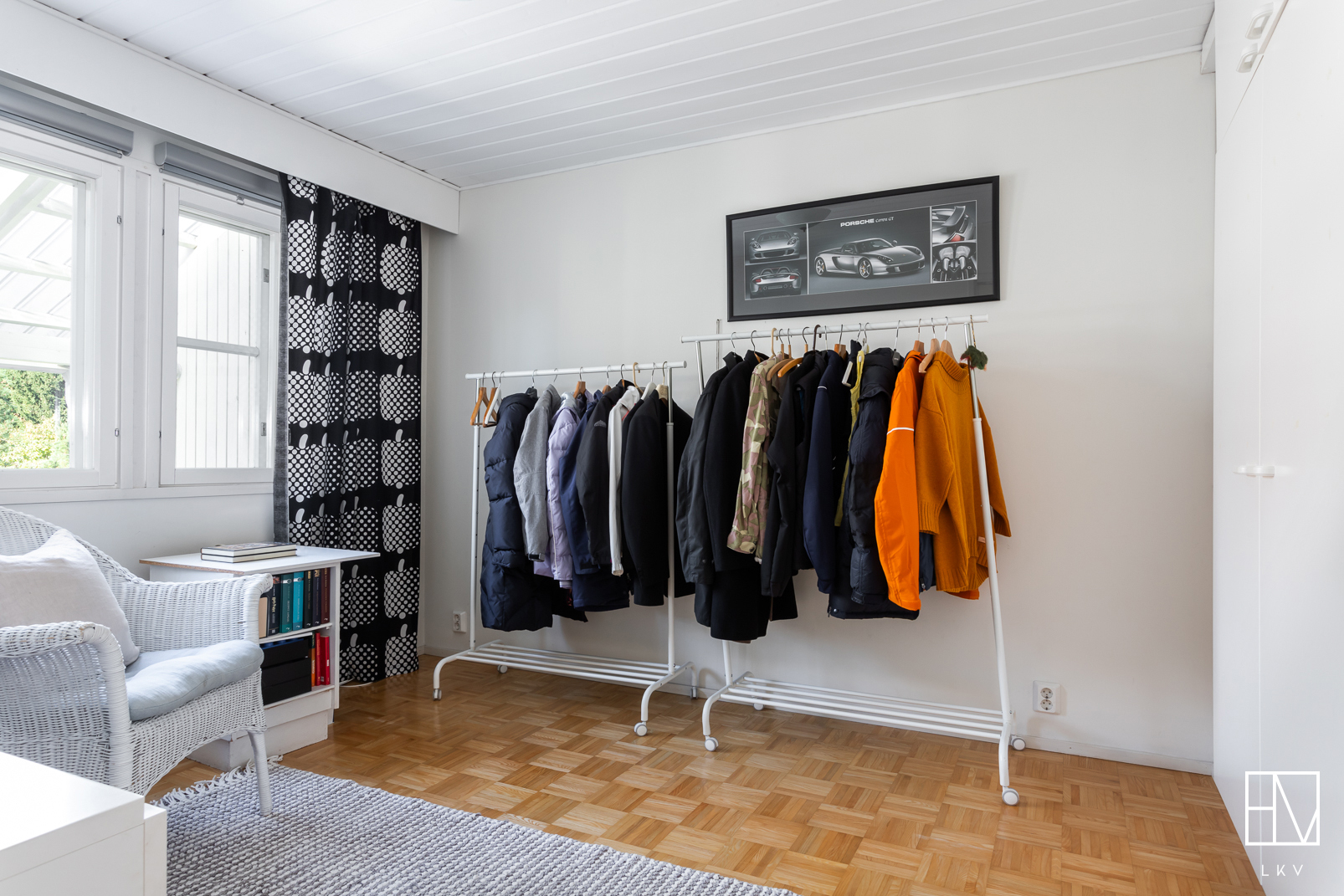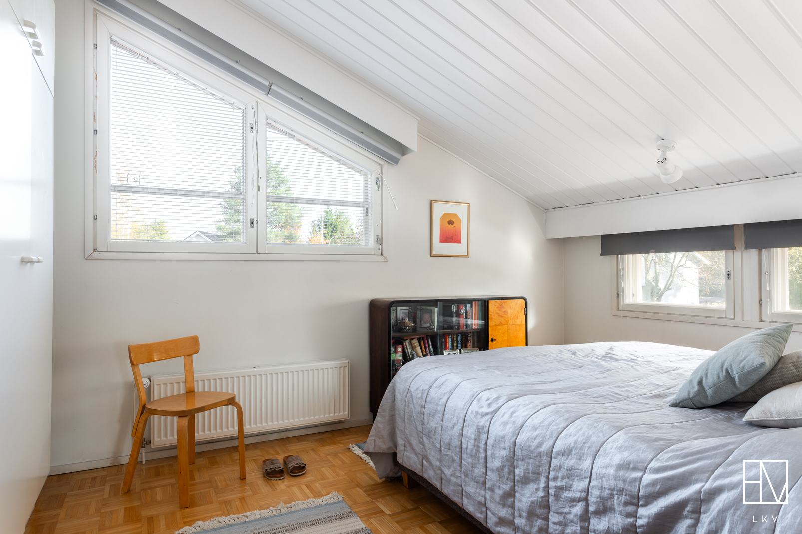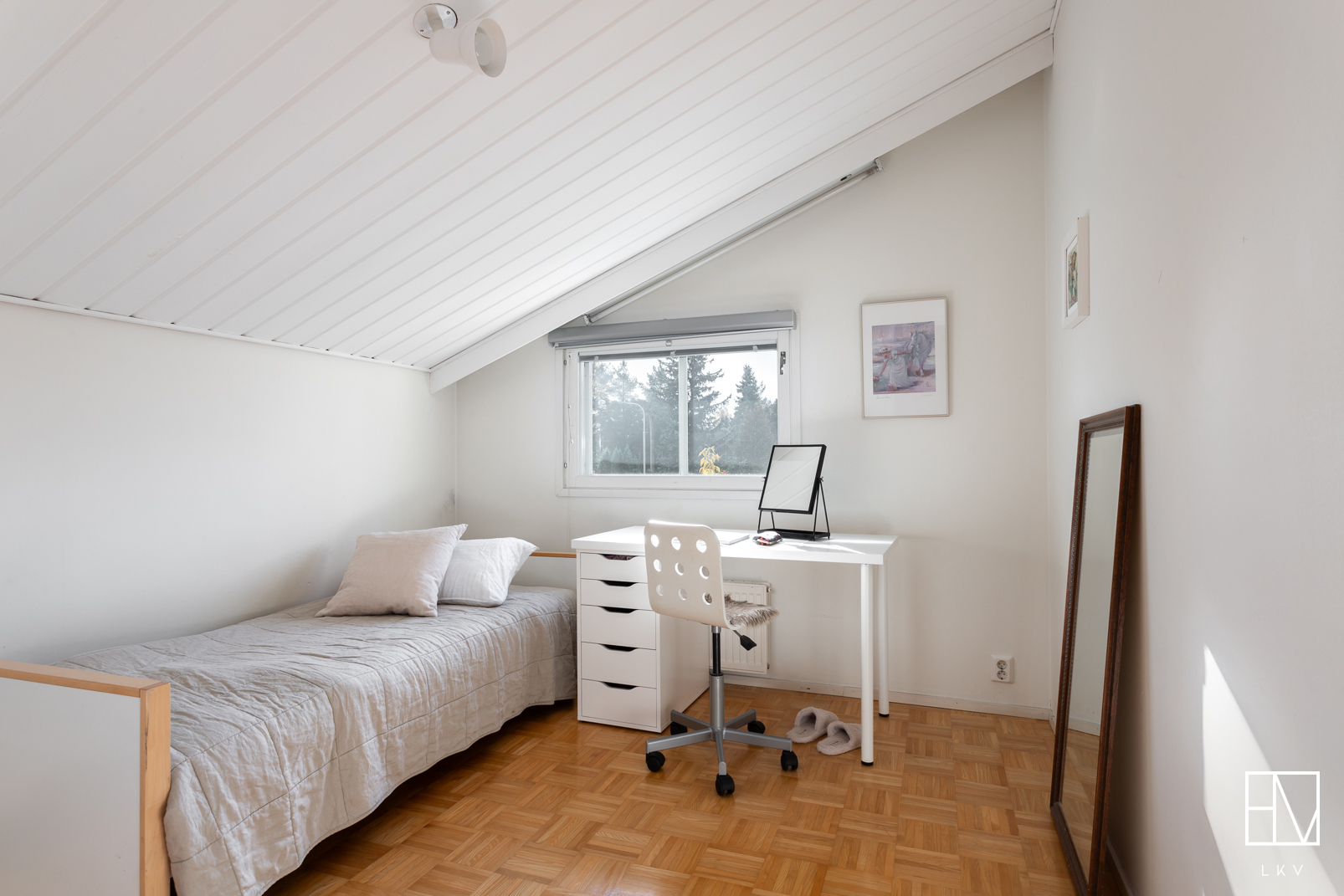 Yläkerrassa on neljä makuuhuonetta, tilava parveke ja runsaasti säilytystilaa. Kellarikerros tarjoaa saunatilat, kodinhoitohuoneen, tunnelmallisen takkahuoneen sekä runsaasti varasto- ja harrastetilaa.