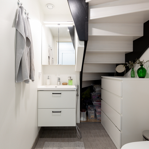 Varusteet: lattialämmitys, wc-istuin, suihku, kylpyhuonekaapisto