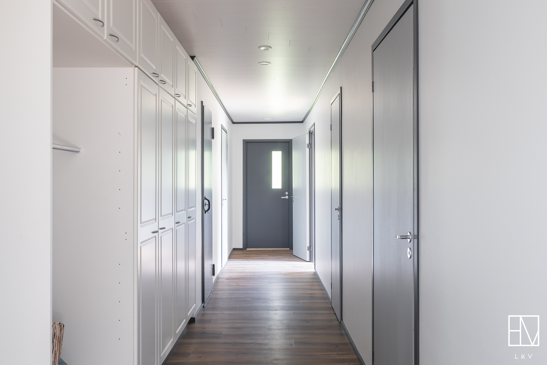 Asuintilojen pinta-alaan on laskettu olohuone, keittiö, eteinen, kolme makuuhuonetta, pukuhuone, kylpyhuone, sauna, kaksi vaatehuonetta, kaksi vessaa, kodinhoitohuone, kylmiö/komero, tuulikaappi, vanha eteinen ja kuivaushuone.