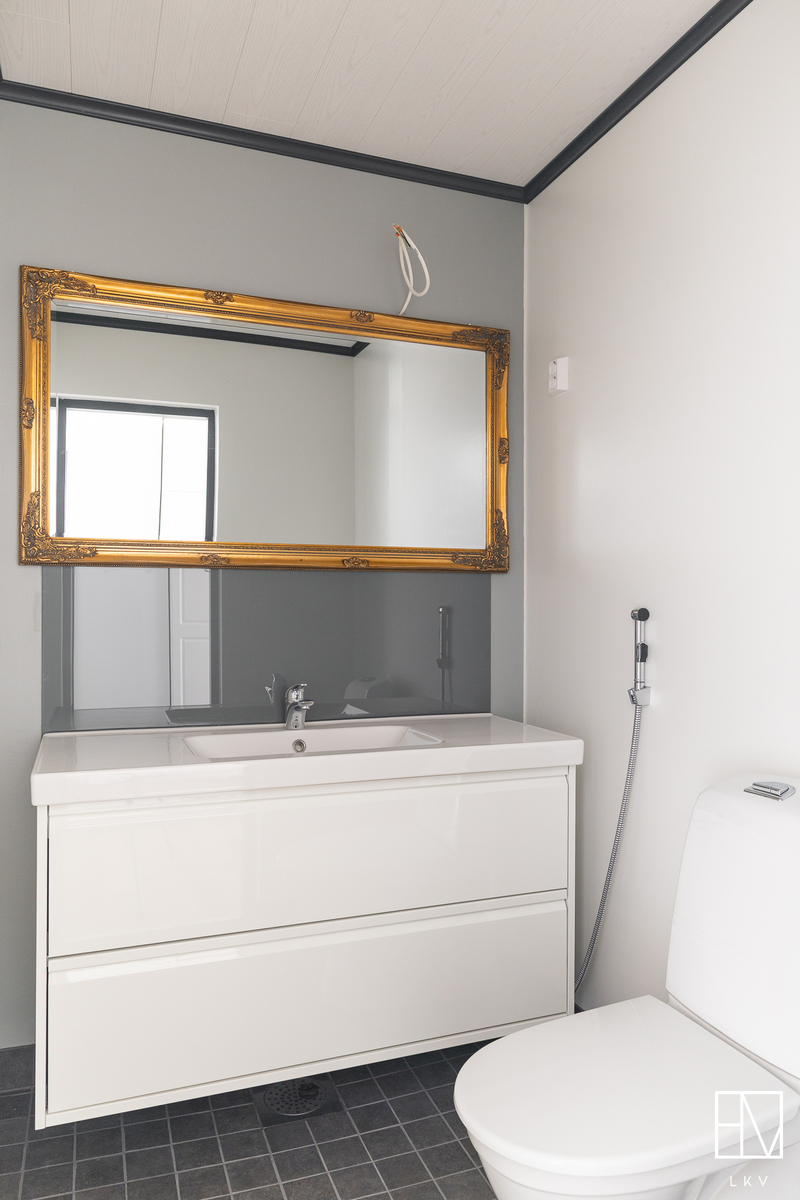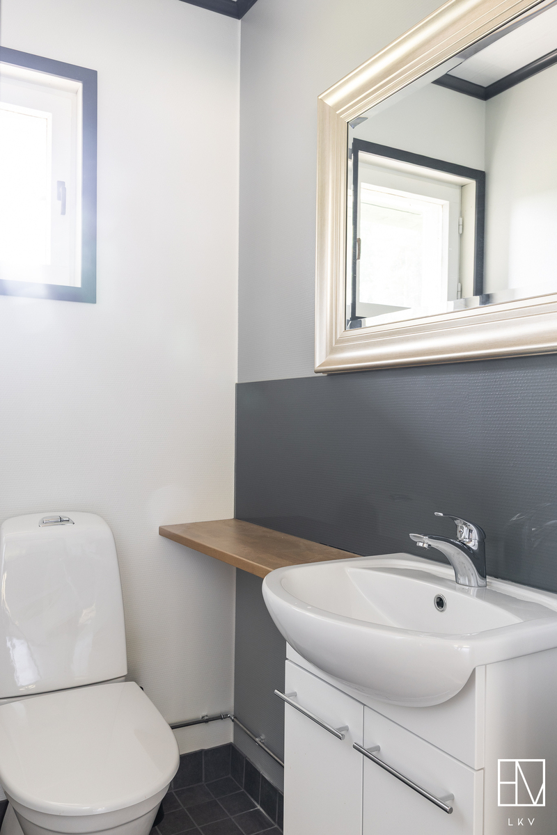 VARUSTUS: wc-istuin, bidee-suihku, tilava allaskaapisto, hana, peili