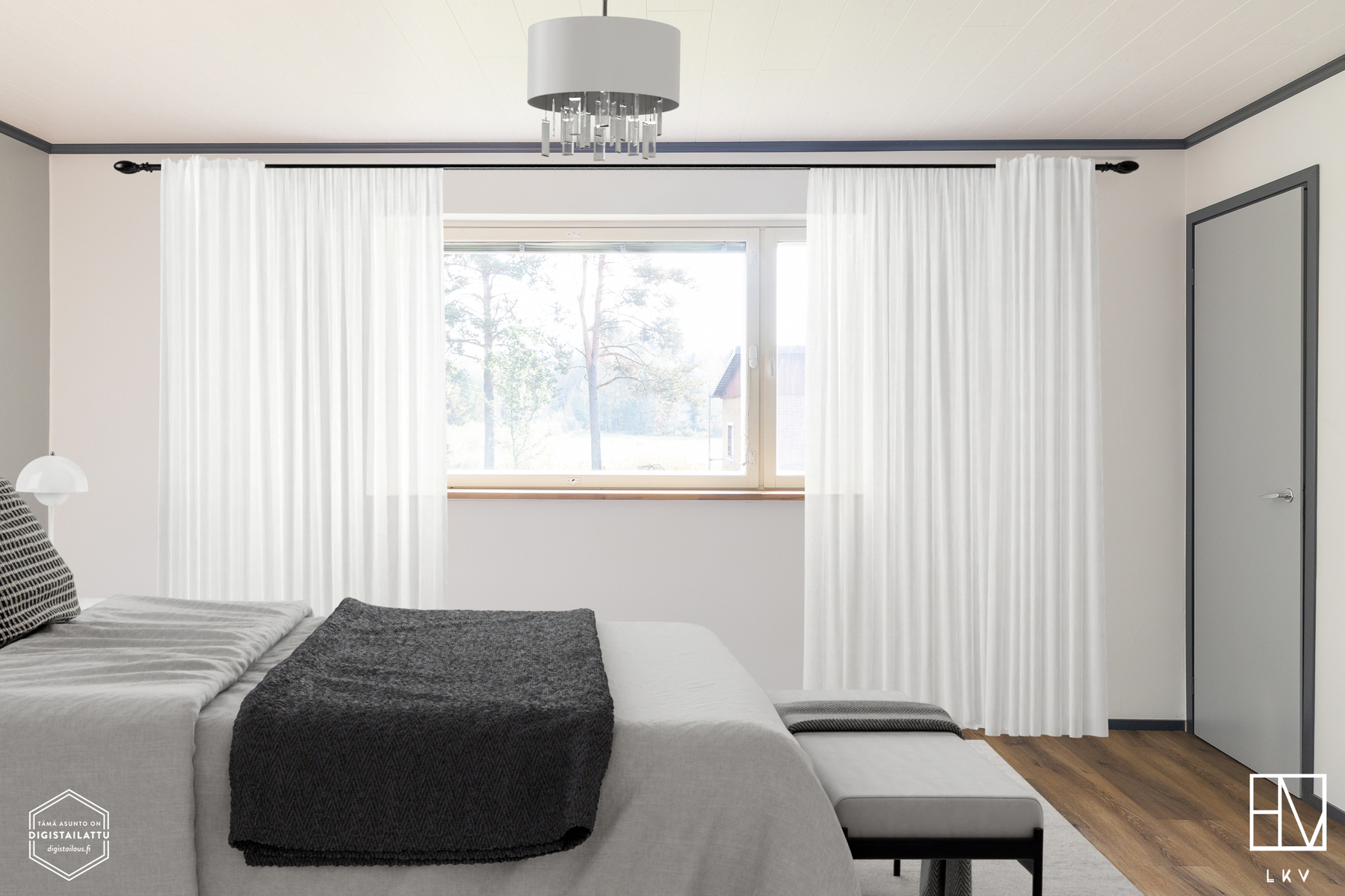 Varusteet: sälekaihtimet/rullaverhot, ilmalämpöpumppu