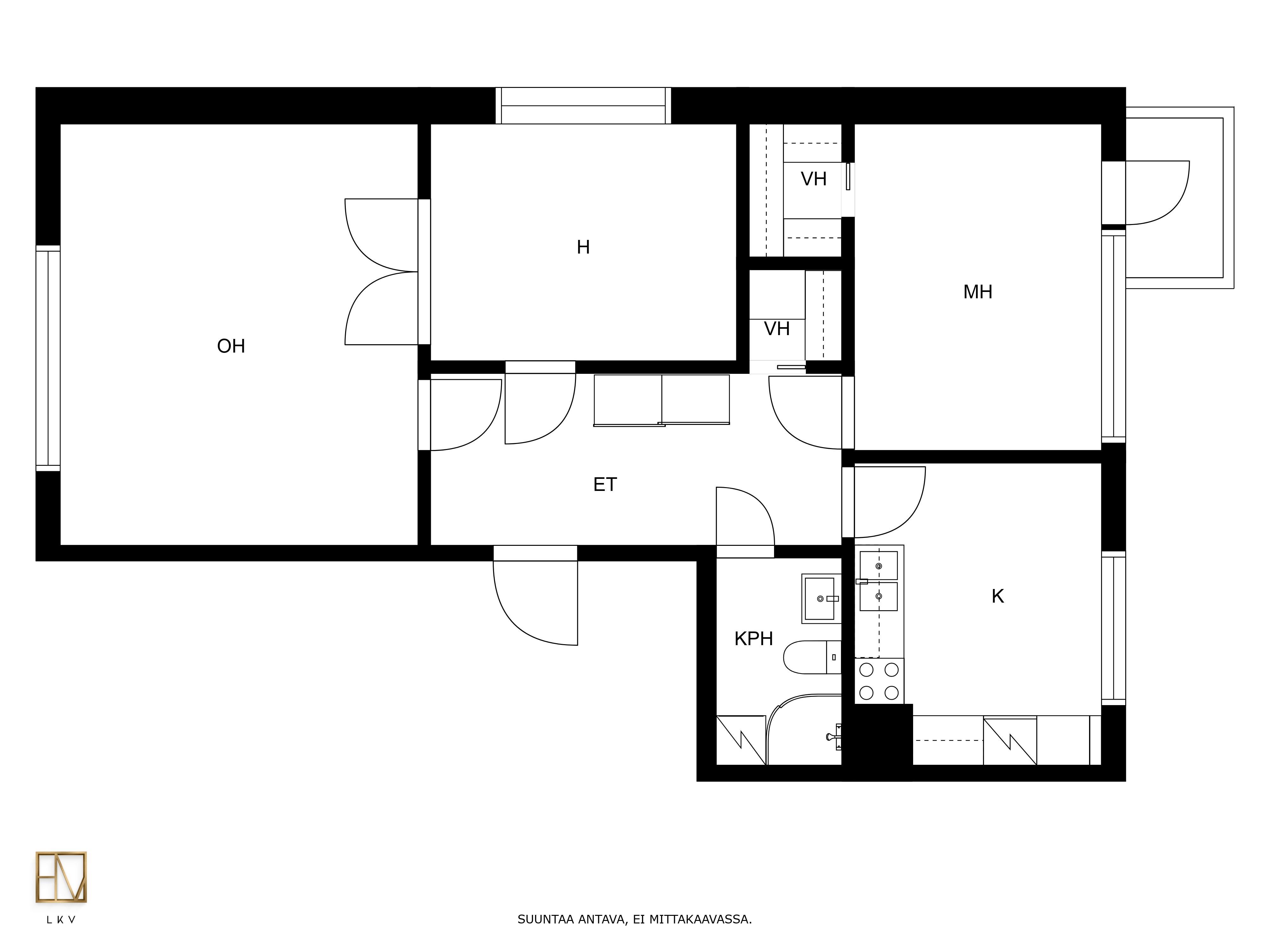Maanläheisen sävyisessä keittiössä on hyvin lasku- ja säilytystilaa sekä paikka ruokailuryhmälle. Isosta olohuoneesta avautuvat pariovet asunnon toiseen huoneeseen, joka toimii loistavasti vaikkapa oleskelutilan jatkeena, erillisenä makuuhuoneena, kirjastona tai työtilana. Toisen makuuhuoneen yhteydessä on tilava vaatehuone sekä kulku parvekkeelle. Molemmat makuuhuoneet ovat reilun kokoiset. Eteisestä löytyy lisäksi toinen vaatehuone sekä liukuovikaapistot. Kodin tilavaan kylpyhuoneeseen mahtuu mukavasti kaikki tarvittavat toiminnot. Tämä koti on todellinen keskusta-asujan unelma!