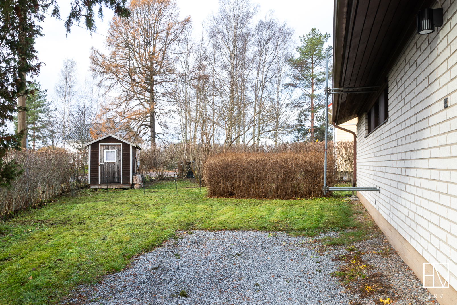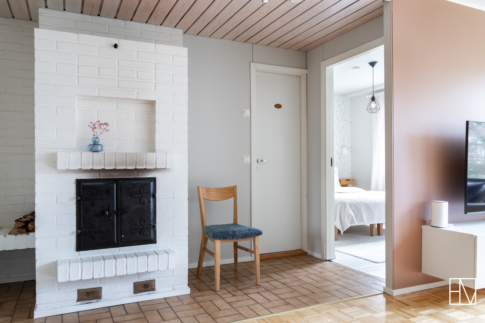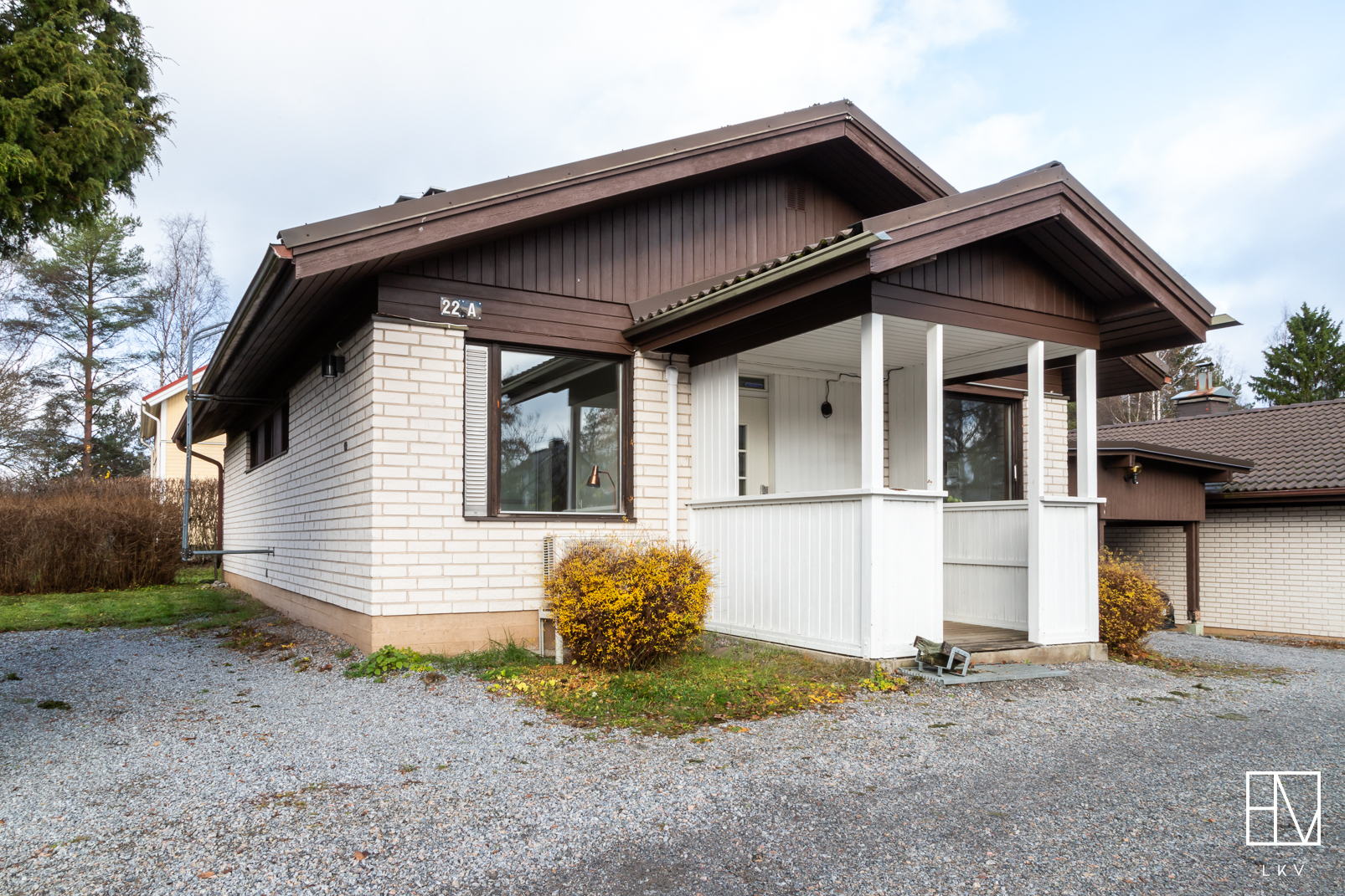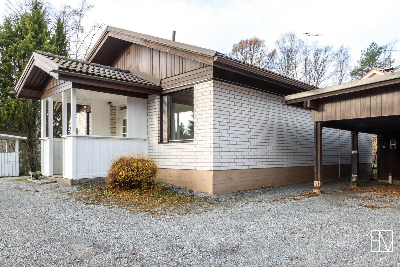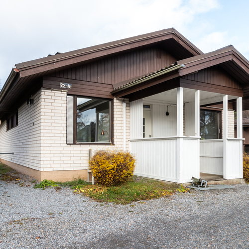 Pohjaratkaisu sopii mainiosti moneen eri elämäntilanteeseen esimerkiksi pienelle perheelle tai jopa isompaa kotia etsivälle sinkkutaloudelle. Talossa on kaksi tilavaa makuuhuonetta, erillinen wc, puukiukaalla varustettu saunaosasto sekä keittiön ja olohuoneen muodostama yhtenäinen tila. Keittiössä on hyvin tilaa kotikokille ja olohuoneessa keskeisellä paikalla sijaitseva takka, nostaa talven saapuessa kodin tunnelmaa ja pienentää lämmityskustannuksia. Olohuoneesta on käynti suojaisalle ja isolle takapihalle. Huoneiston vieressä on tilava varasto sekä autokatospaikka. Tilaa on myös toiselle autolle.