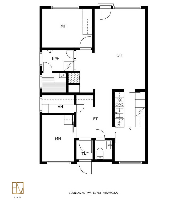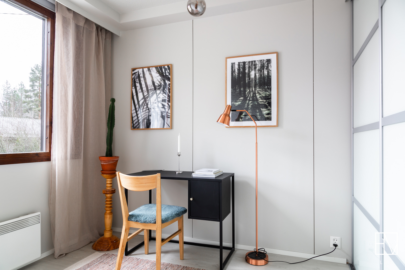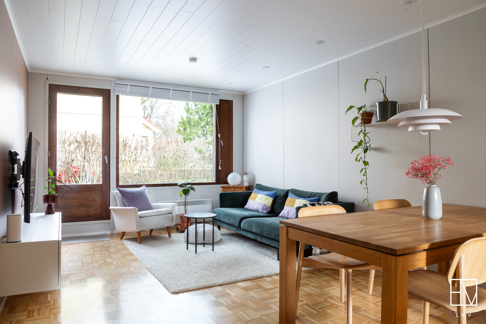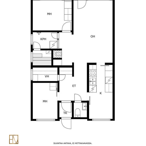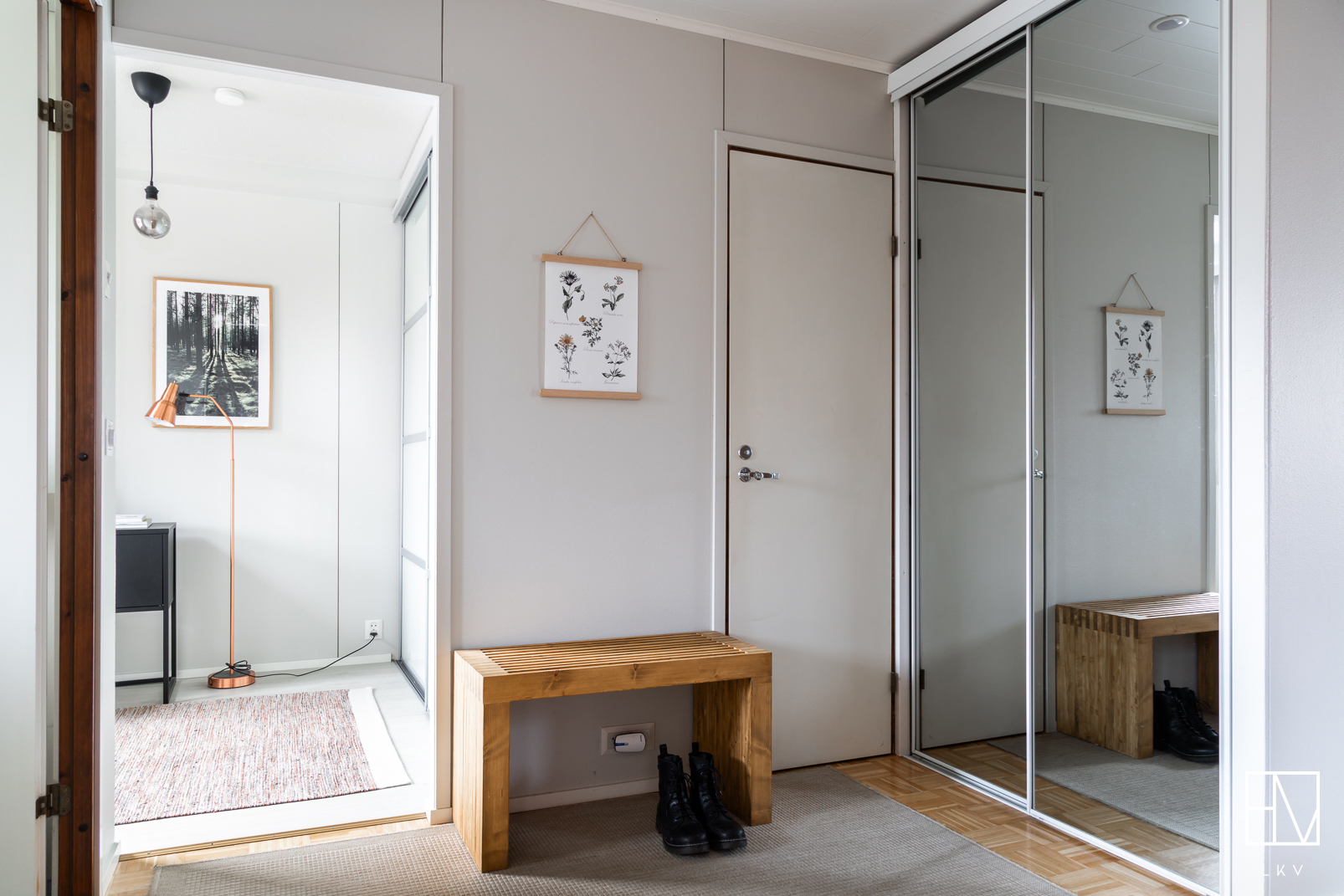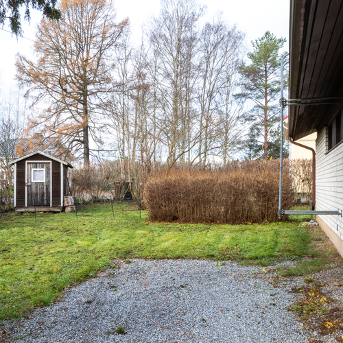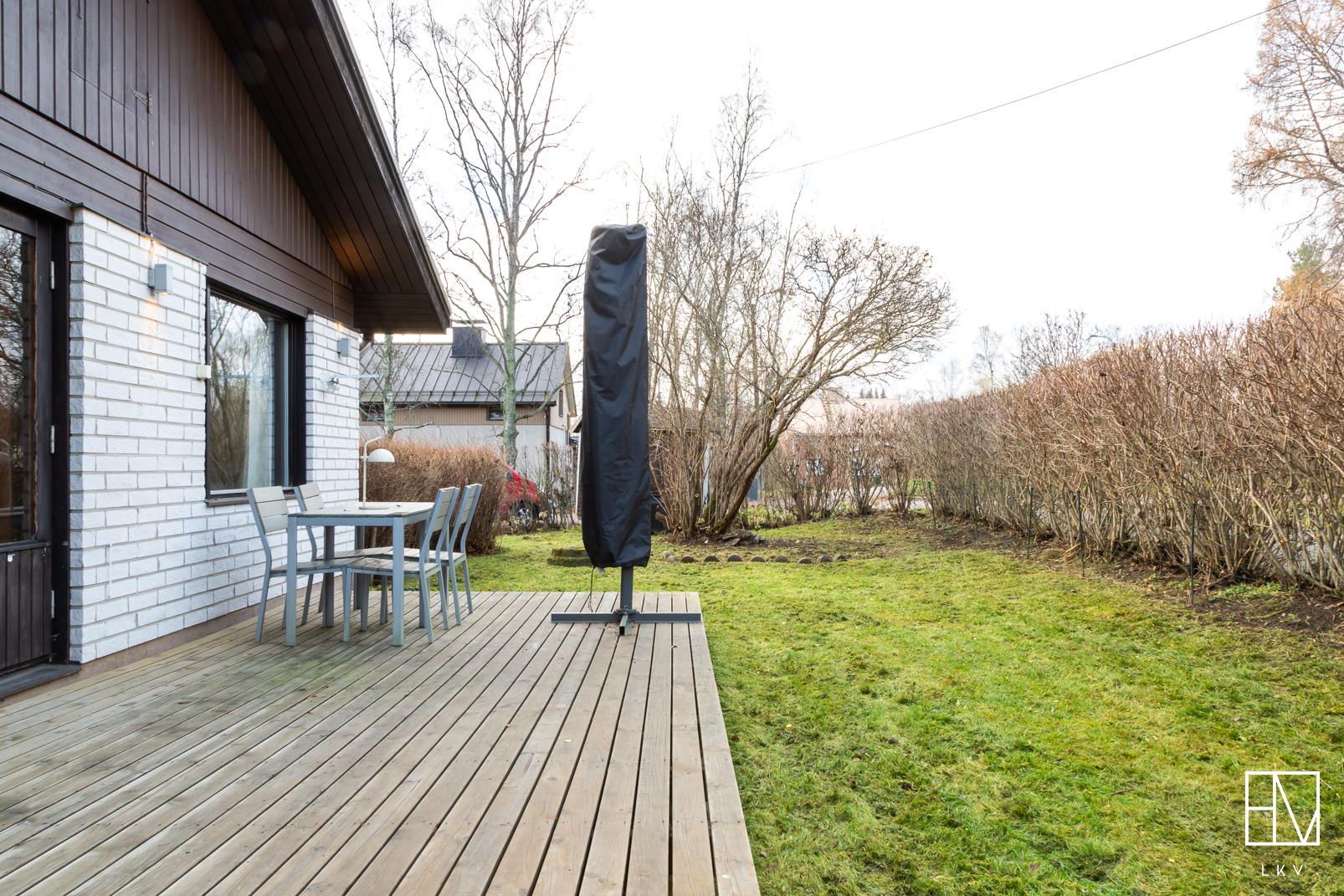 Pohjaratkaisu sopii mainiosti moneen eri elämäntilanteeseen esimerkiksi pienelle perheelle tai jopa isompaa kotia etsivälle sinkkutaloudelle. Talossa on kaksi tilavaa makuuhuonetta, erillinen wc, puukiukaalla varustettu saunaosasto sekä keittiön ja olohuoneen muodostama yhtenäinen tila. Keittiössä on hyvin tilaa kotikokille ja olohuoneessa keskeisellä paikalla sijaitseva takka, nostaa talven saapuessa kodin tunnelmaa ja pienentää lämmityskustannuksia. Olohuoneesta on käynti suojaisalle ja isolle takapihalle. Huoneiston vieressä on tilava varasto sekä autokatospaikka. Tilaa on myös toiselle autolle.