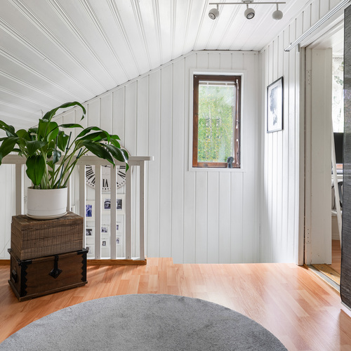 Pintamateriaalit: Keskikerroksessa lauta- ja parkettilattioita. Ylimmässä kerroksessa laminaatti.