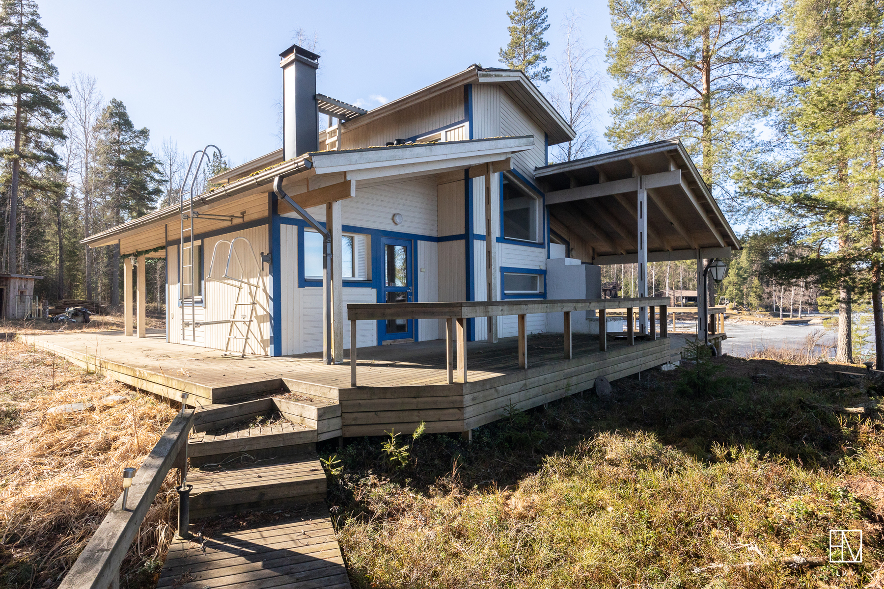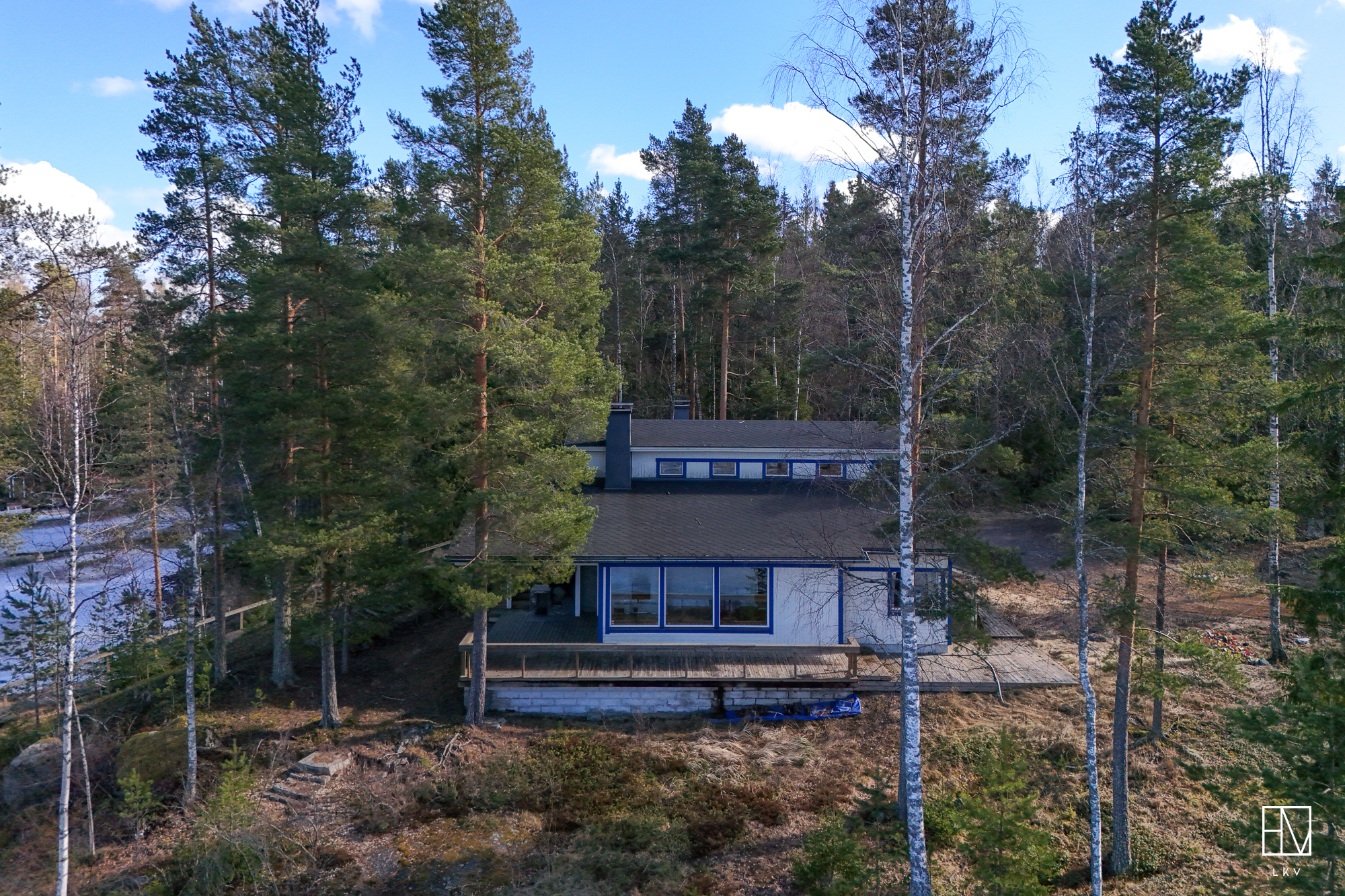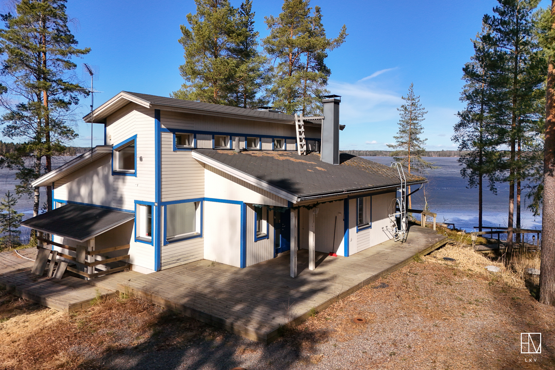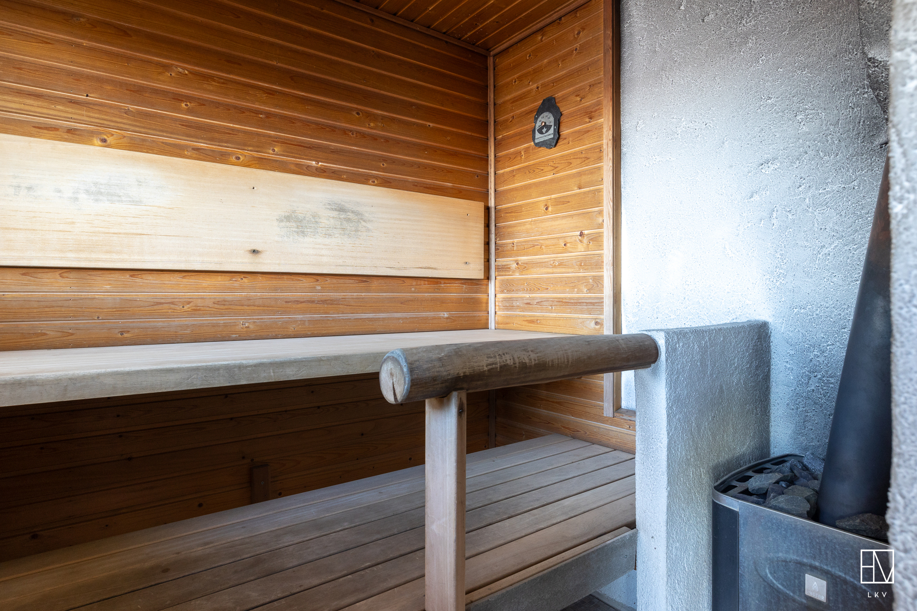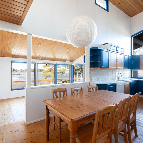 Kokonaisuus on toimiva ja viihtyisä: kaksi makuuhuonetta, tilava parvi, avara olohuone, iso keittiö sekä tunnelmaa luovat takat niin sisällä kuin terassillakin. Lisäksi perinteinen puusauna kruunaa mökkielämän.