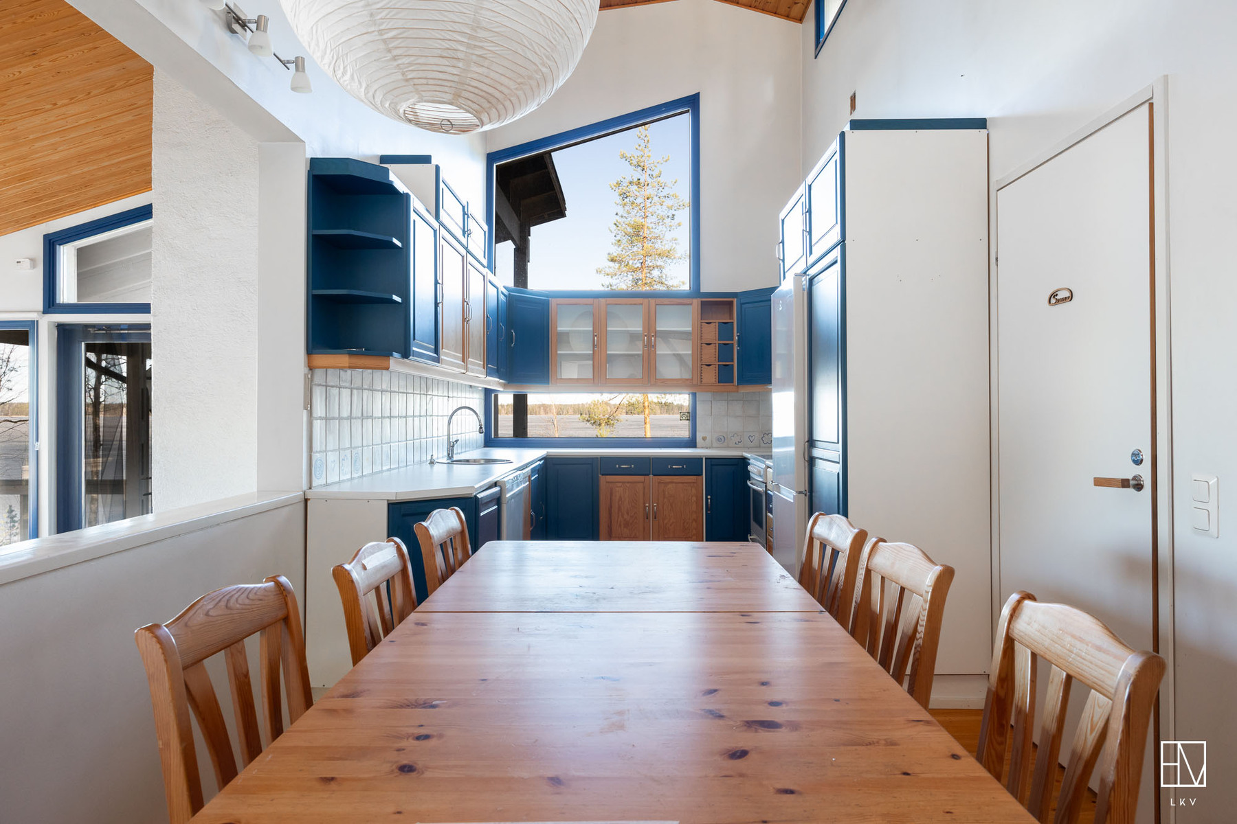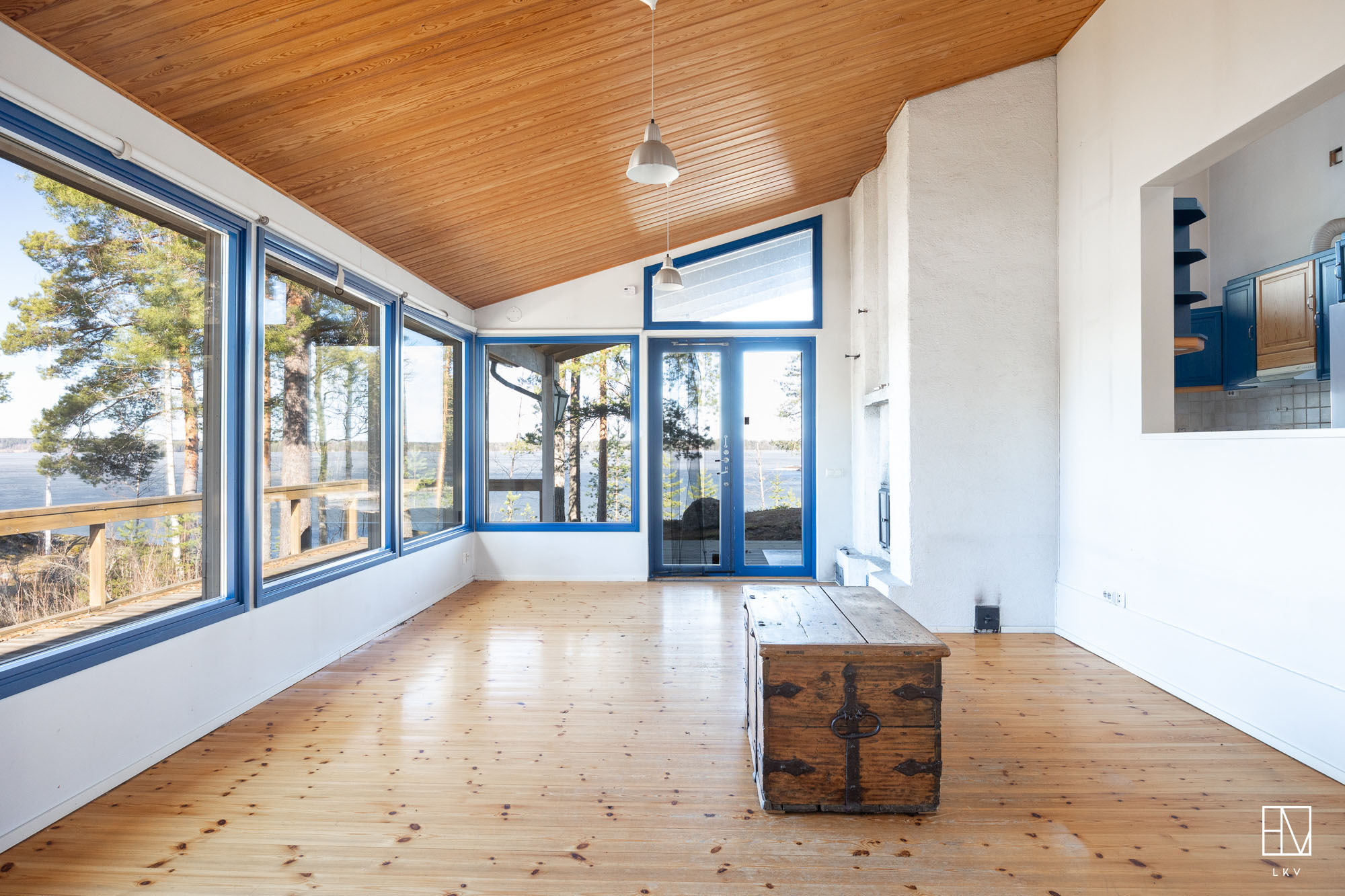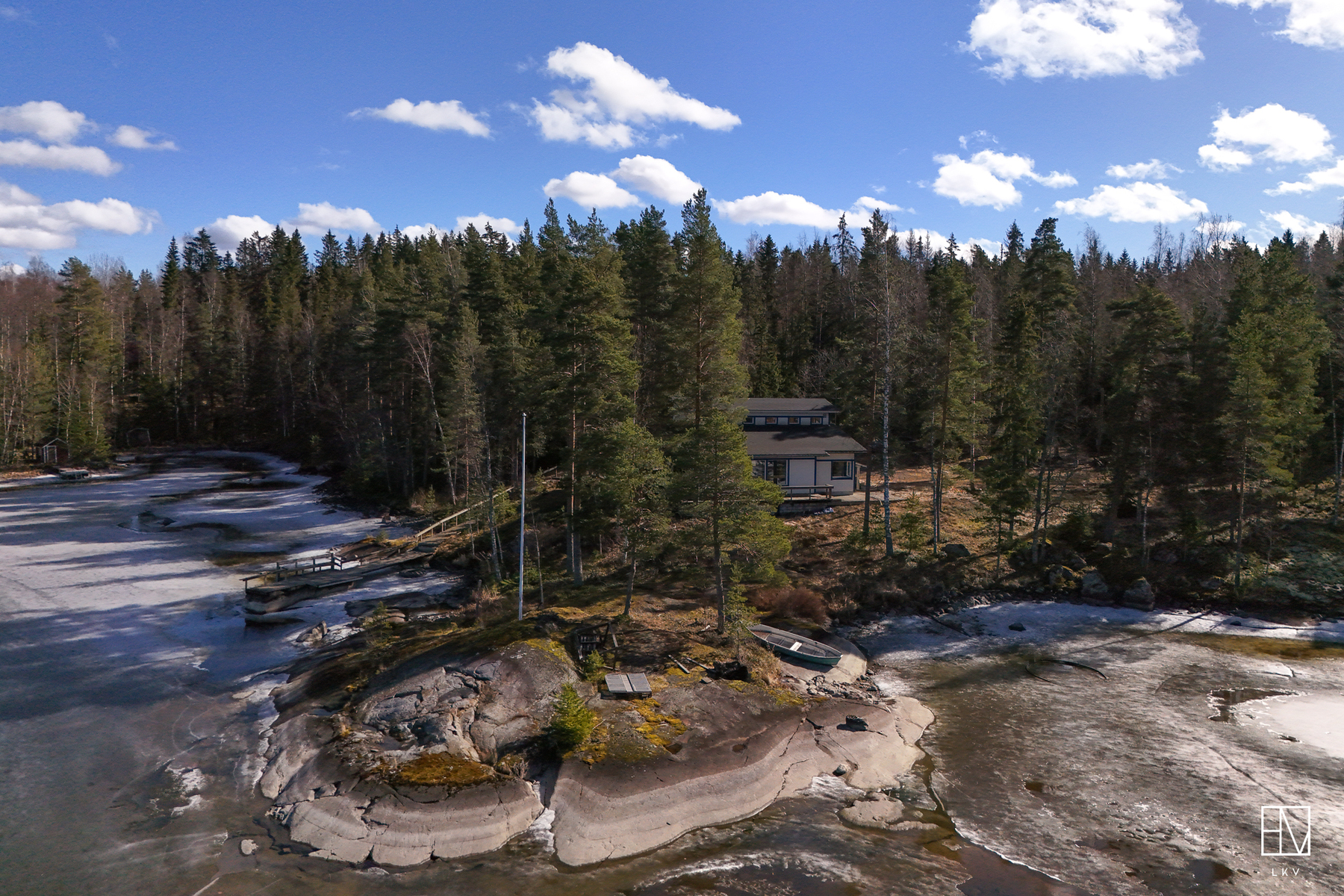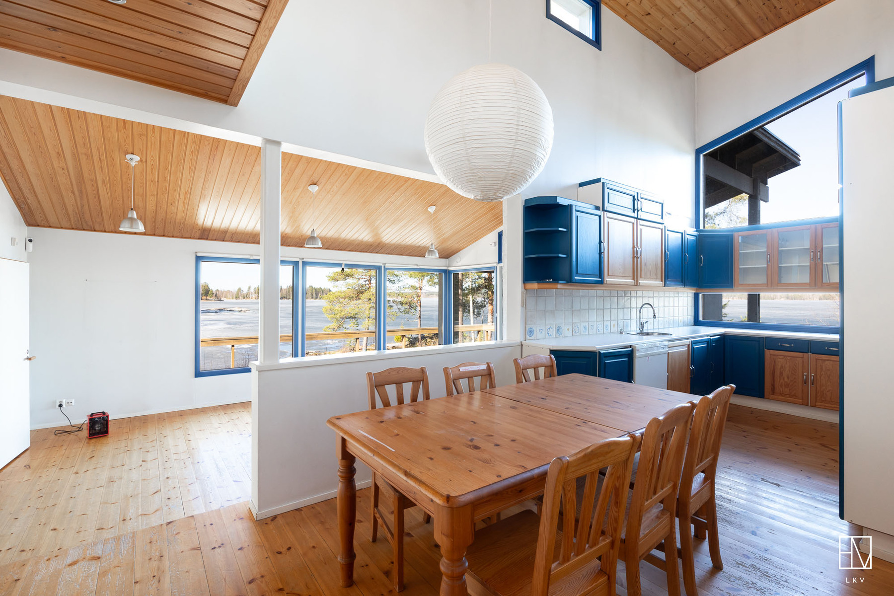 Kokonaisuus on toimiva ja viihtyisä: kaksi makuuhuonetta, tilava parvi, avara olohuone, iso keittiö sekä tunnelmaa luovat takat niin sisällä kuin terassillakin. Lisäksi perinteinen puusauna kruunaa mökkielämän.