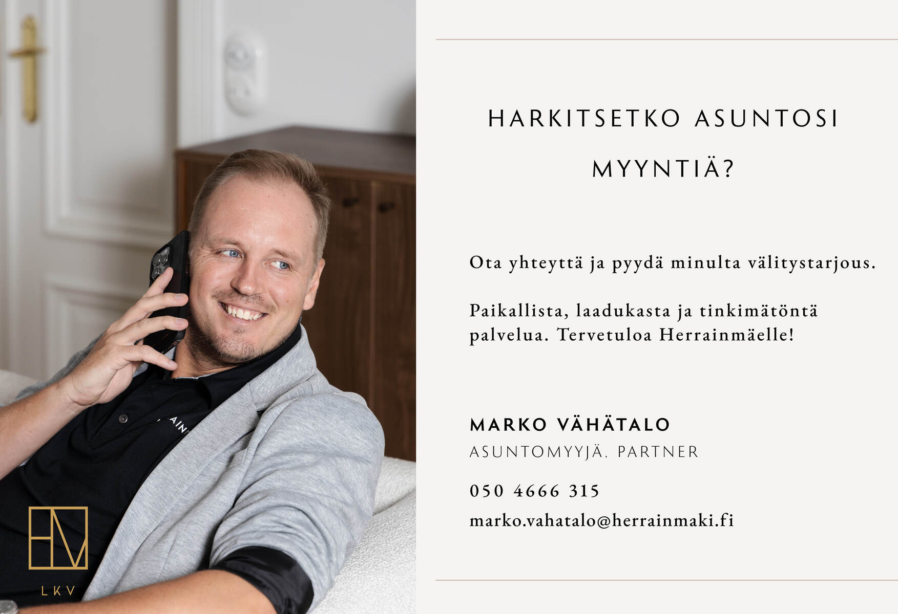 Marko VähätaloAsuntomyyjä, partnermarko.vahatalo@herrainmaki.fi050 466 6315