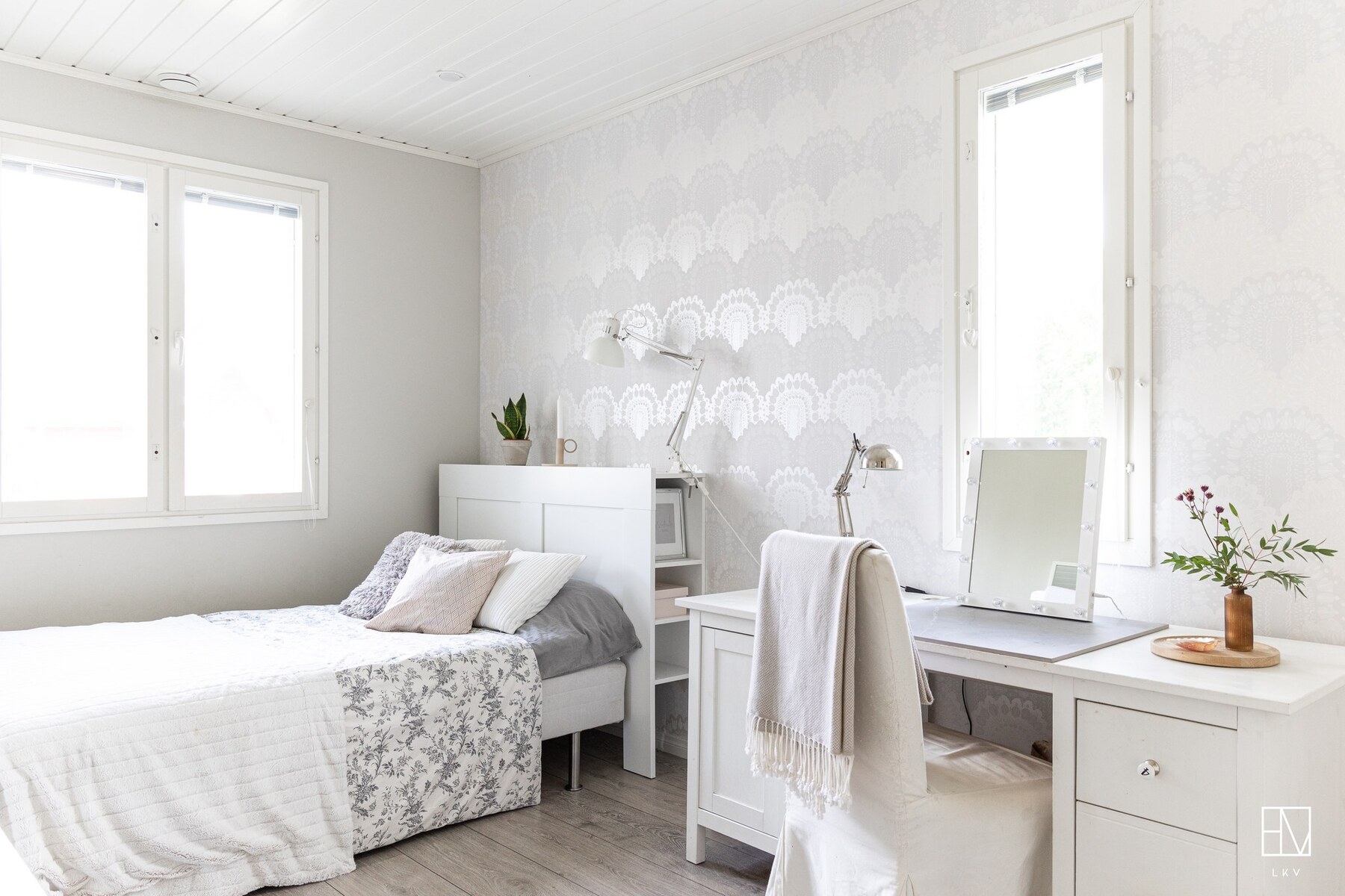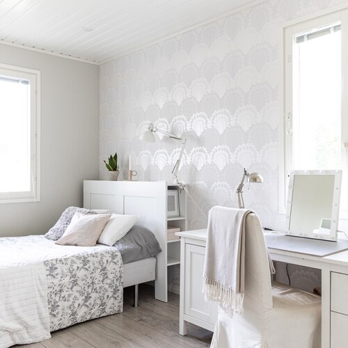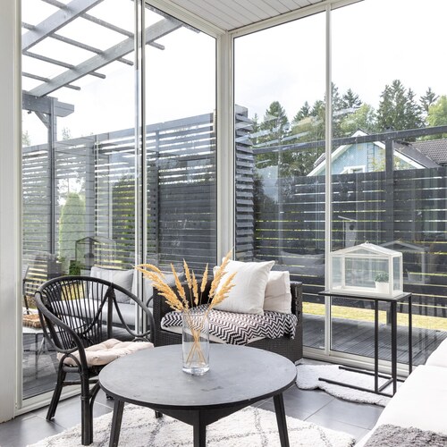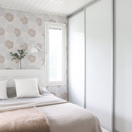 Tämä tilava ja valoisa koti tarjoaa neljä makuuhuonetta, joista pieninkin on yli 10 m².