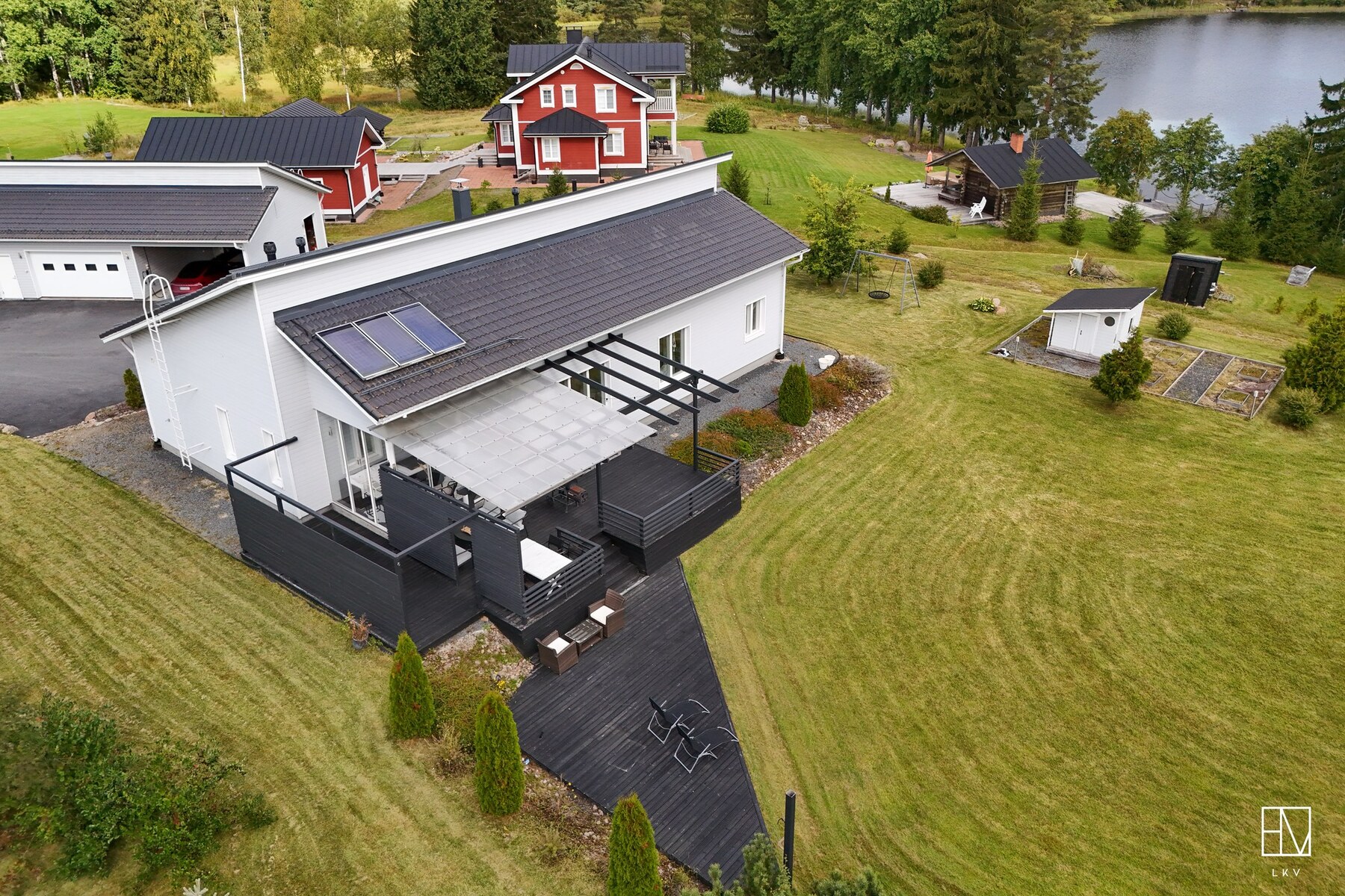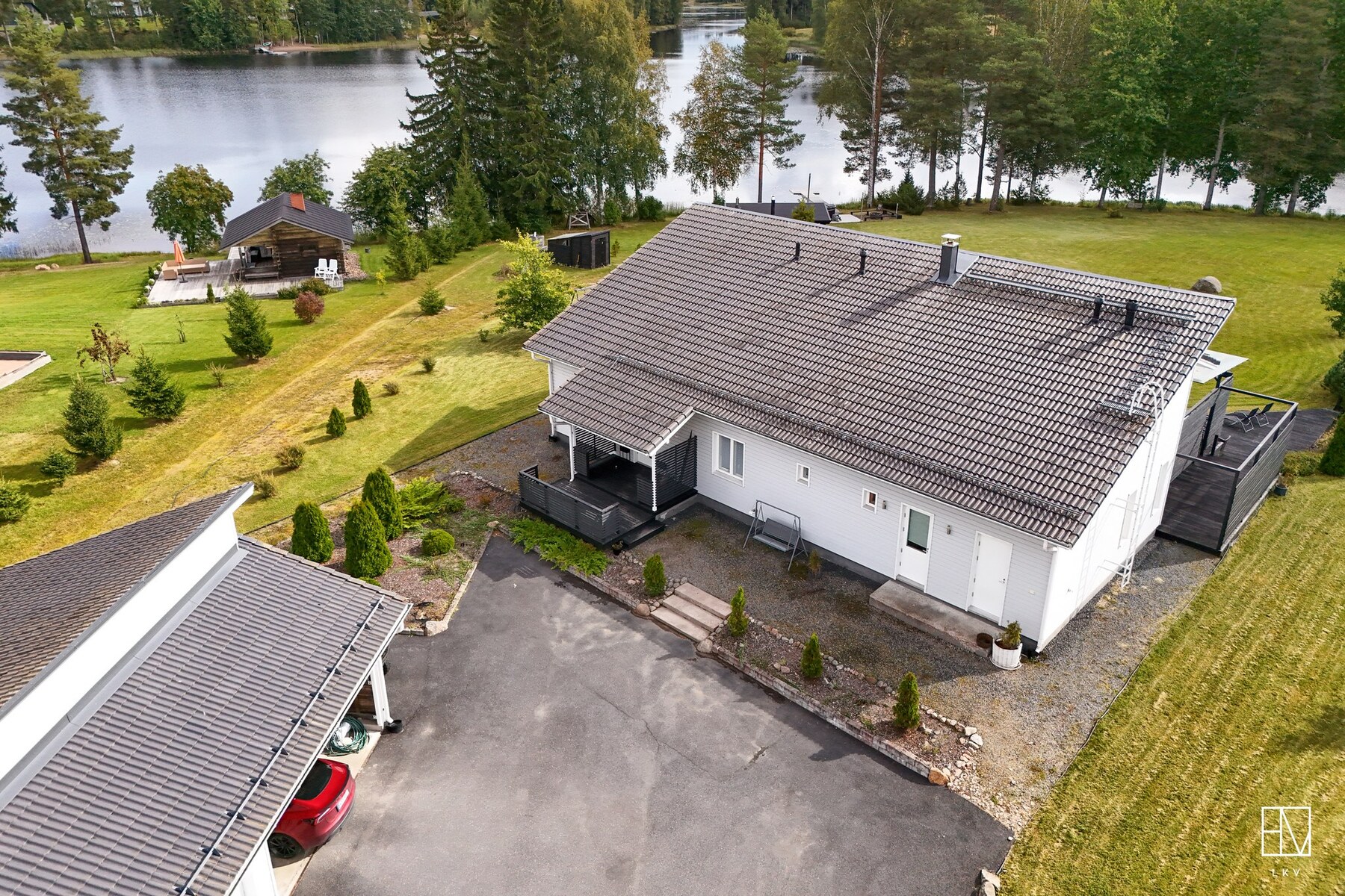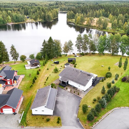 Taloa täydentävät lämmin autotalli, iso varasto sekä upea rantasauna, täydellinen paikka rentoutumiseen ympäri vuoden. Rannan eteläpäästä lähtee suosittu virkistyskalastusjoki Viinikanjoki.
