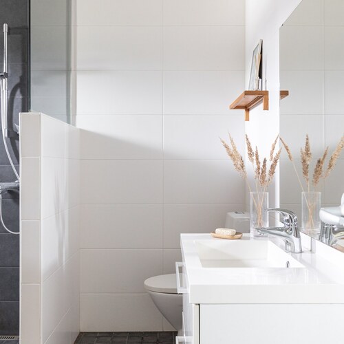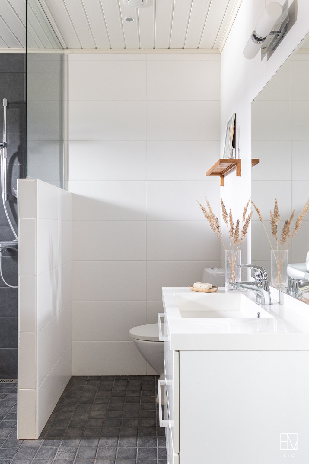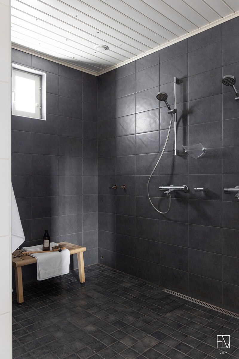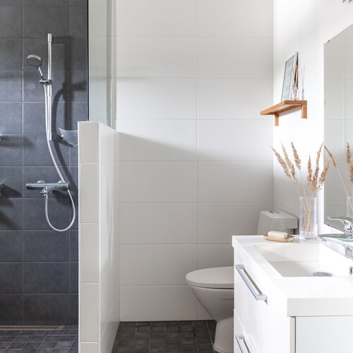 Lattia: laatta. Seinät: kaakeli
