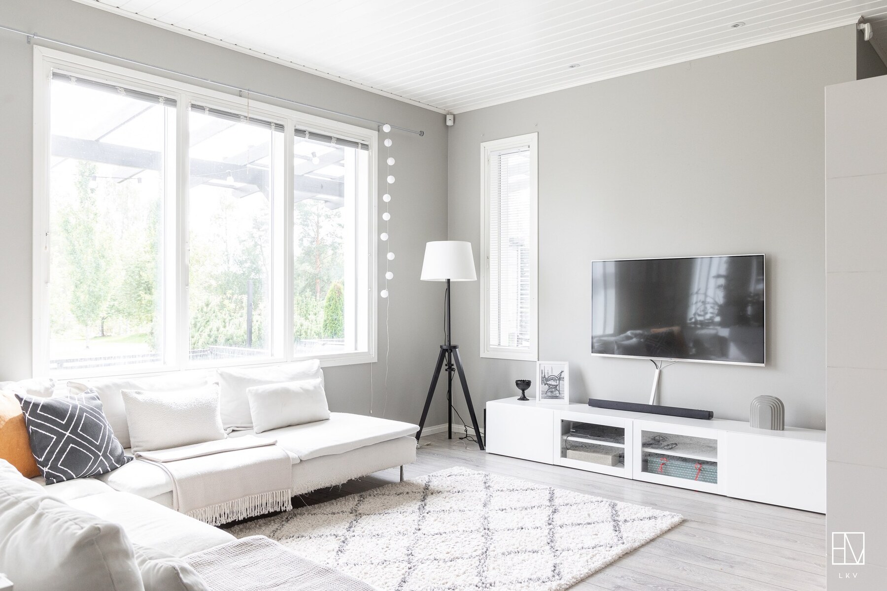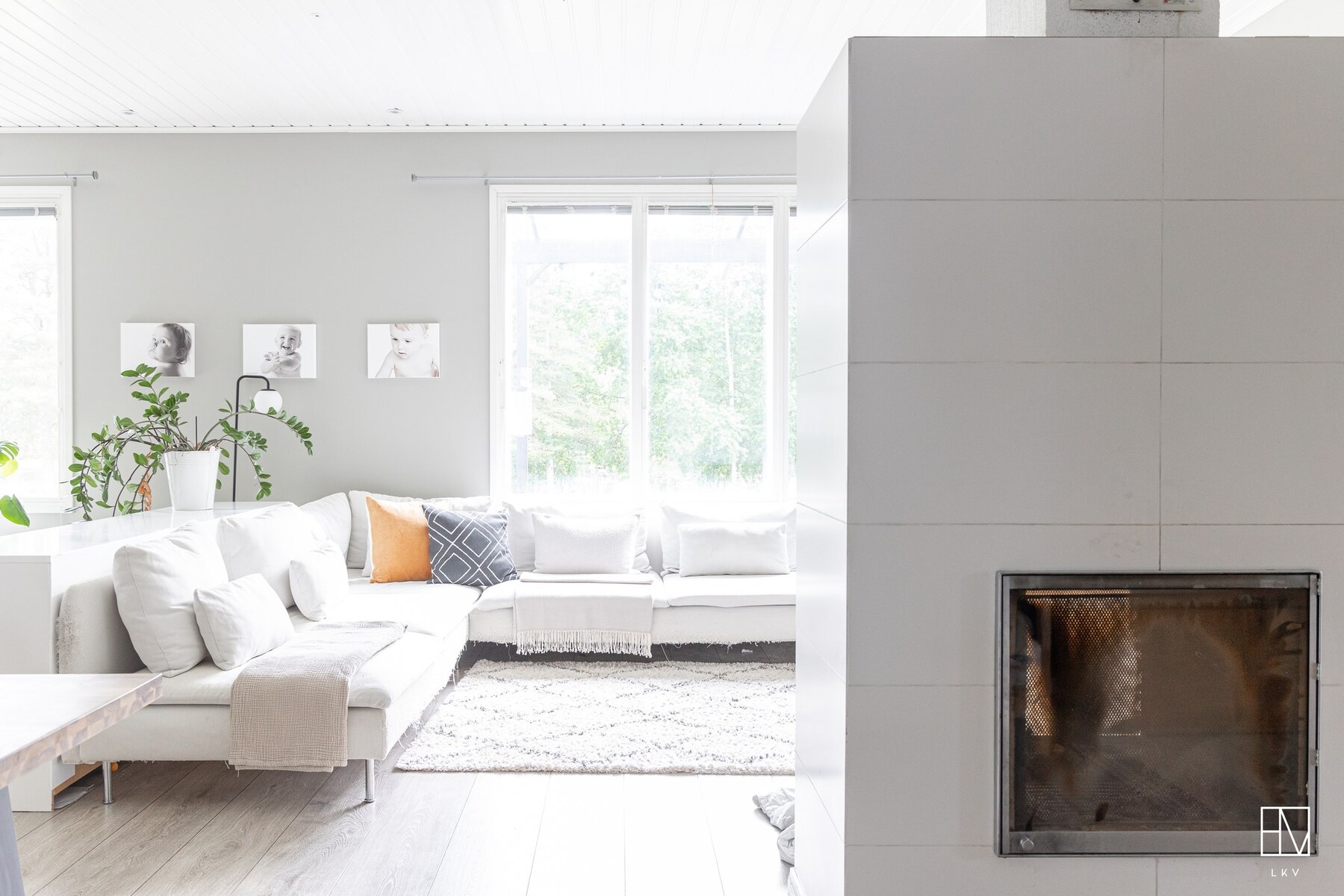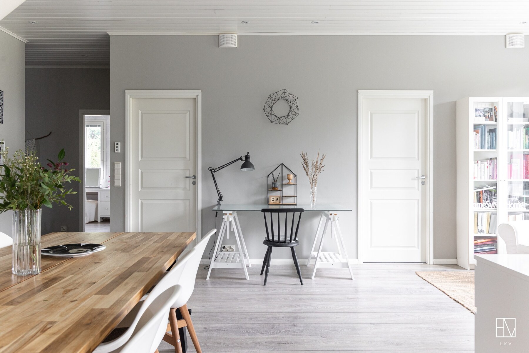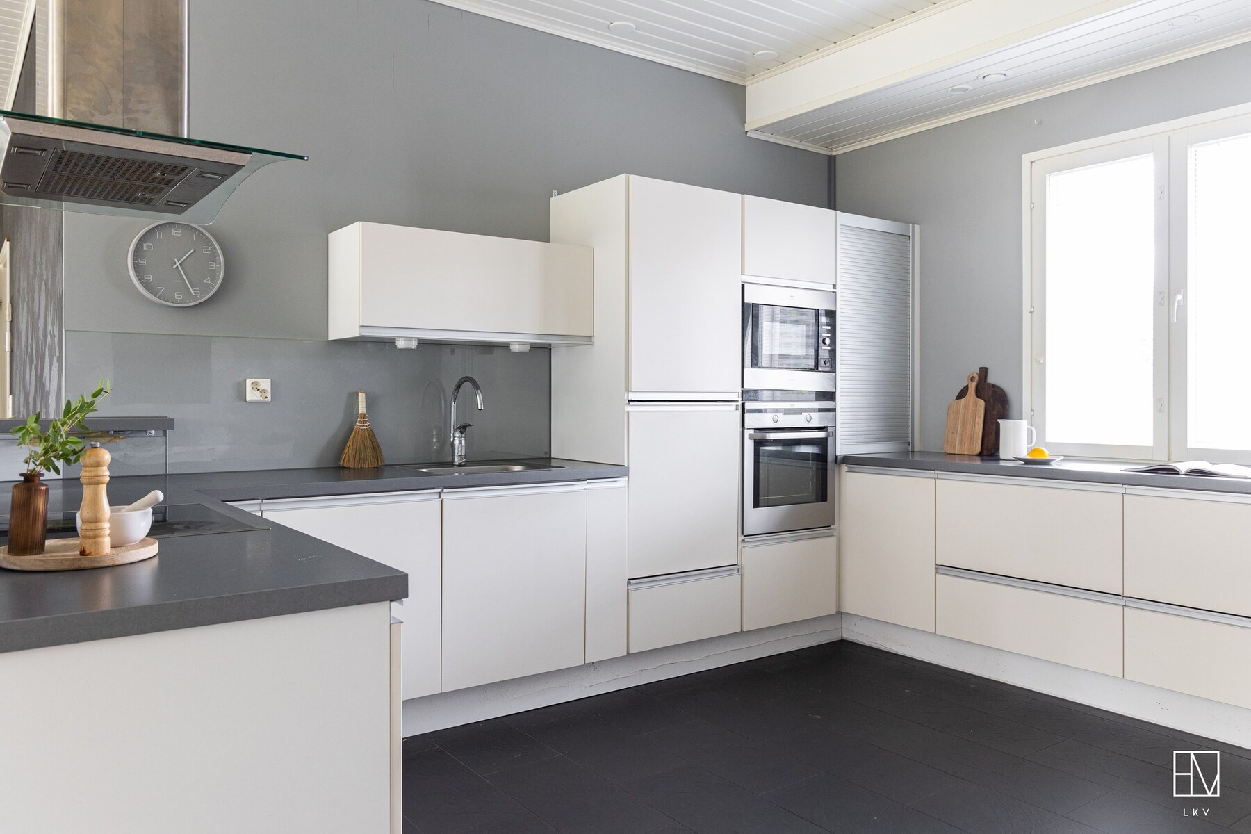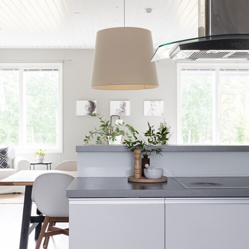Olohuone ja keittiö muodostavat yhtenäisen, lähes 60 m² kokoisen avaran kokonaisuuden, jossa on tilaa niin arkeen kuin juhlaan.