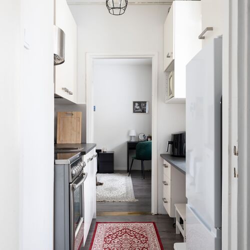 Tämä koti tarjoaa viihtyisää asumista huippu sijainnilla. Toimivien tilaratkaisuiden ansiosta kodin kaikki 42 neliötä ovat tehokkaassa käytössä. Kaksi lähes samankokoista huonetta sekä niiden väliin jäävä keittiö, eteinen ja kylpyhuone, muodostavat moneen asumistarpeeseen sopivan kokonaisuuden. Asunnon pinnat, keittiö sekä kylpyhuone on uusittu vuosien 2016-2019 aikana, joten koti on siltä osin täysin muuttovalmis. Asunto on tällä hetkellä vuokrattu.