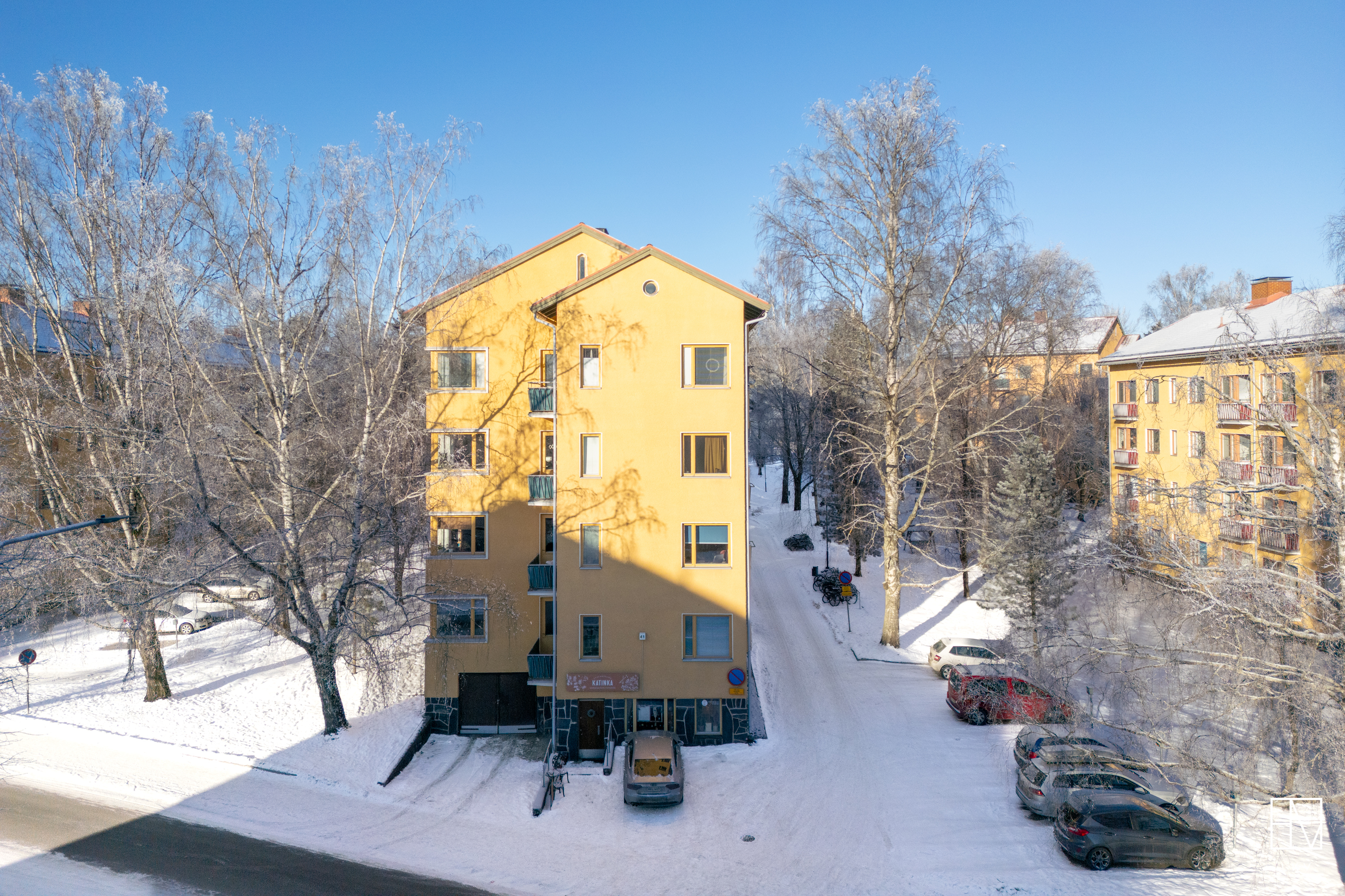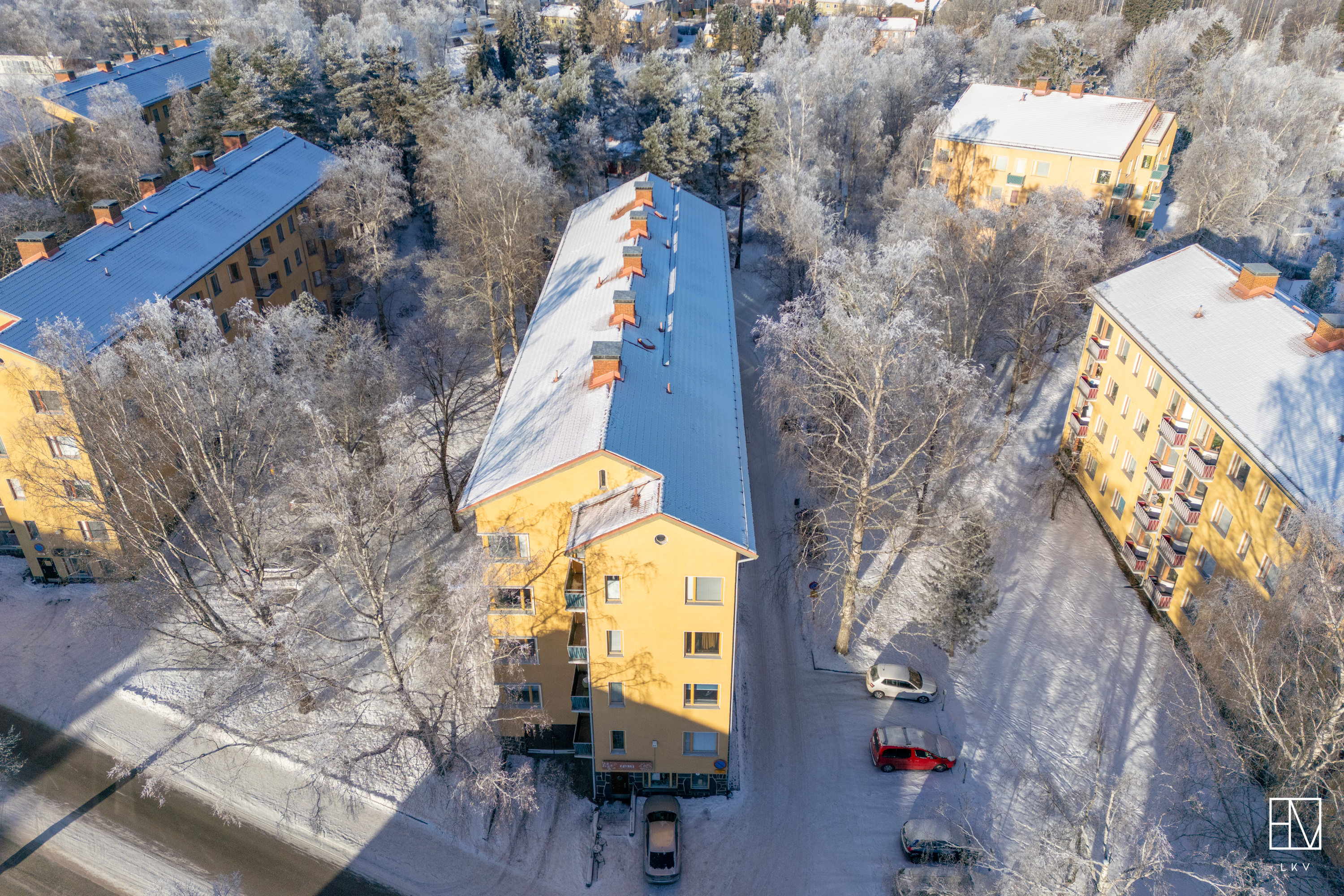 Huoneistolle kuuluu häkkivarasto (ullakolla) ja kylmäkellari (kellarissa).