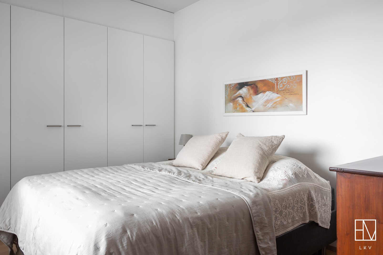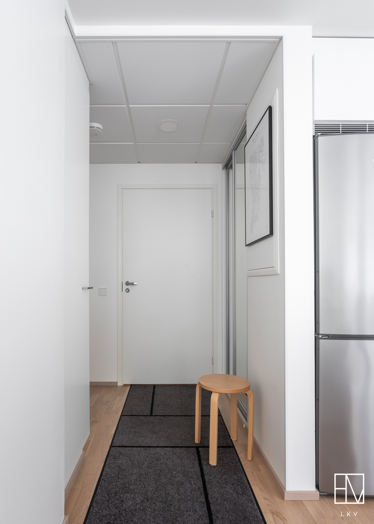 Eteinen: lattia parketti, seinät maalattu. Varustus: peililiukuovikaapisto