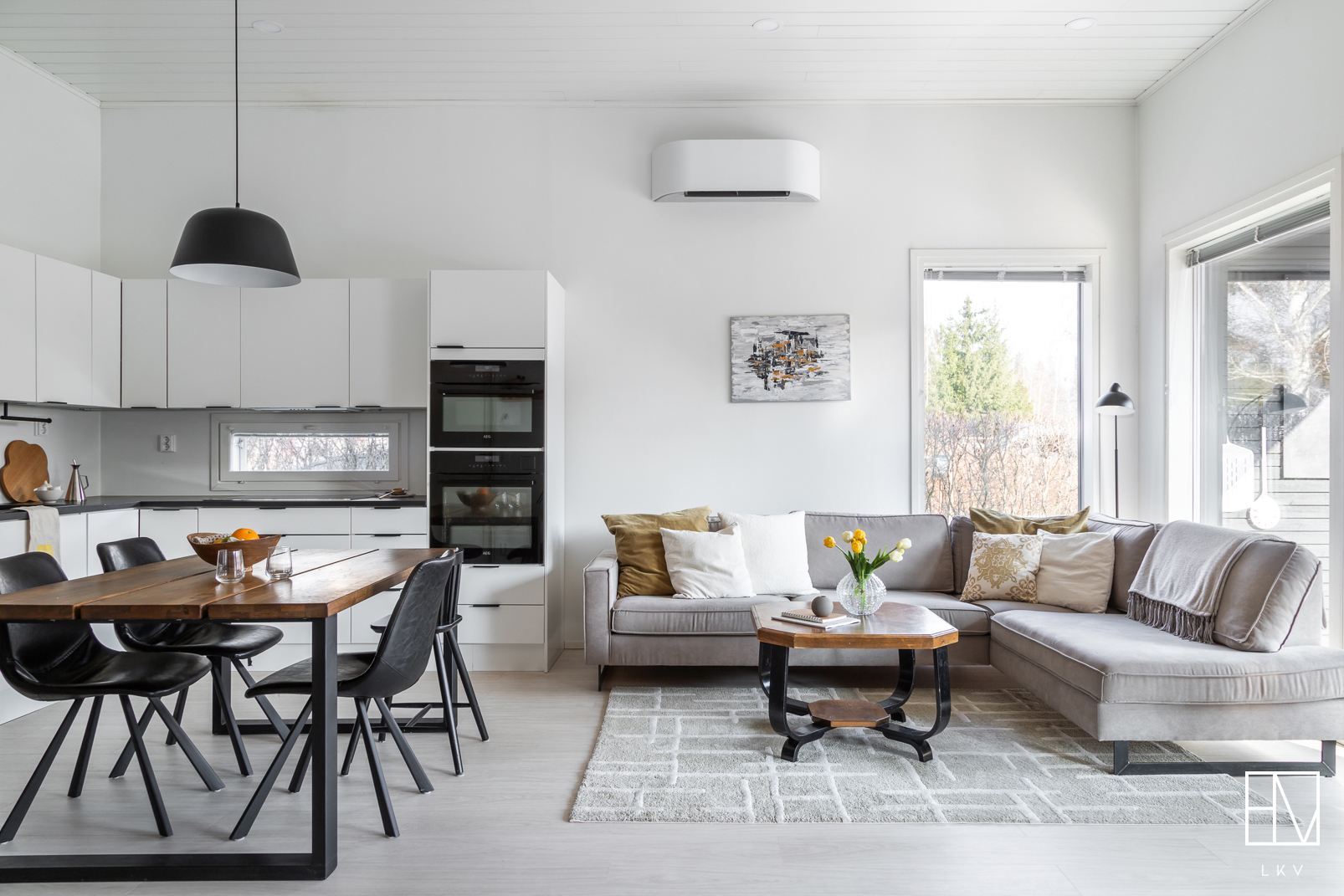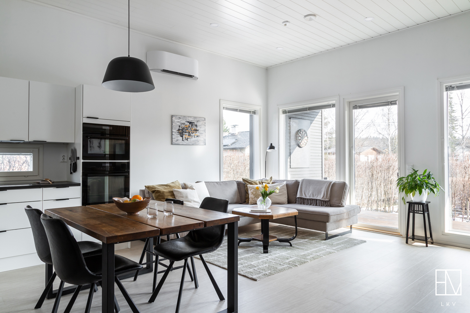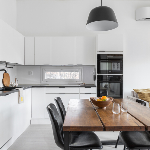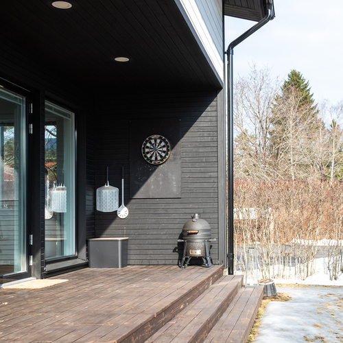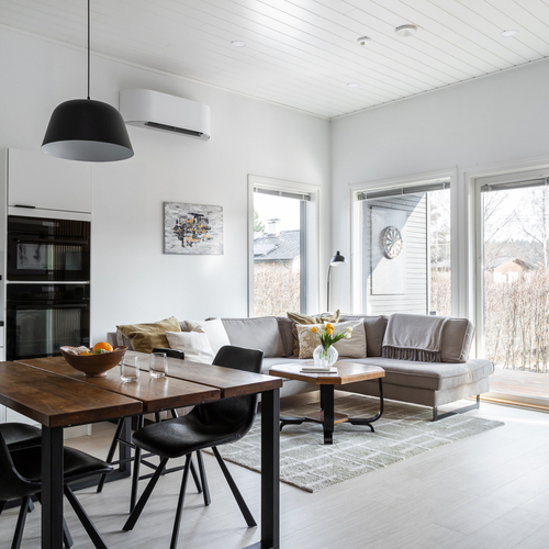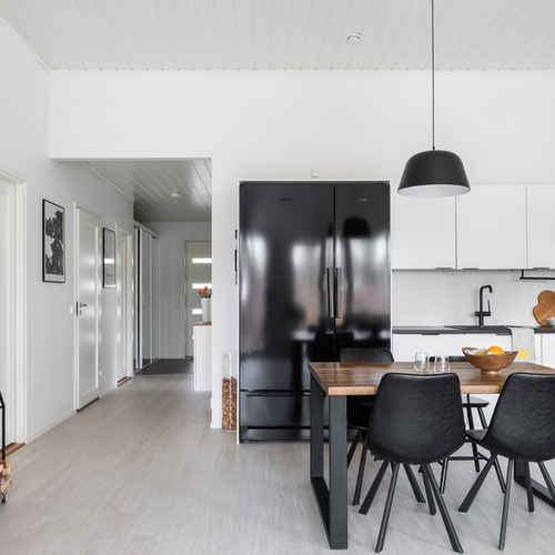 Koti on moderni ja tyylikäs paritalon puolikas, jonka pinta-ala on 98,50 m². Keittiö yhdistyy näyttävästi olohuoneeseen, luoden avaran ja toimivan oleskelutilan. Olohuonetta koristavat moderni rimaseinä sekä kevyttakka, joka tuo tunnelman jokaisena vuodenaikana.