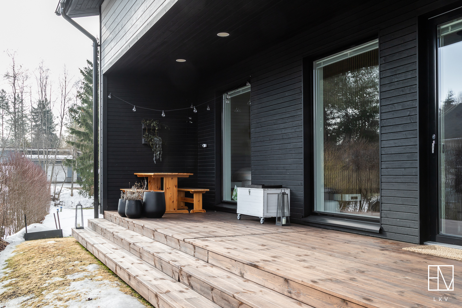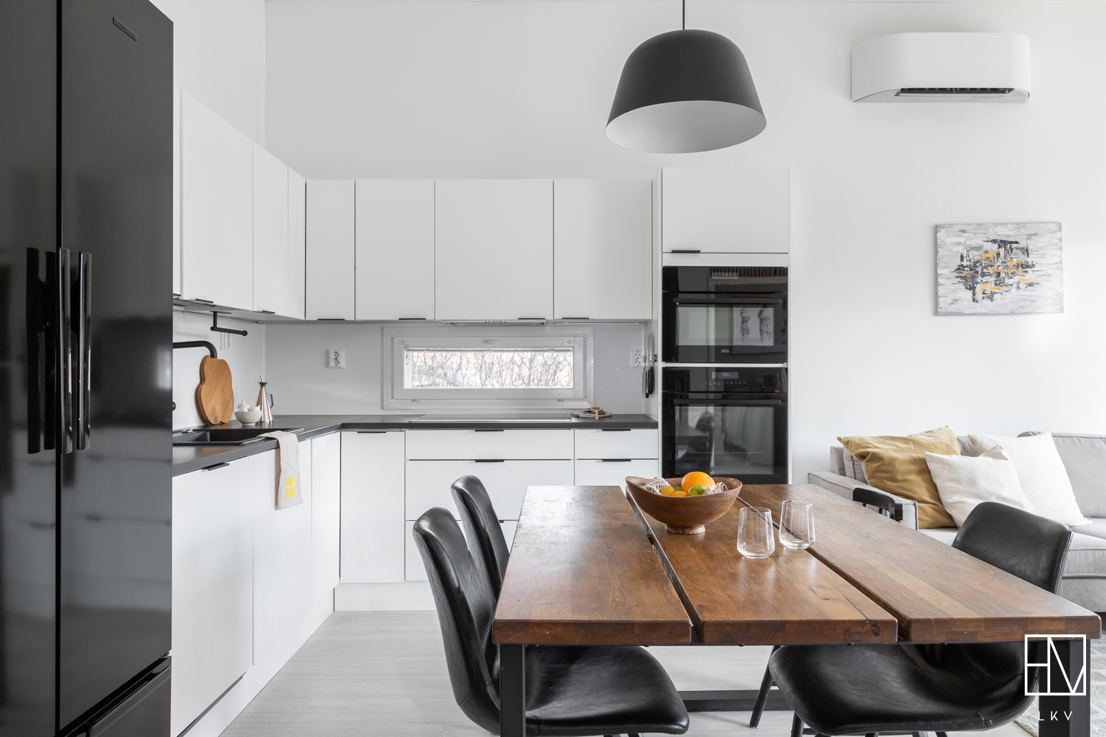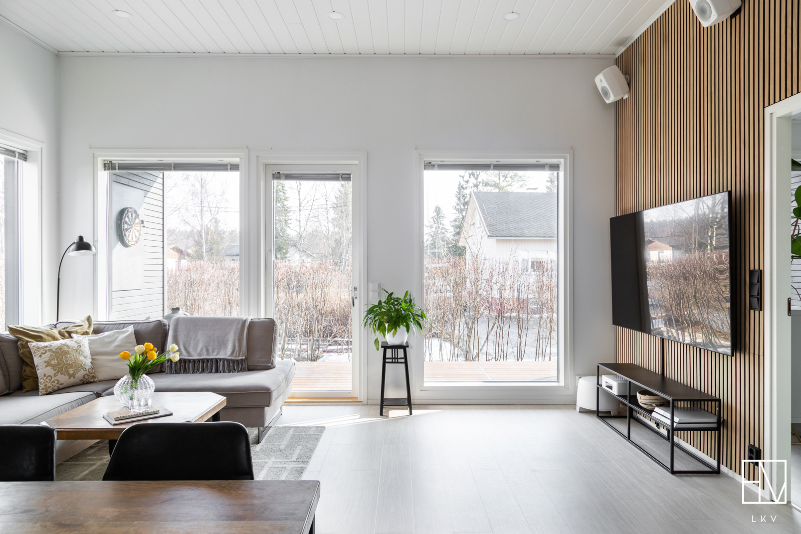 Koti on moderni ja tyylikäs paritalon puolikas, jonka pinta-ala on 98,50 m². Keittiö yhdistyy näyttävästi olohuoneeseen, luoden avaran ja toimivan oleskelutilan. Olohuonetta koristavat moderni rimaseinä sekä kevyttakka, joka tuo tunnelman jokaisena vuodenaikana.