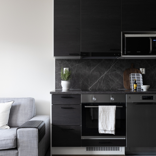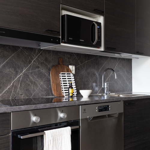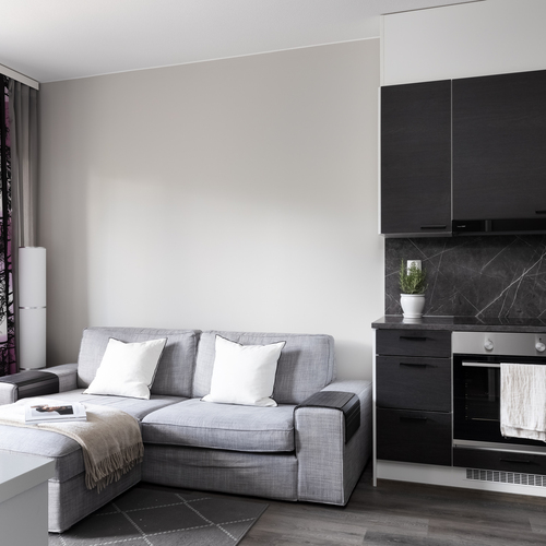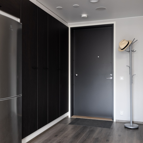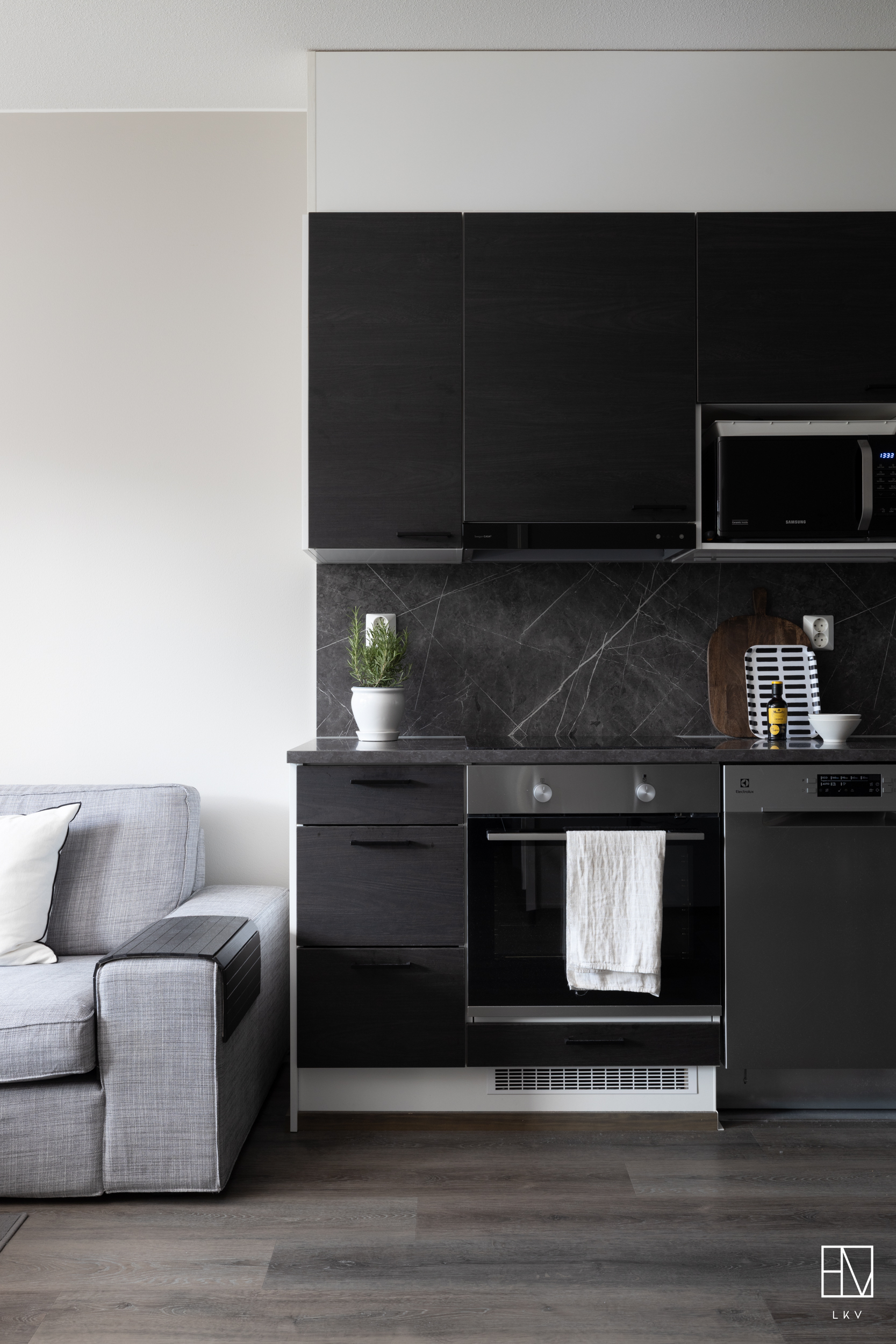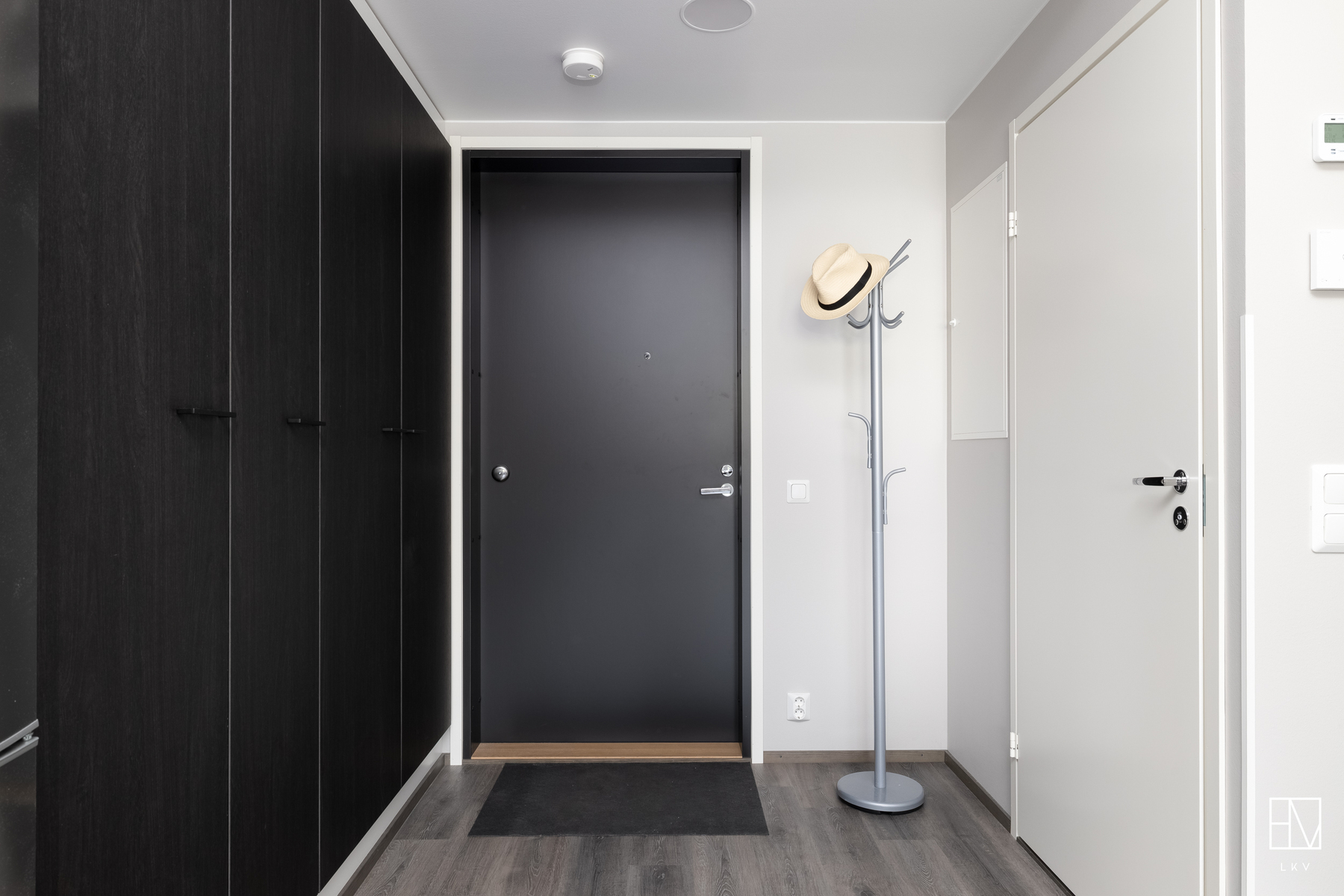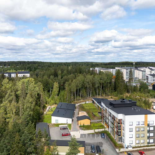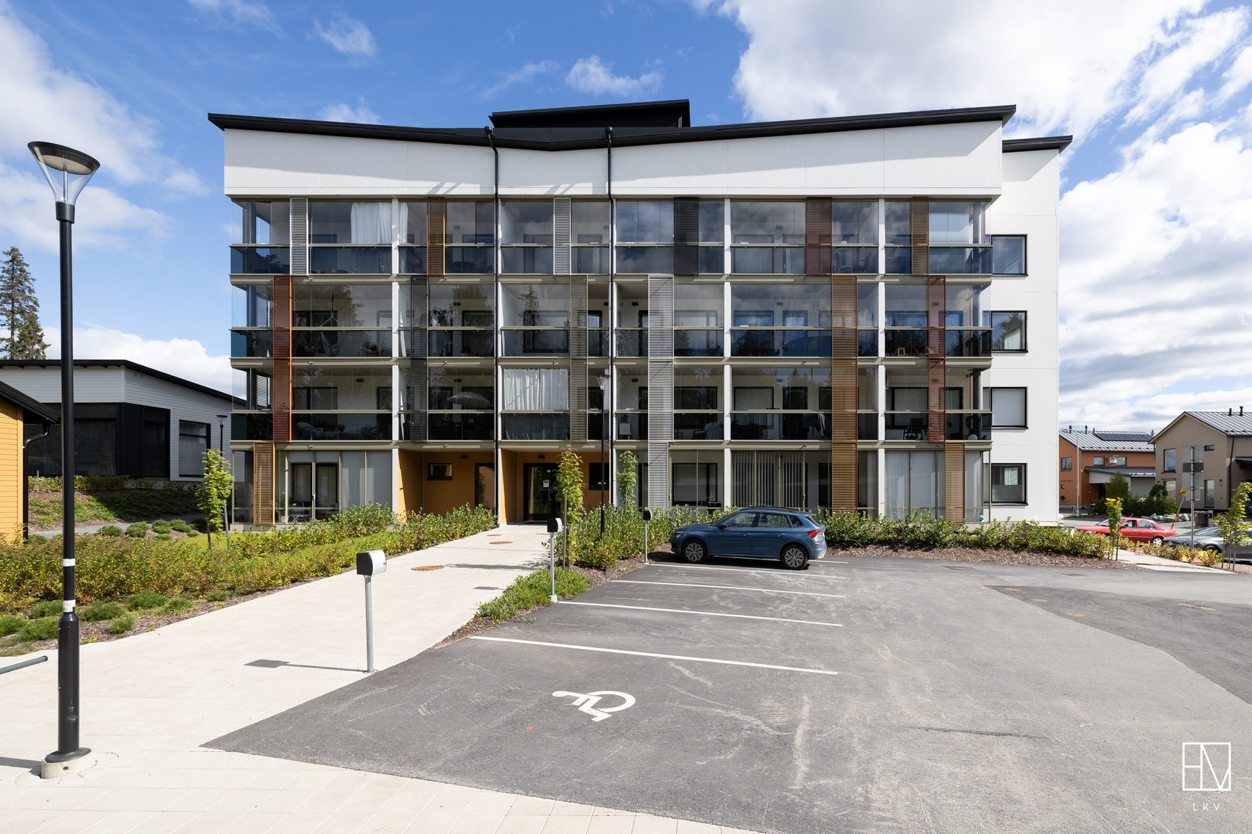 Tummanpuhuvasta kodista löytyy runsaasti säilytystilaa kaapein ja jokaiselle asunnolle kuuluu oma häkkivarasto. Tyylikkään keittiön varusteluun kuuluvat mm. jääkaappipakastin, induktioliesitaso ja erillisuuni, astianpesukone paikka mikrolle sekä liesituuletin. Keittiön edustalle saat mahtumaan ruokapöydän ja tila yhdistyy olohuoneeseen, josta näkymät avautuvat vehreää metsämaisemaa kohti. Makuuhuoneeseen on kaksi ovea sängyn molemmin puolin ja säilytystilaa löytyy kaapein. Hotellimaiseen kylpyhuoneeseen on valittu tummalaatoitus ja ehdotonta lisämukavuutta tuovat sadesuihku sekä lattialämmitys hulppeaa saunaa unohtamatta. Koko asunnon levyinen lasitettu parveke tarjoaa yhden "lisähuoneen" aikaisesta keväästä pitkälle syksyyn ja ihanan rauhoittavat metsämaisemat tasapainottavat arkea. Kaikkinensa asunto on miltei uuden veroinen ja avaa nyt ovensa seuraavan perheen kodiksi.