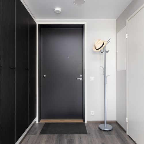 Varusteet: kaapistot, sälekaihtimet/rullaverhot, verhotangot, naulakko, kiinteät valaisimet