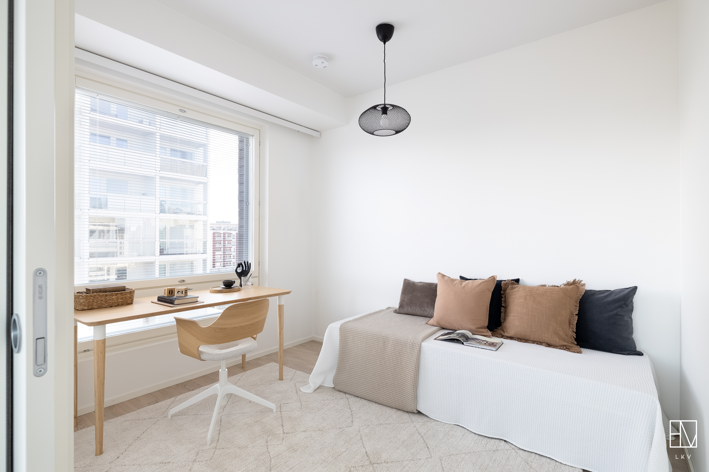 Lattia: valkolakattu tammiparketti.