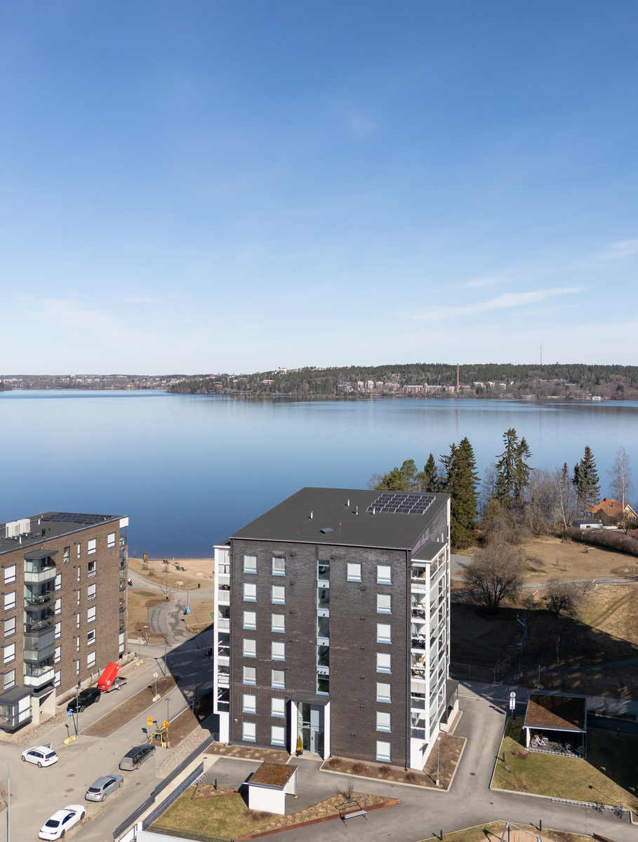 Asunto sijaitsee rantarivissä, omalla tontilla olevan talon ylimmässä 7. kerroksessa, mikä takaa rauhan sekä upean ja esteettömän näkymän Pyhäjärvelle.