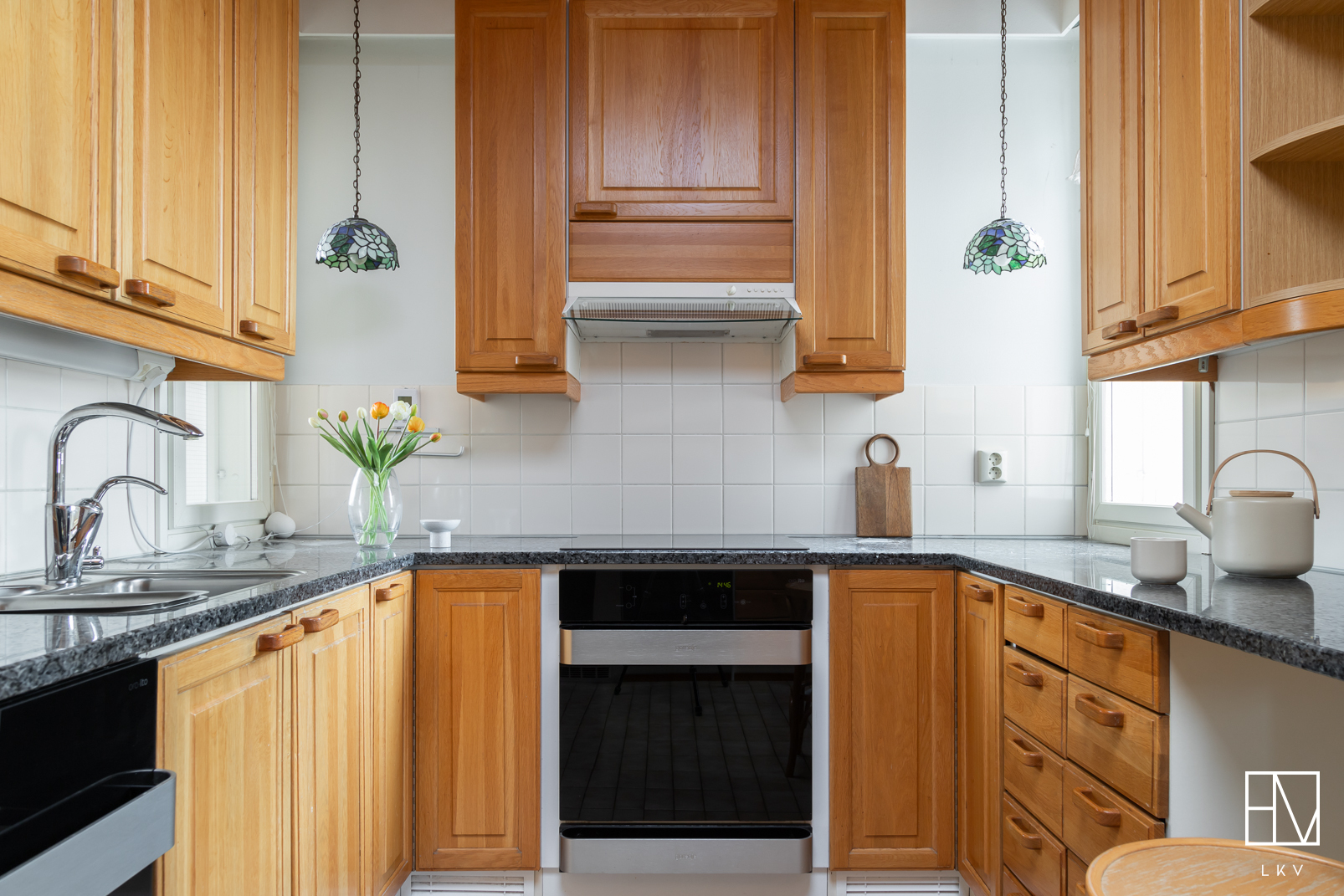 Varusteet: pesukoneliitäntä, pesuallas, pöytätaso