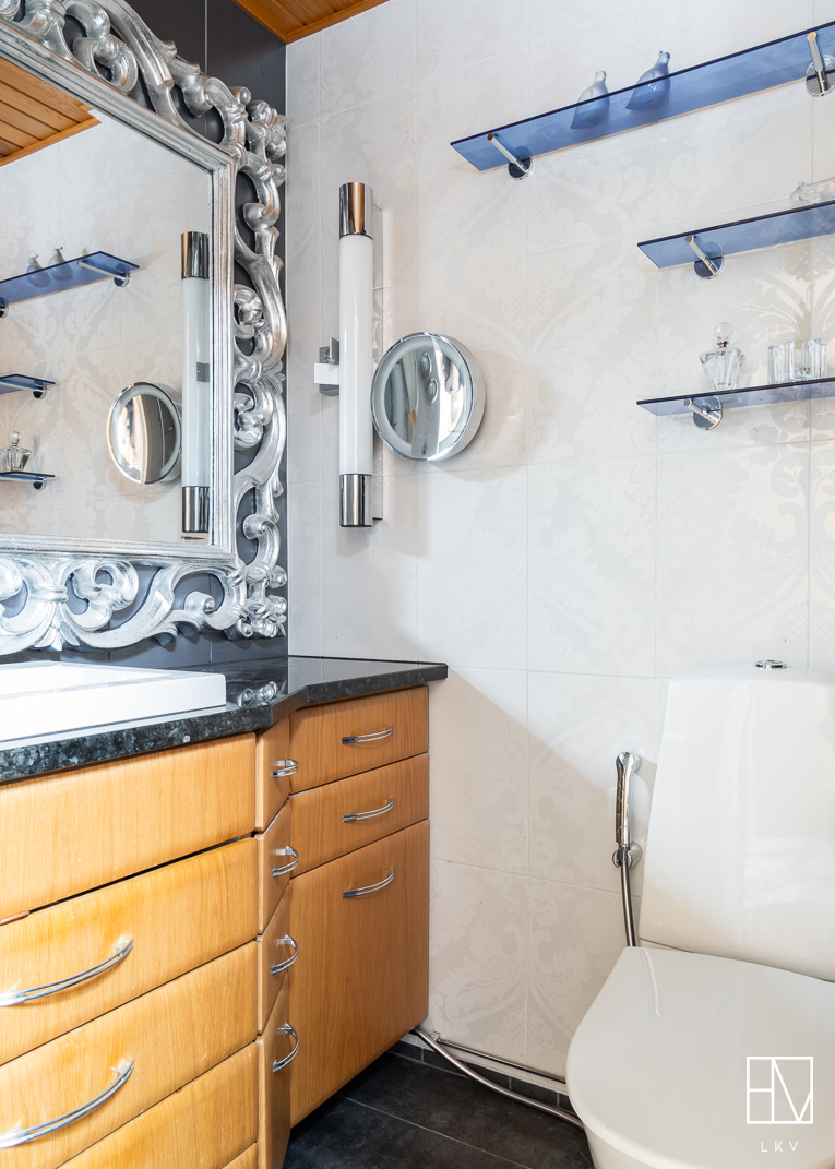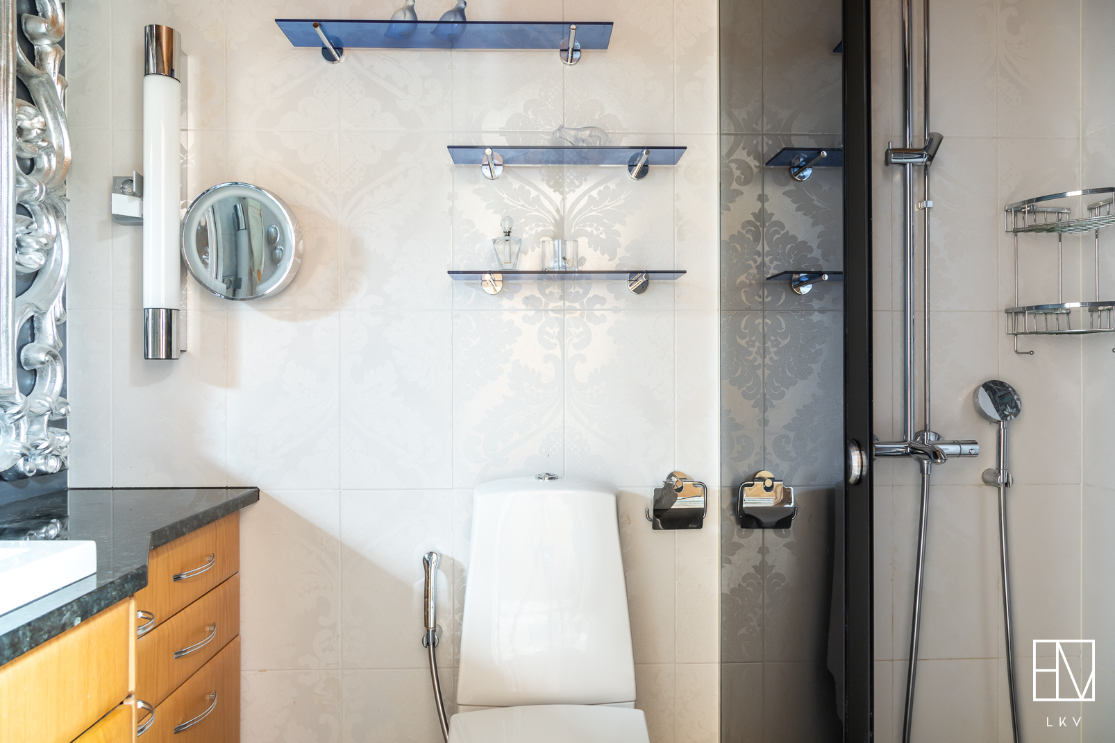 Varusteet: suihku, peilikaappi, bidee-suihku