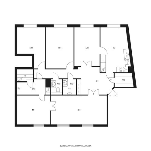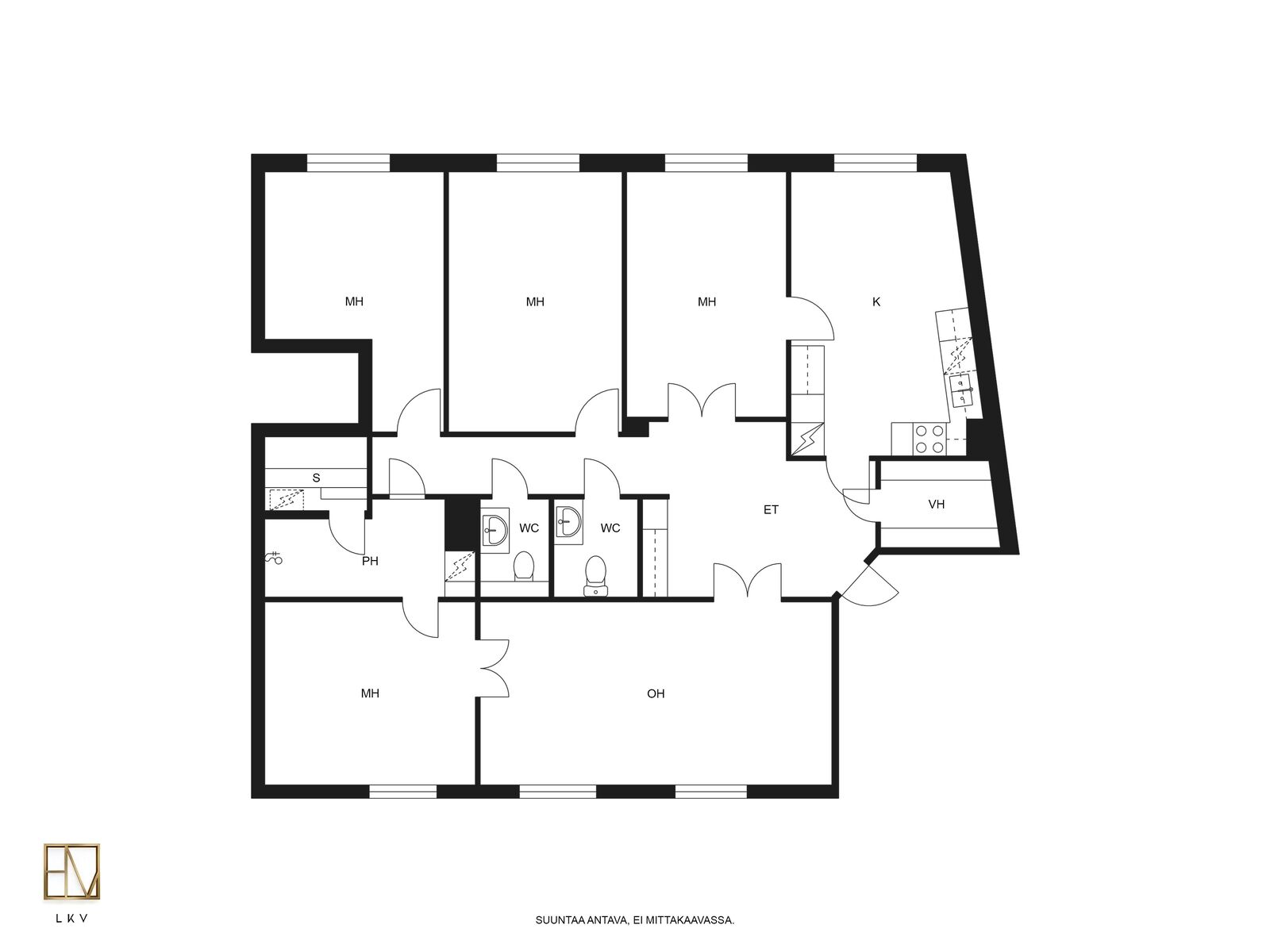 Pintamateriaalit: Asuintiloissa parkettilattiat.