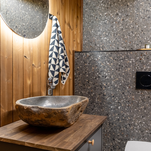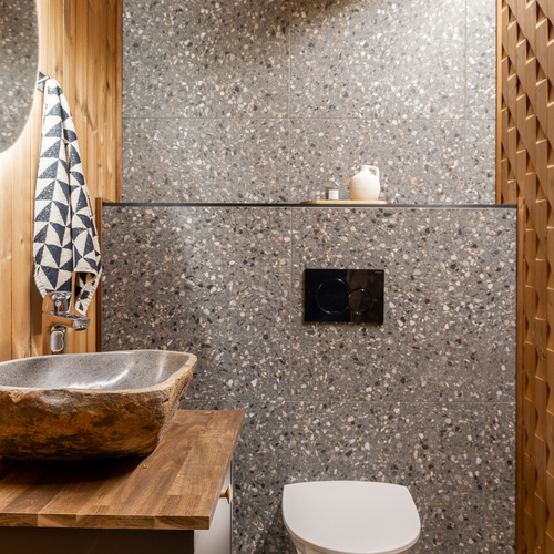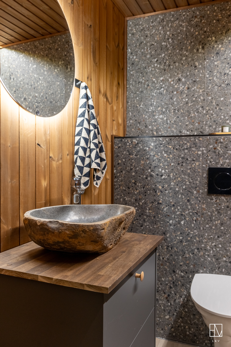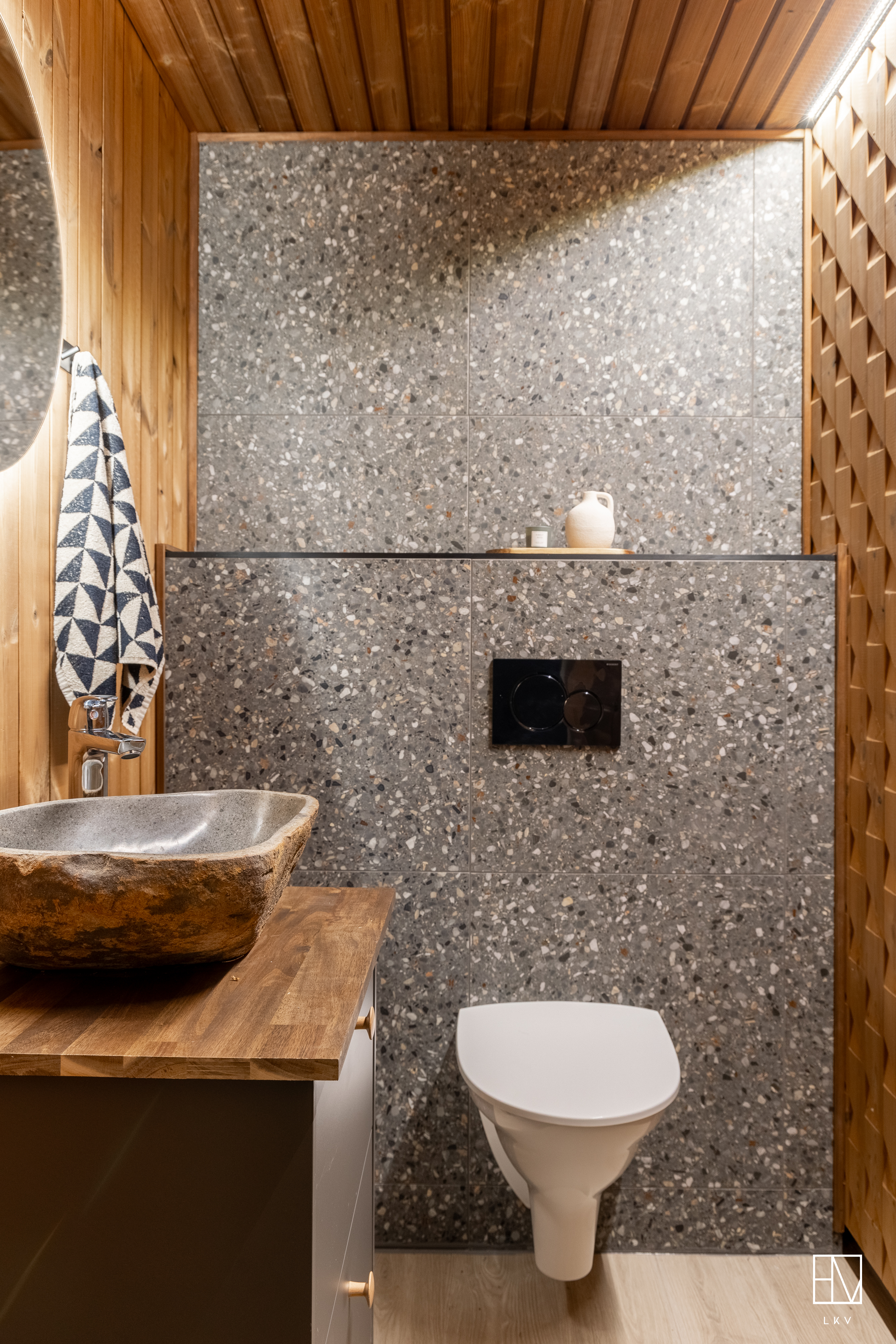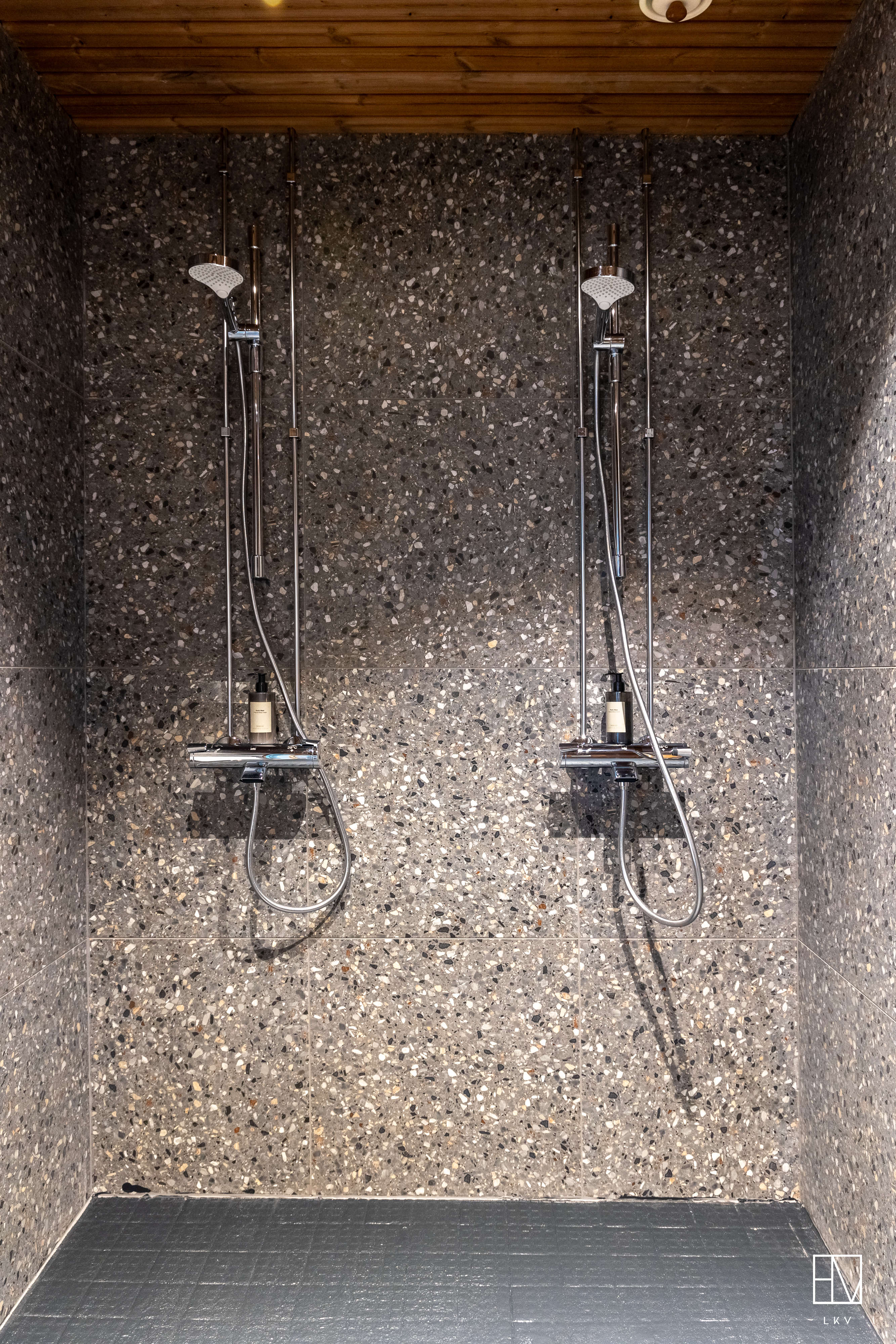 Kylpyhuoneessa myös paikka pesutornille ja kaappi- ja laskutilaa.