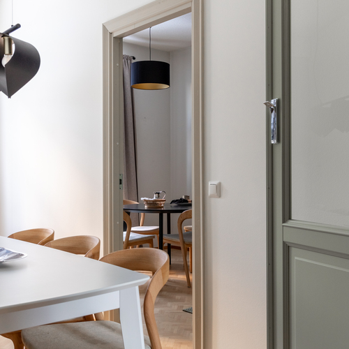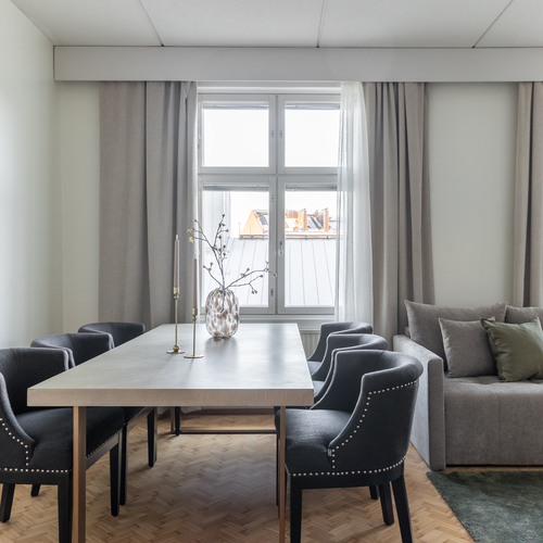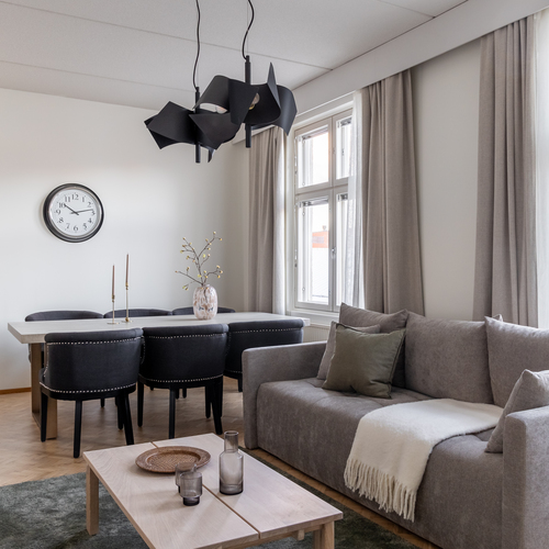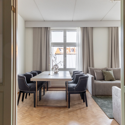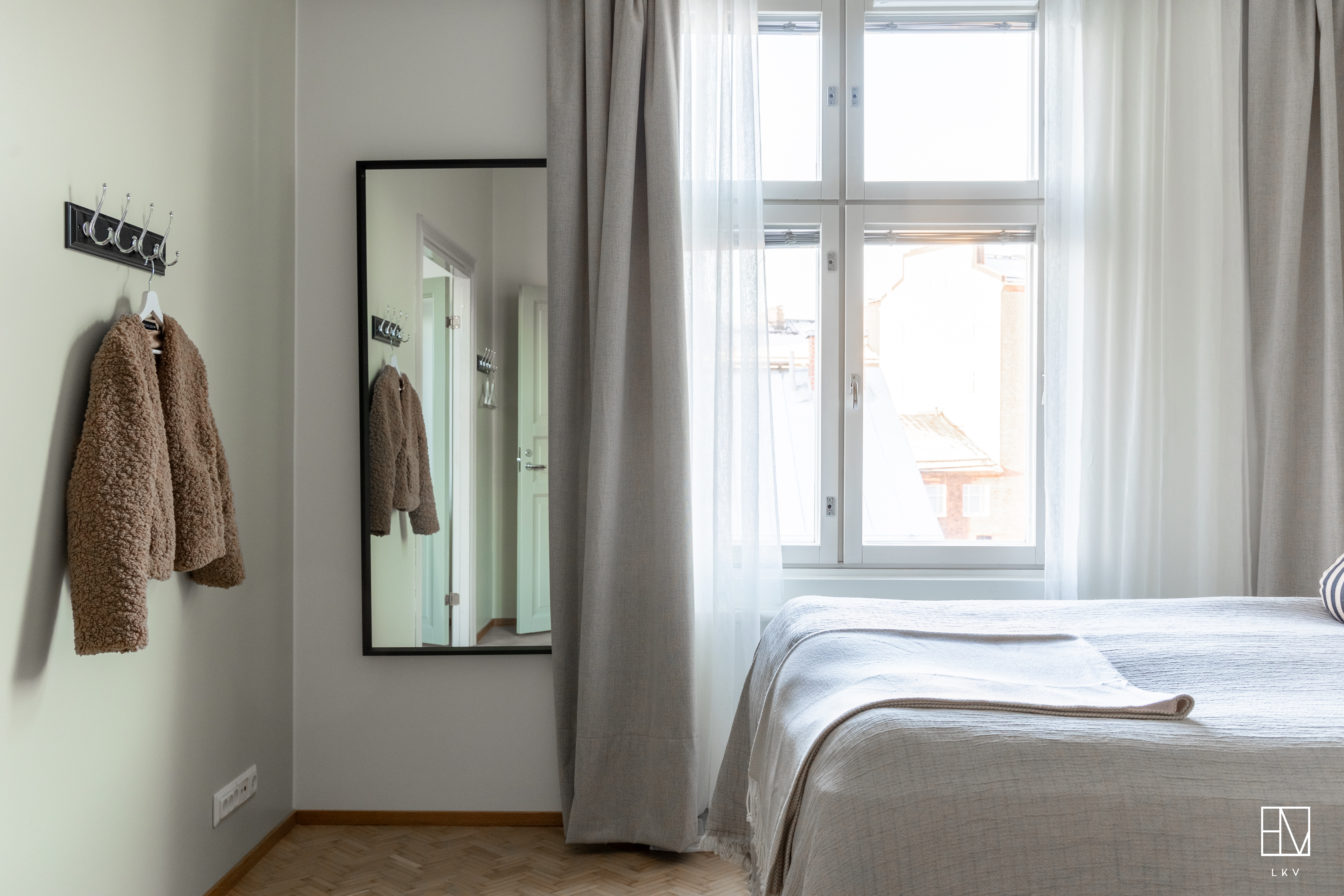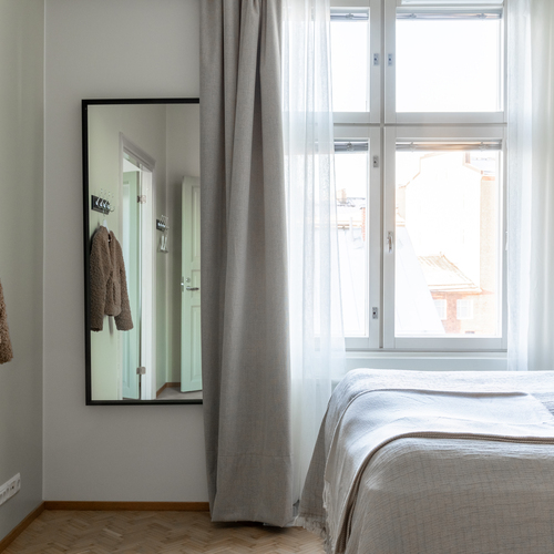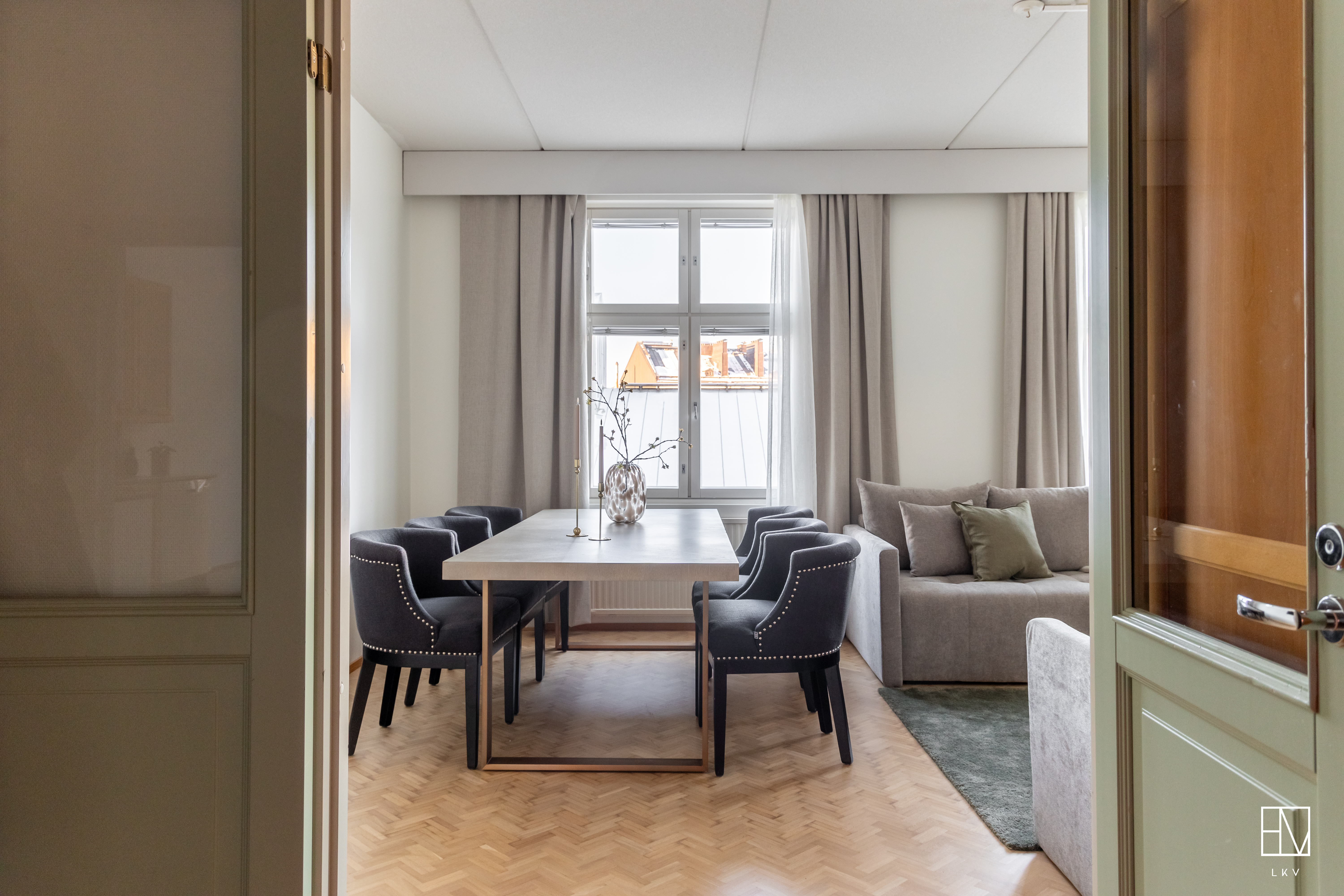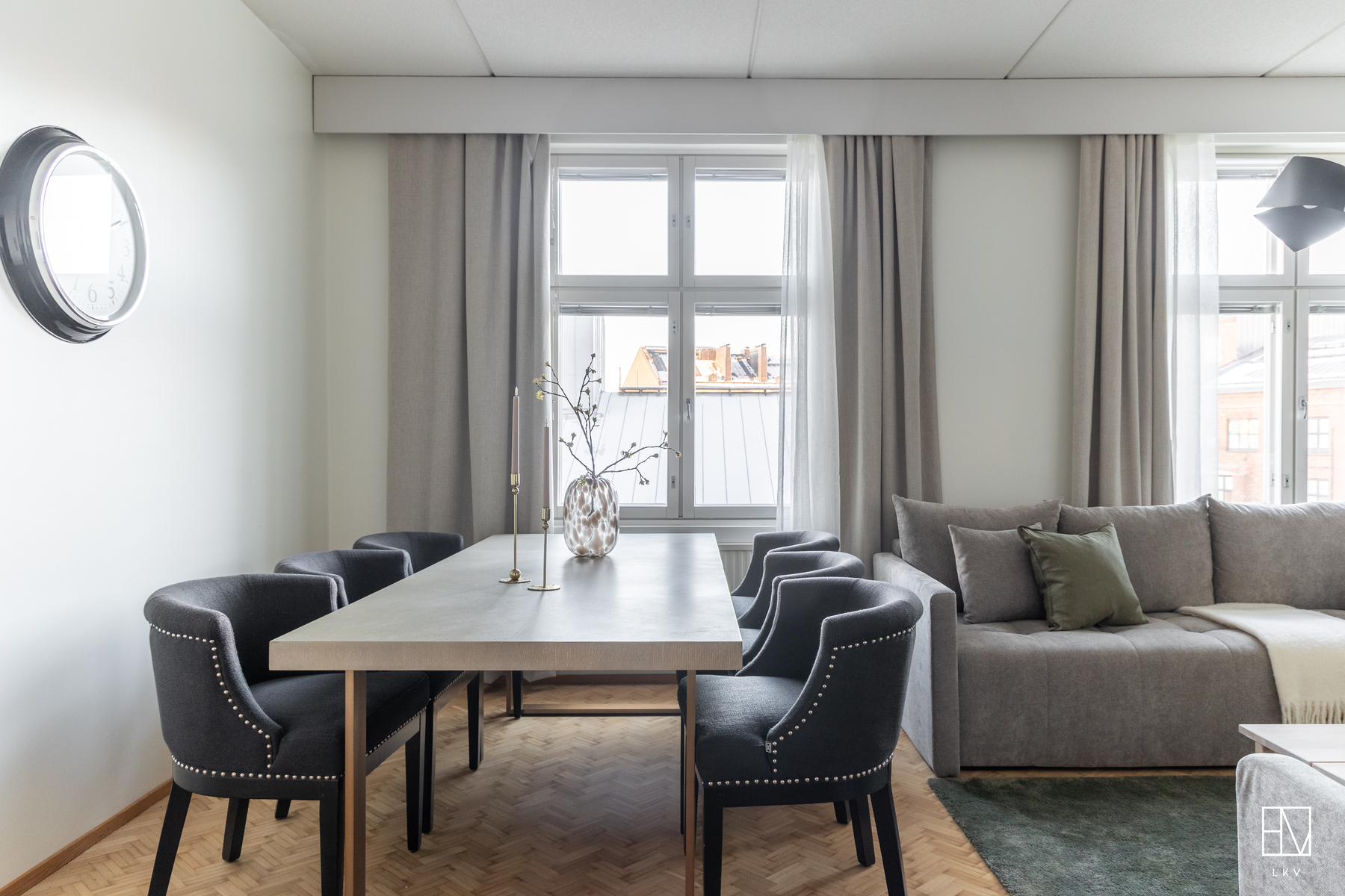 Asuminen tässä osoitteessa on rauhallista, sillä tämä asunto on rappukäytävän ainoa asuinhuoneisto. Asunto on kolmannessa kerroksessa ja siinä on neljä makuuhuonetta, kaksi vaatehuonetta, kaksi wc:tä, kylpyhuone, sauna sekä erillinen keittiö ja suuri olohuone. Sisäpihan puolella olevista ikkunoista on suora näkymä naapurissa olevaan Nokia Areenaan ja kadunpuoleisista on näkymä kohti naapuritaloja ja Ratinaa.