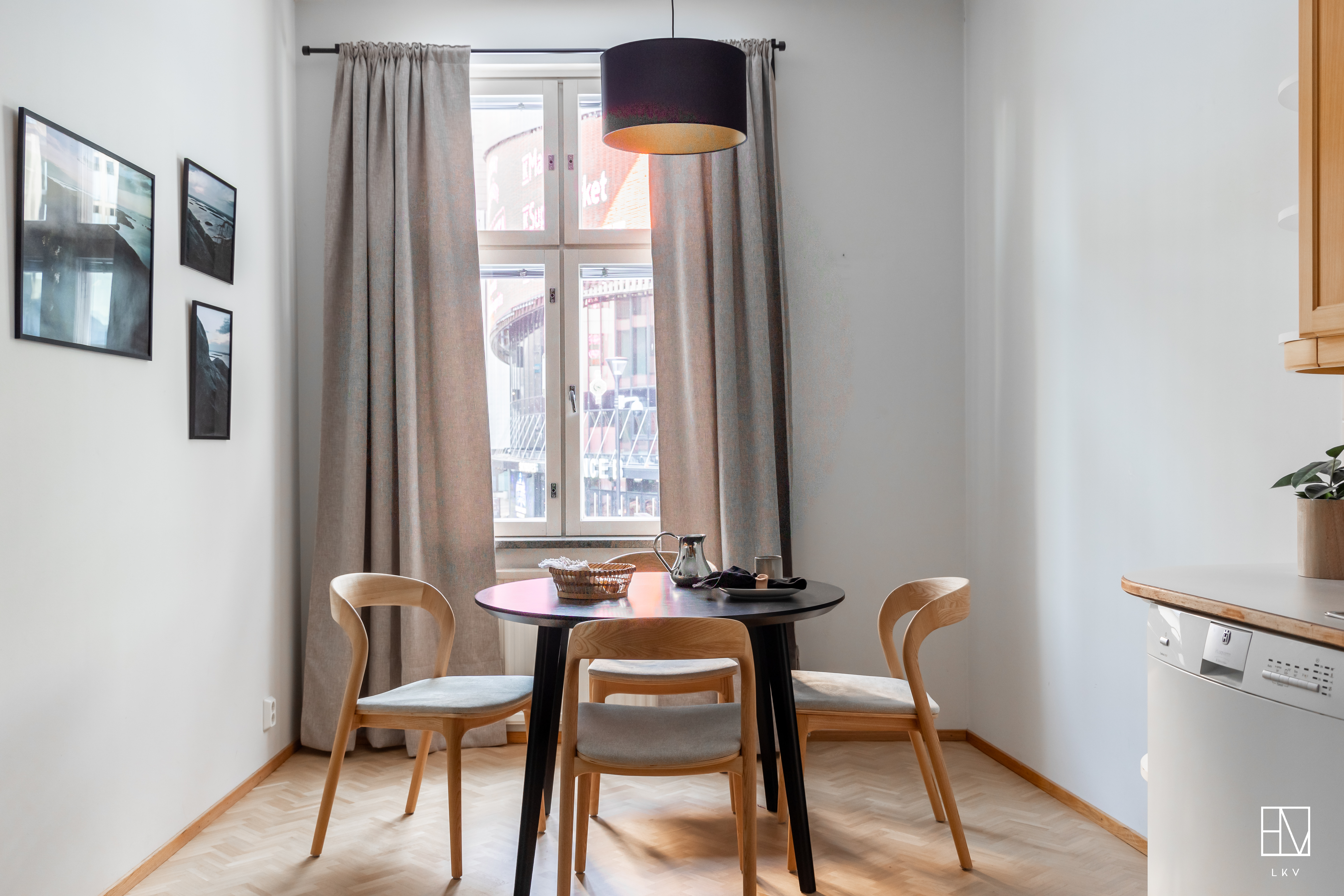 Ratinan kauppakeskuksen ja keskustan kattavat palvelut ovat ihan kulman takana ja matkaa yliopistolle on vain 500 m.