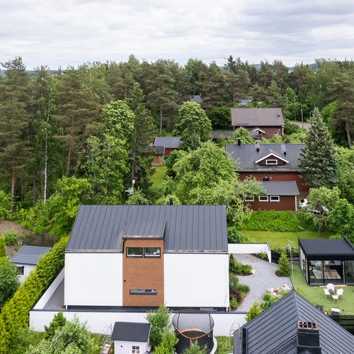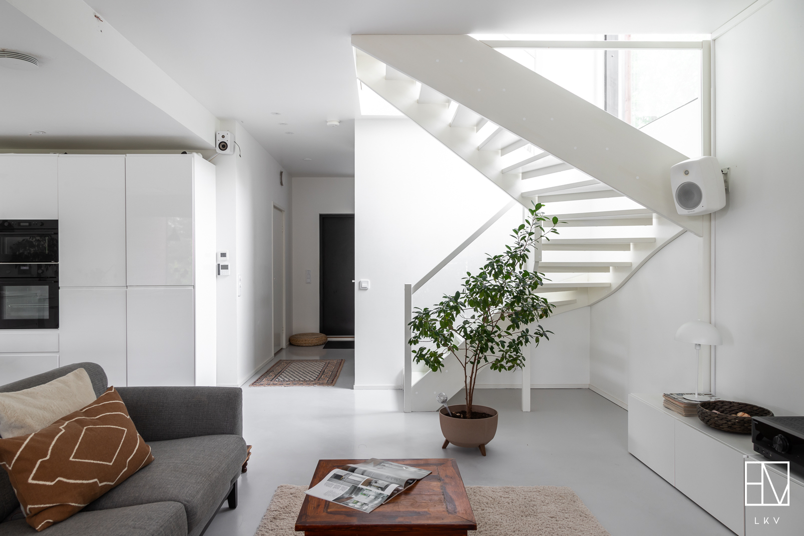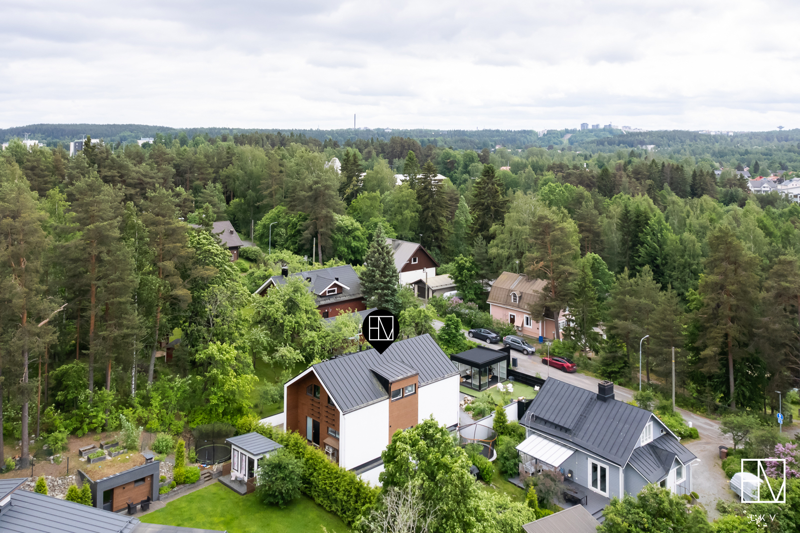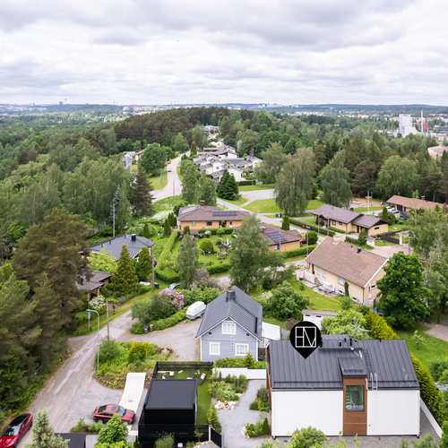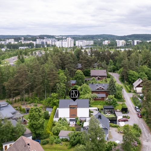 Sijainti on rauhallinen mutta käytännöllinen. Arjen palvelut ja liikenneyhteydet löytyvät läheltä, mutta koti tarjoaa silti oman suojaisan pihapiirin.
