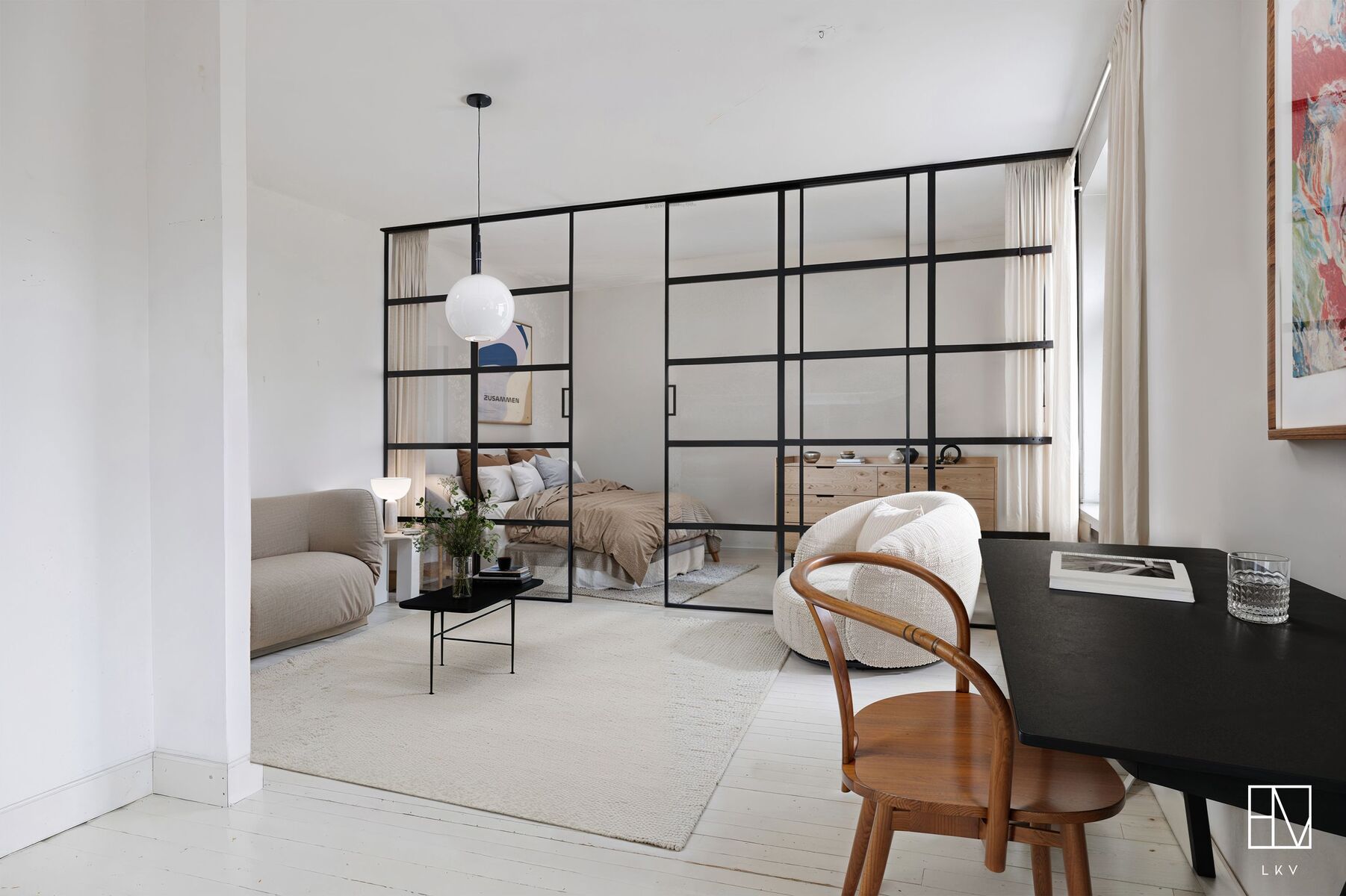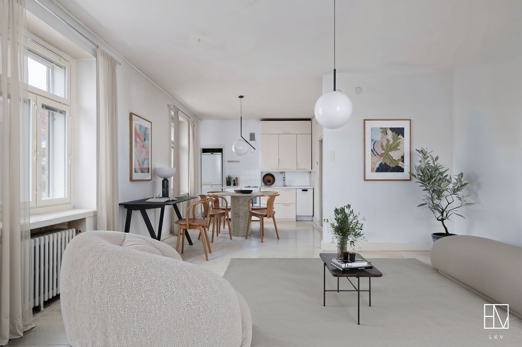 Asunnon seinä-, lattia- ja katto pinnat on juuri maalattu 9/2025, joten pääsetkin muuttamaan maalipinnoiltaan täysin uutukaiseen kotiin. Keittiötä on päivitetty reilu 10 vuotta sitten ja keittiön varusteluun kuuluvat mm. jääkaappipakastin, astianpesukone, sähköliesi sekä kaappitila. Olohuone on sen verran iso, että sinne saat erilaisilla tilanjakoratkaisuilla oman "huoneen" sängylle sekä vaatekaapeille. Kuvissa on tehty virtuaalisesti esimerkki tyylikkäästä lasikehikkoseinästä, joka sopisi tilaan loistavasti. Lisäksi olohuoneeseen mahtuu sohvaryhmä, työpiste sekä keittiön edustalle ruokapöytä. Lattioita koristavat upeat lautalattiat ja kauniit ikkunat ikkulautoineen kutsuvat ihastelemaan ikkunasta avautuvia Kivipunalanpuisto-maisemia.