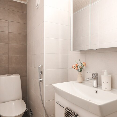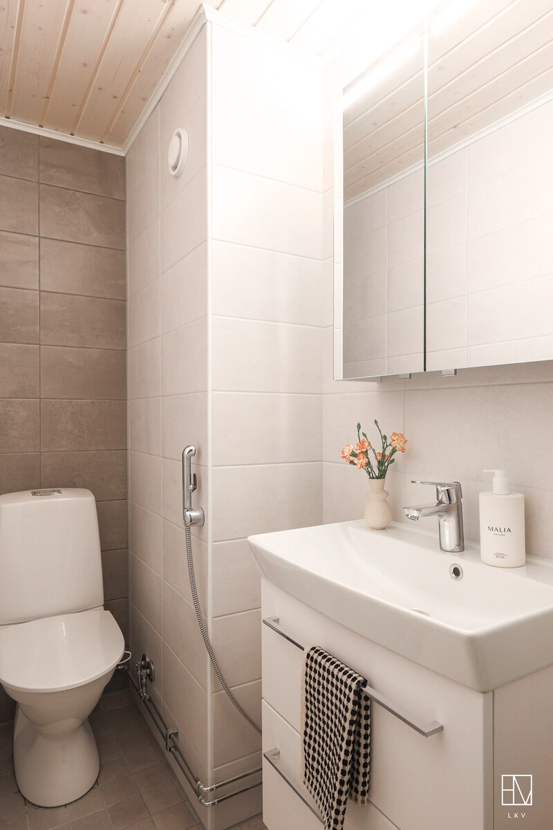 Kylpyhuone ja erillinen WC on täysin uusittu vuosina 2022 –2023 osana taloyhtiön kattavaa saneerausta, jonka yhteydessä tehtiin mm. putkistosaneeraus.