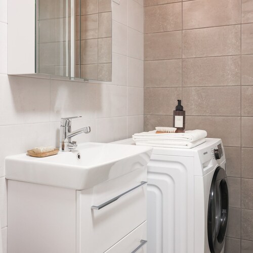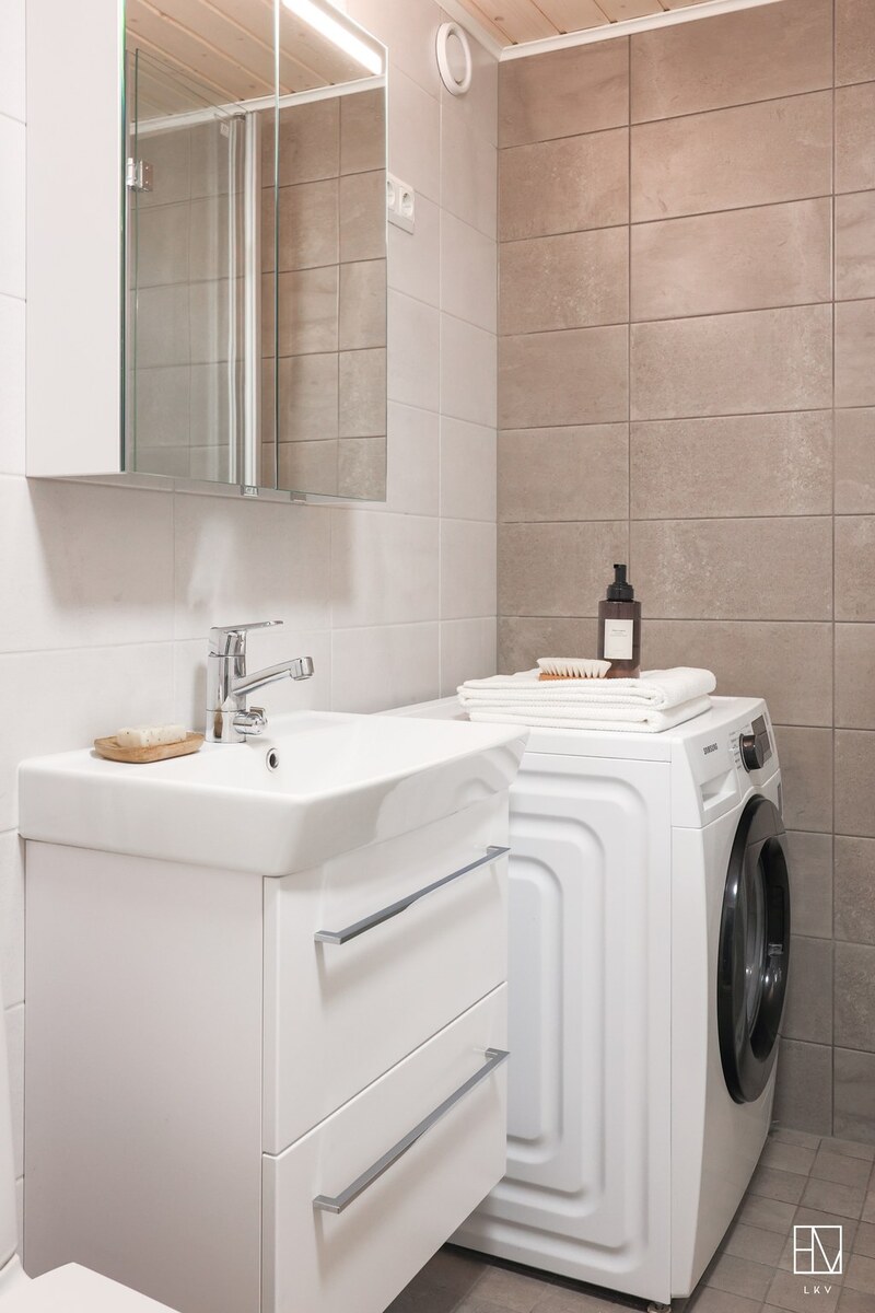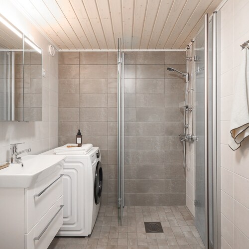 Varusteet: pesukoneliitäntä, wc-istuin, suihku
