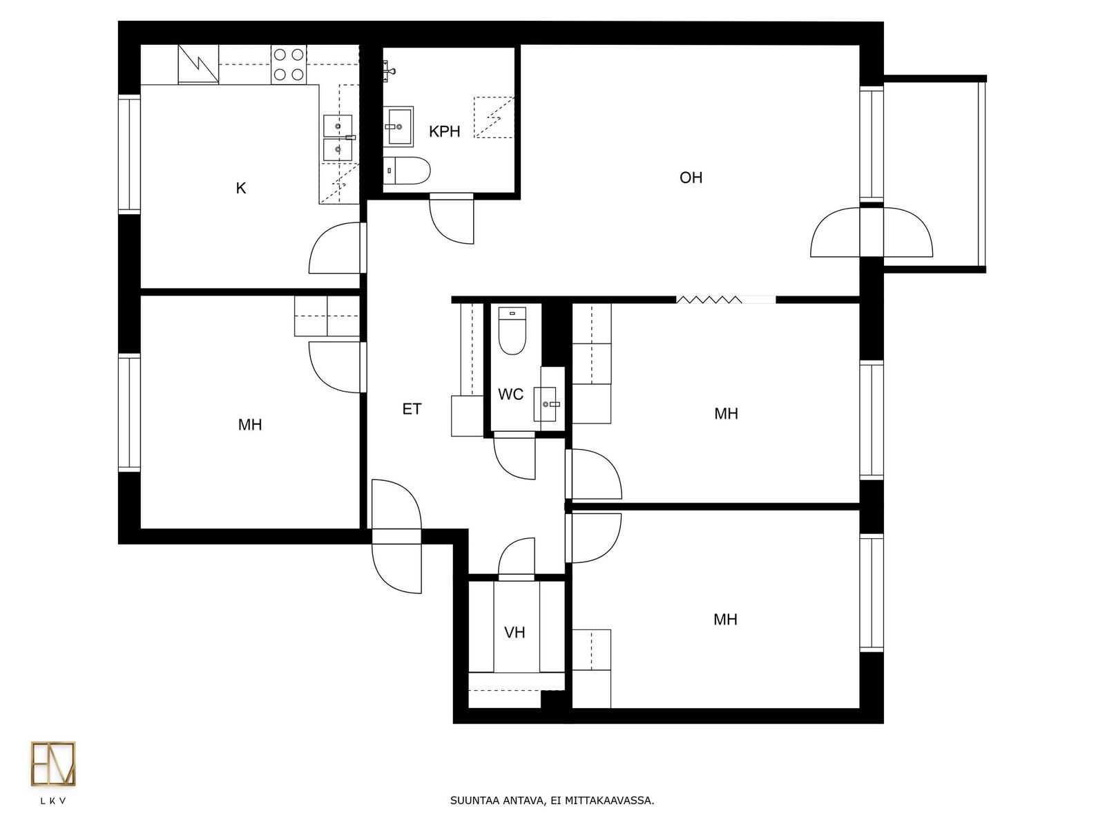 Avara olohuone on kodin sydän. Sieltä on kulku parvekkeelle, jolta avautuvat rauhoittavat metsämaisemat. Samaiset maisemat aukeavat myös olohuoneesta, sekä kahdesta makuuhuoneesta. Tilavassa, erillisessä keittiössä on runsaasti kaappi- ja laskutilaa sekä paikka ruokailuryhmälle. Lisäksi asunnossa on erillinen vaatehuone arkea helpottamaan.